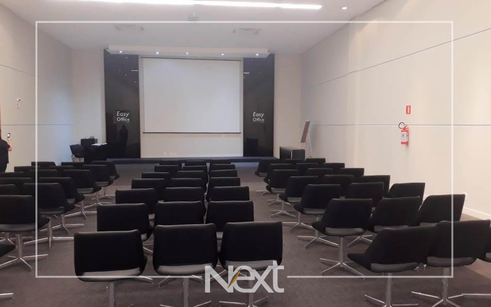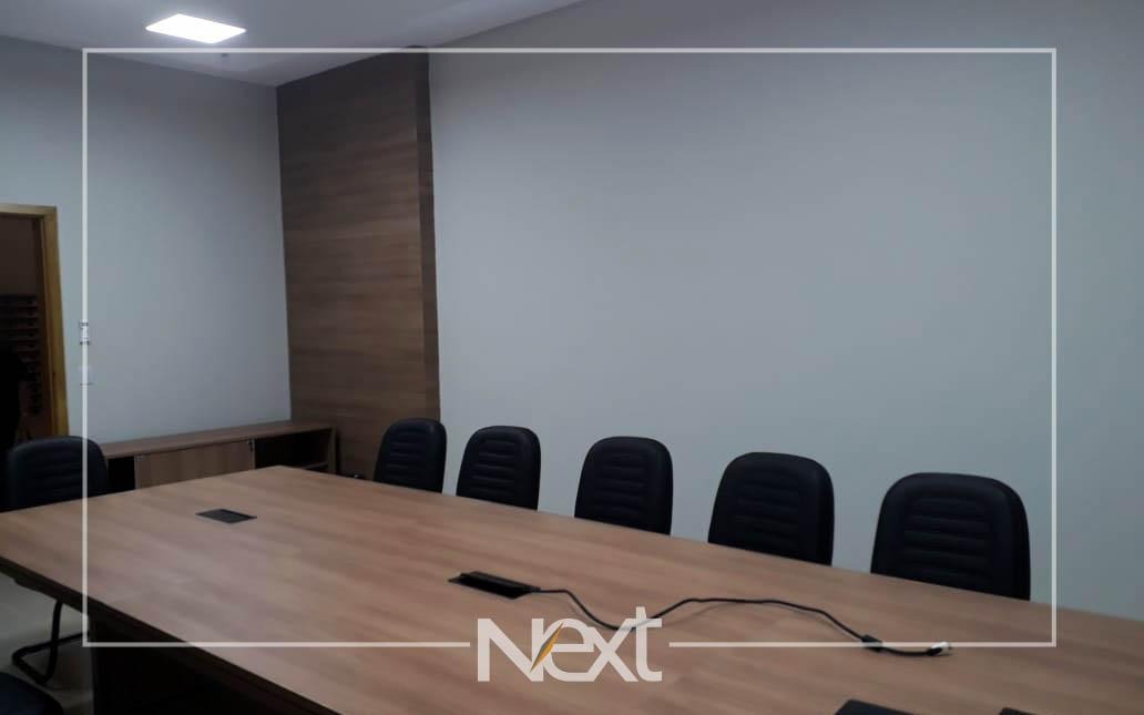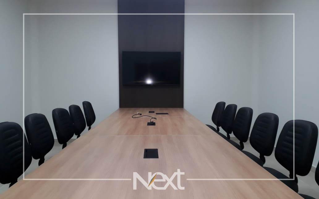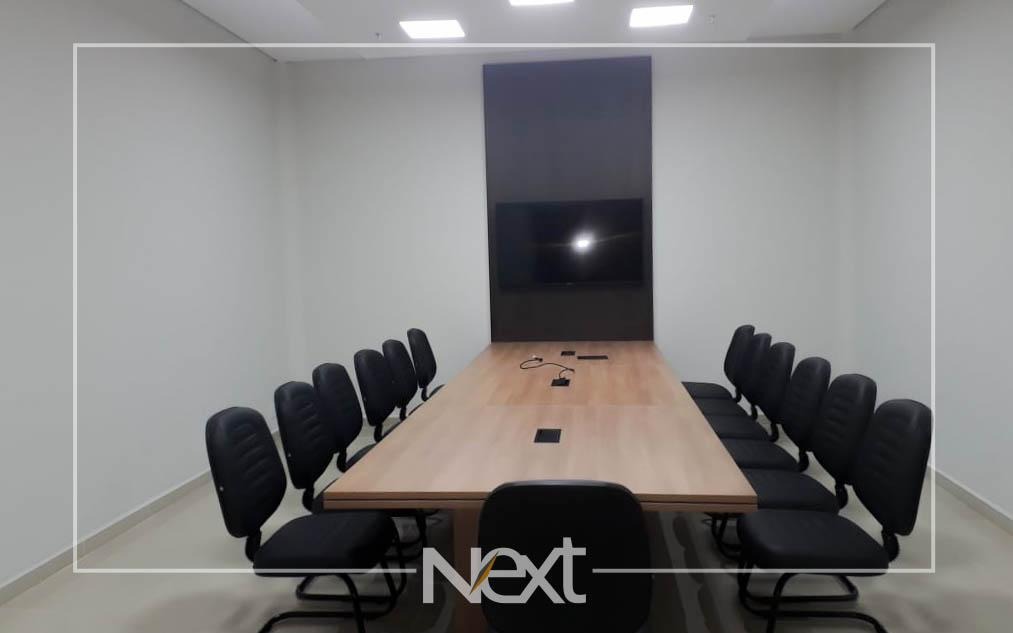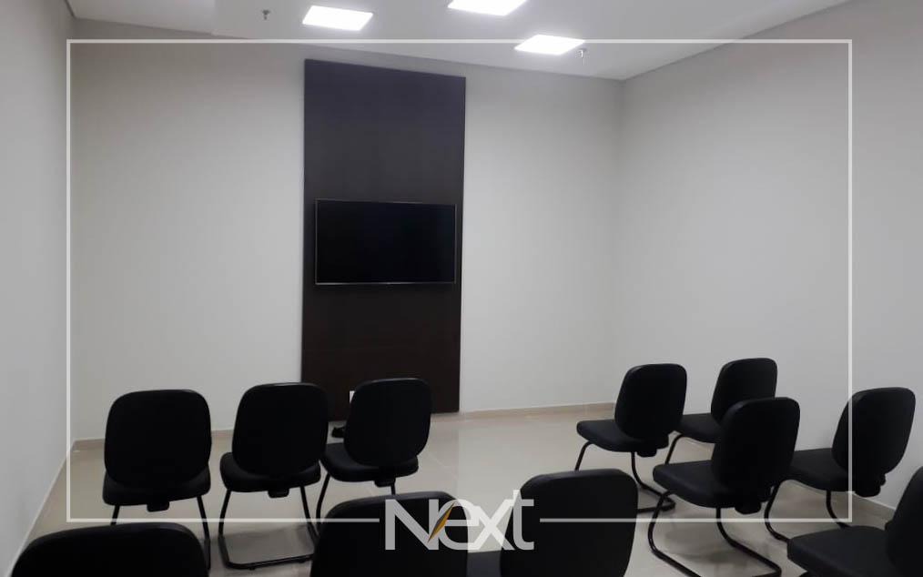 Sala comercial mobiliada, com 40m², para venda. Piso em porcelanato, com 1 banheiro, 1 copa com armários modernos, sala de reunião com 5 lugares, divisória em vidro, mesa, painel e ar condicionado, 04 estações de trabalho com armários e gaveteiros, recepção e persianas. 01 vaga de garagem coberta. Condomínio com infraestrutura completa, incluindo controle de […]