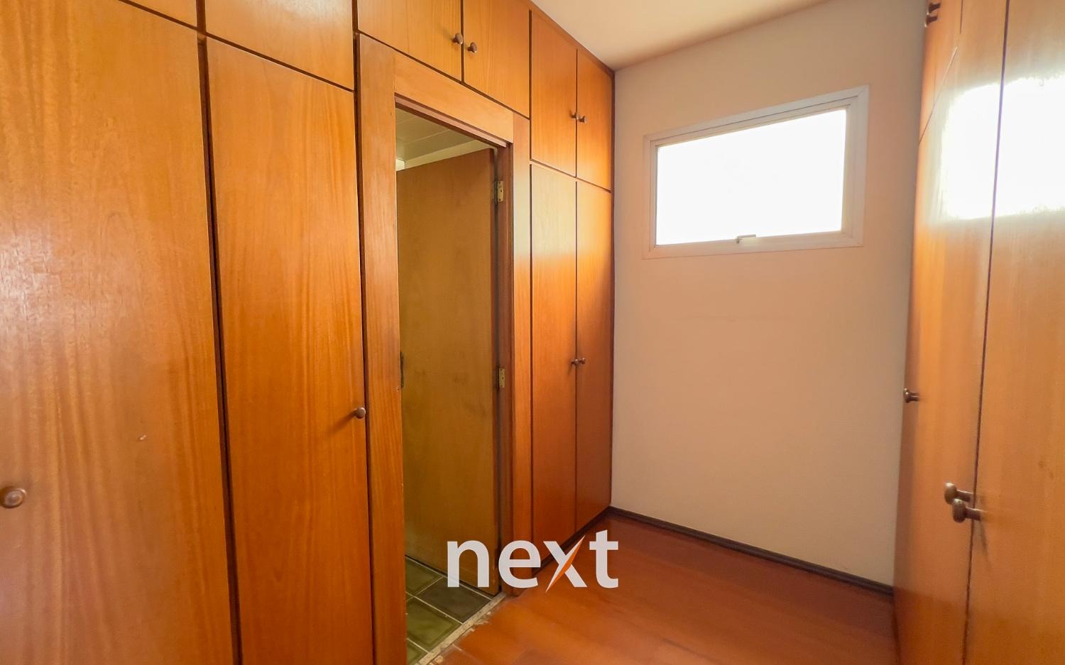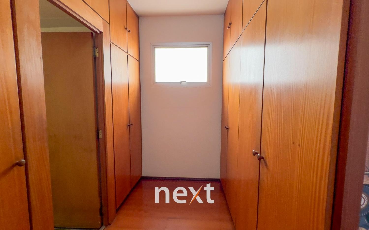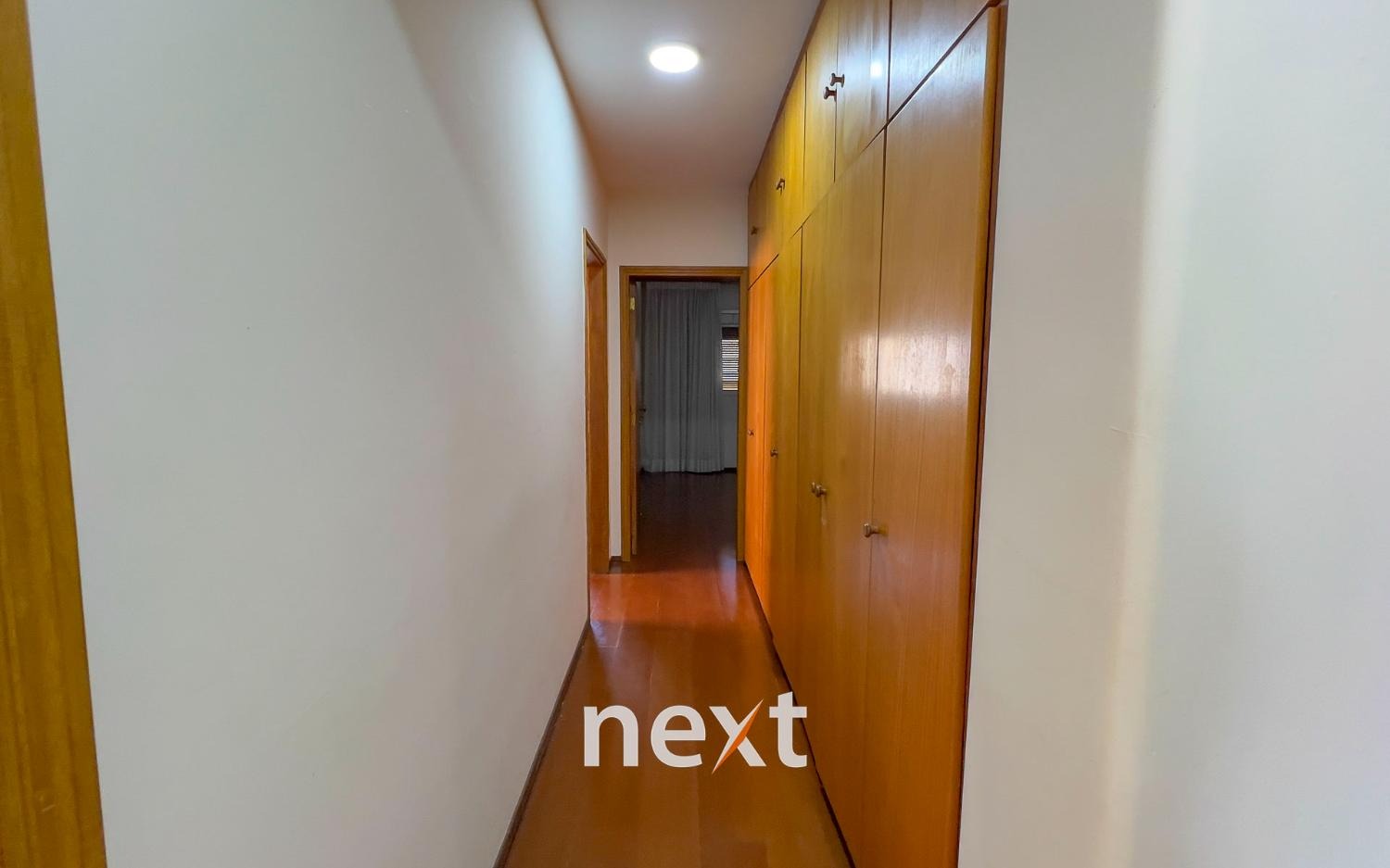 São 3 quartos, sendo um suíte, todos bem grandes e ainda no corredor de distribuição, um roupeiro.