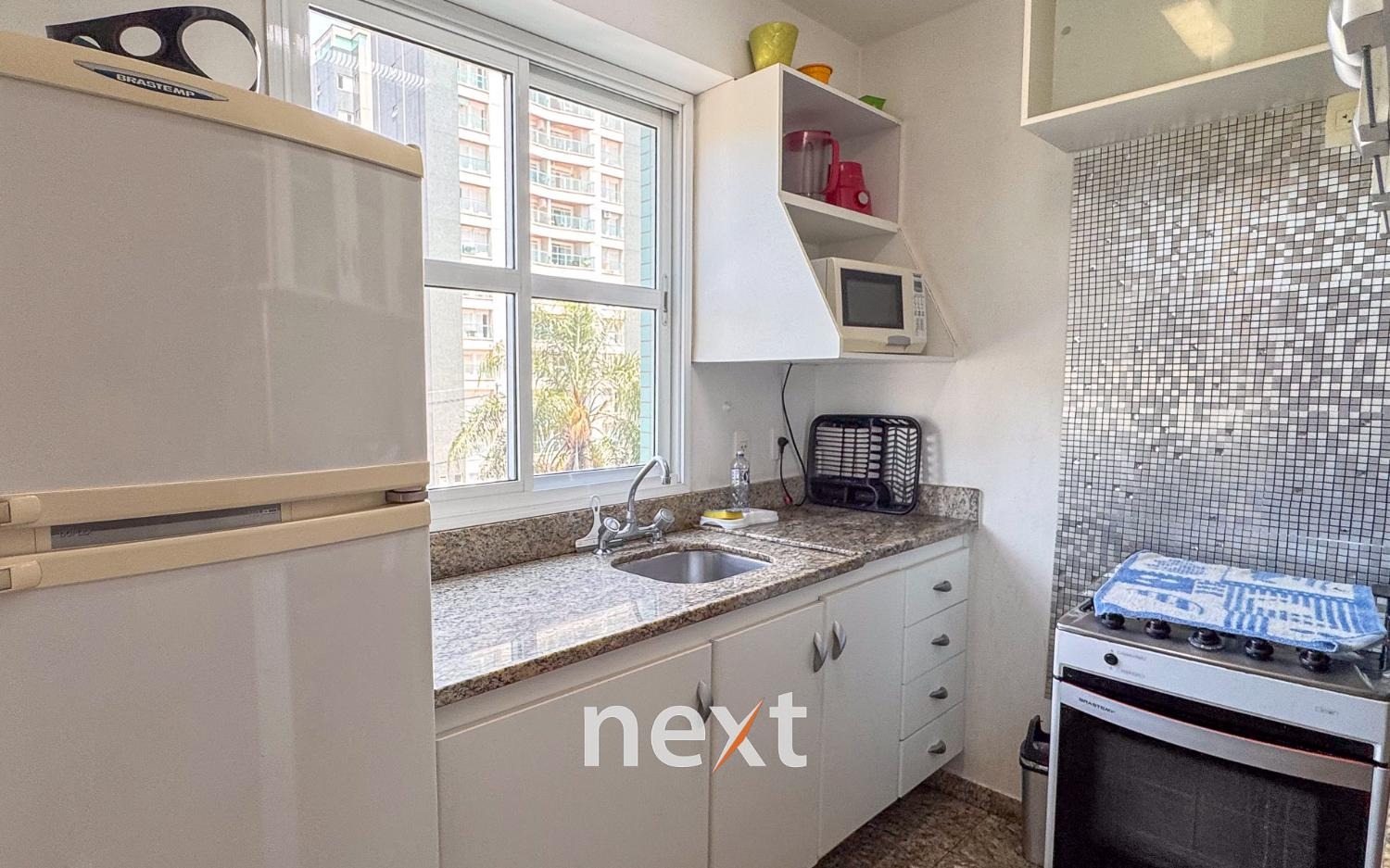 • Cozinha equipada com fogão, micro-ondas e geladeira