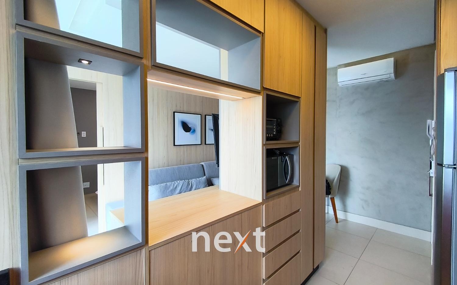 O apartamento é vendido totalmente mobiliado e equipado, com móveis e eletrodomésticos em excelente estado: