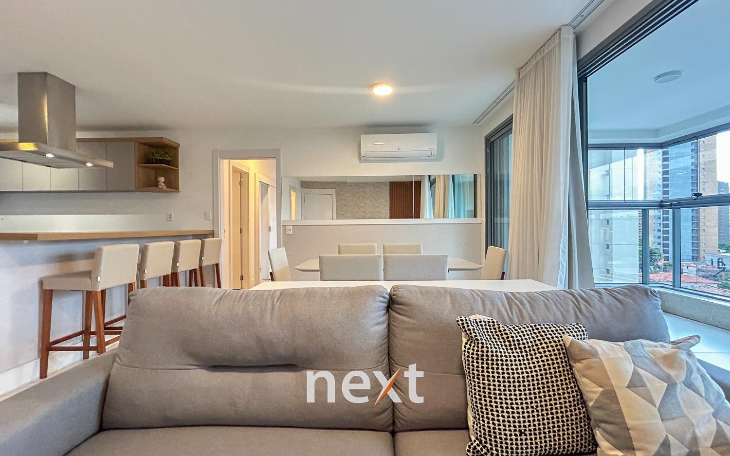 Sala ampla, integrada e muito bem iluminada