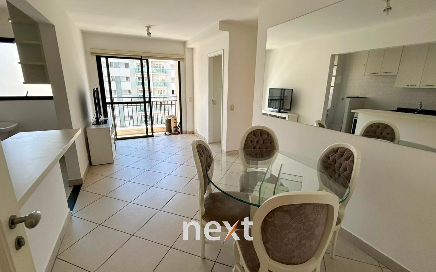 Imóvel mobiliado com living dois ambientes com sacada, dois dormitório, cozinha americana planejada com fogão, armários e ar condicionado. Está incluído no valor do condomínio: manobrista, recepção 24hs, tv a cabo, água, gás, aquecedor central, serviço de Concierge e pequenos reparos.