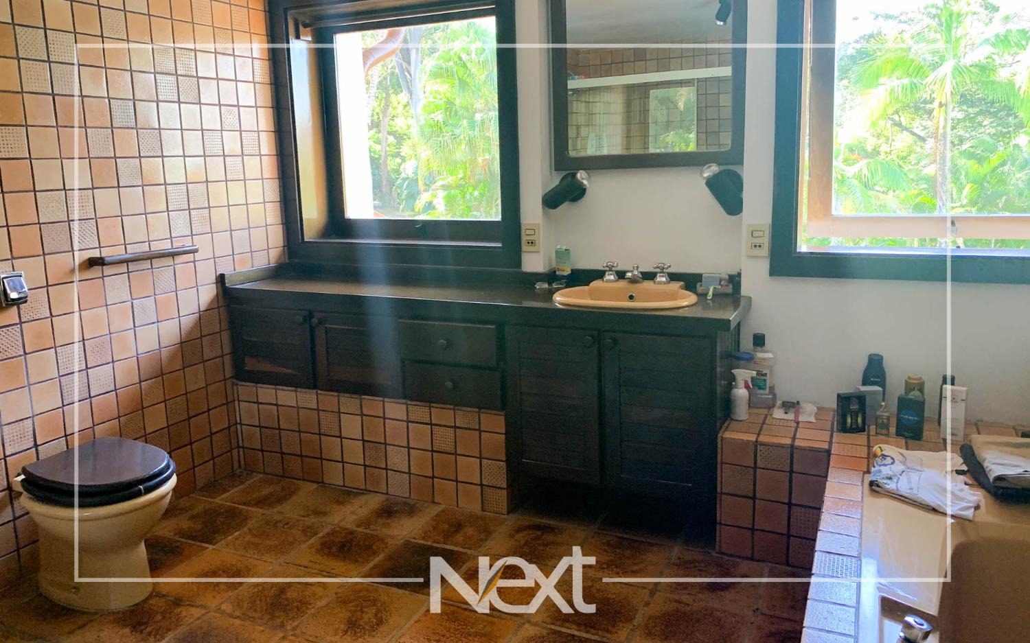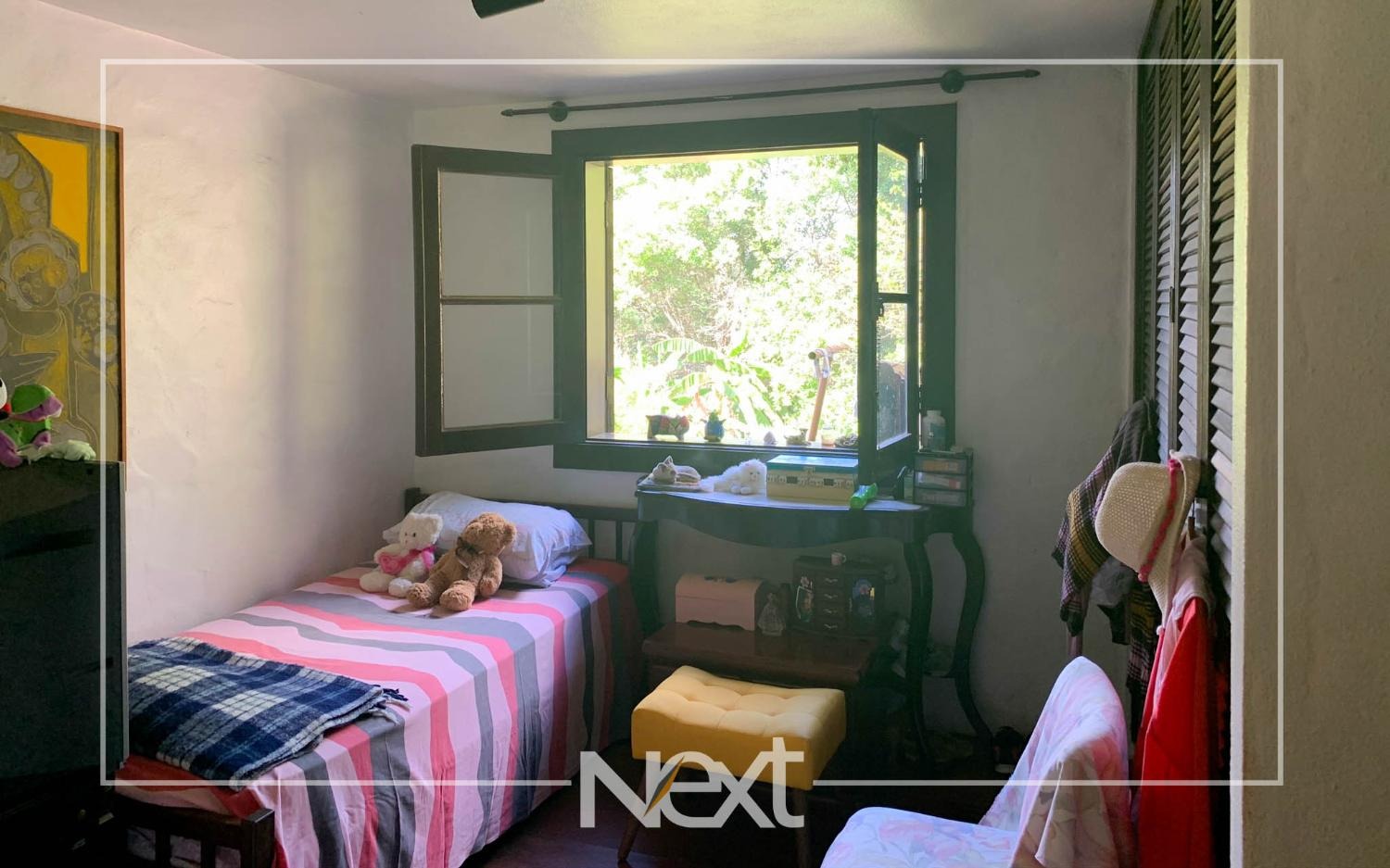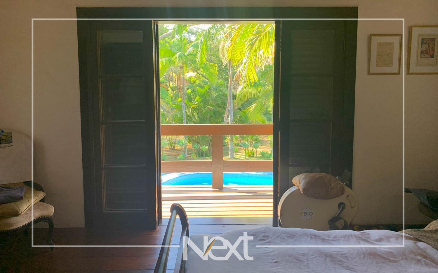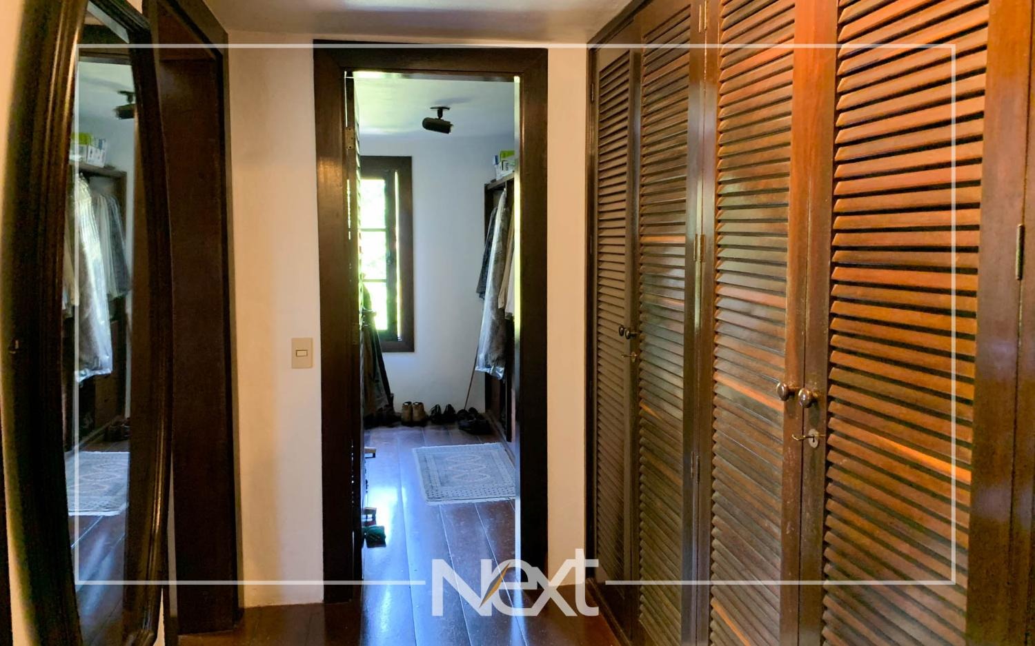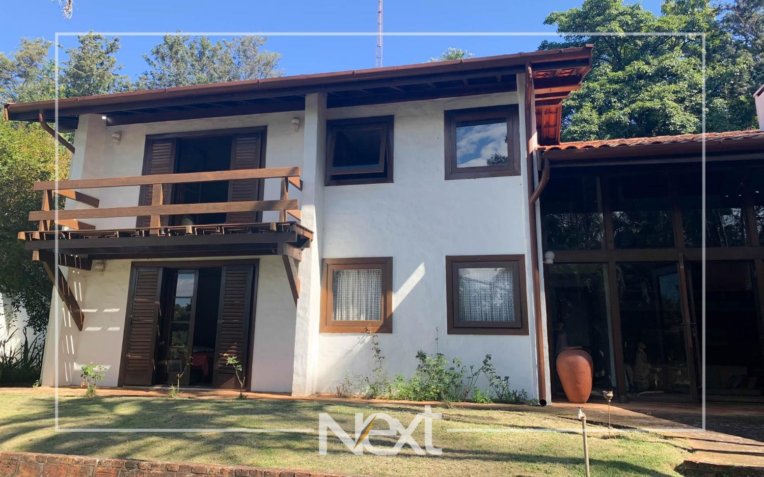 Casa bem iluminada com grandes janelas e portas.