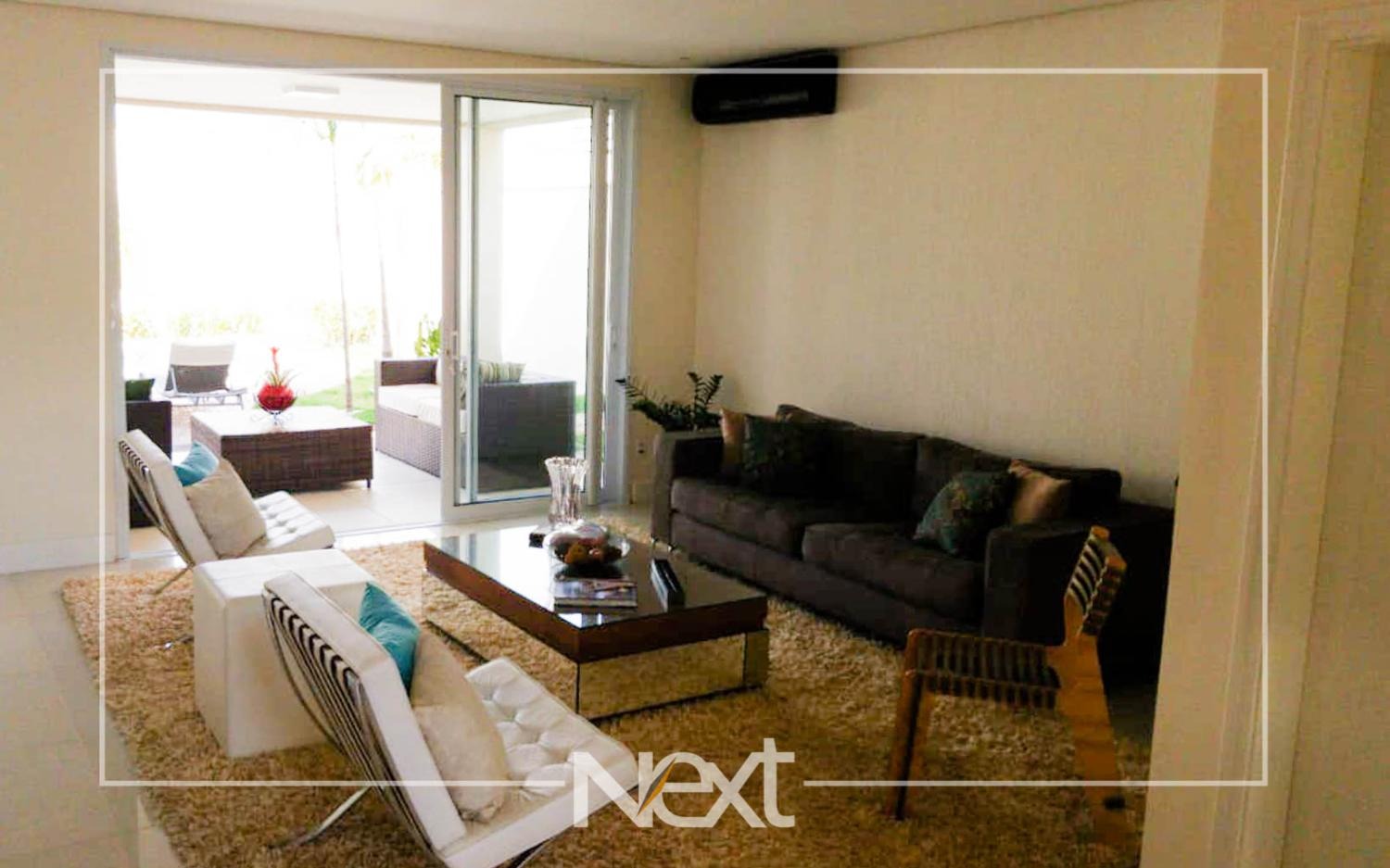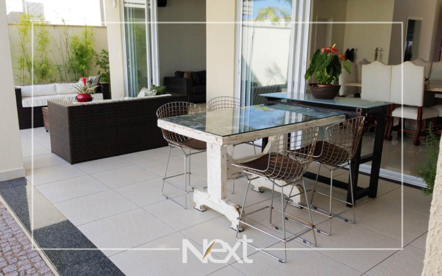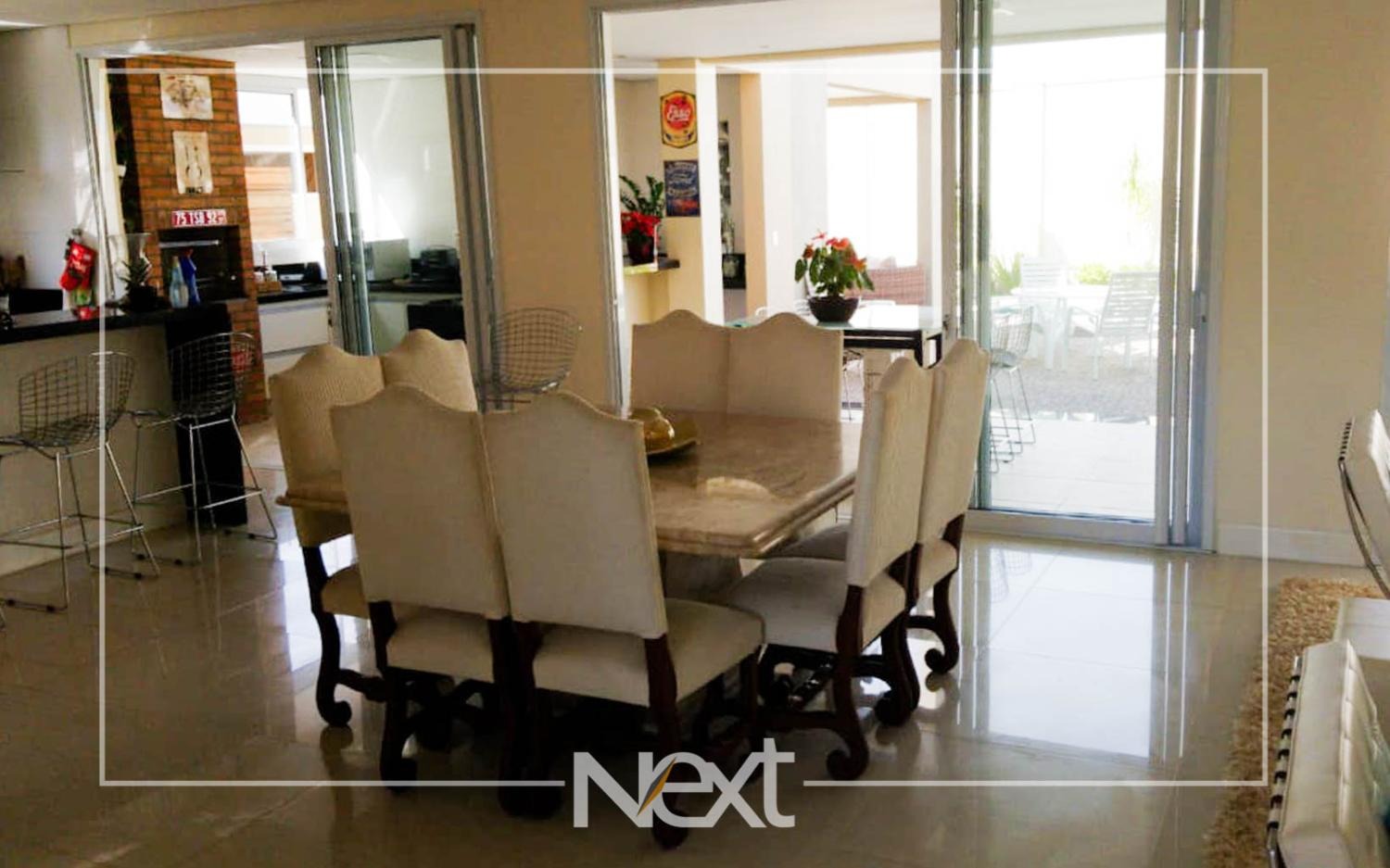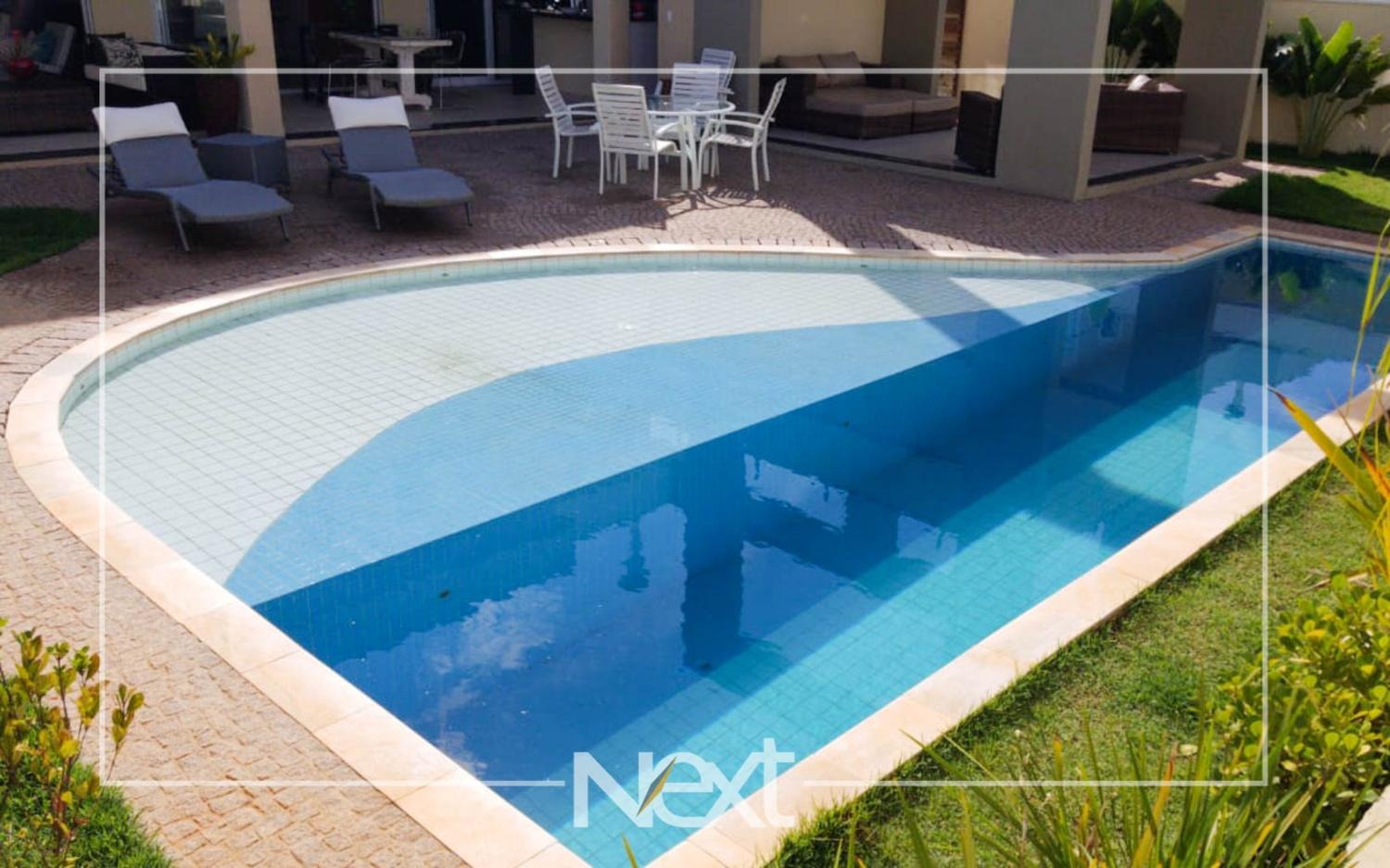 Casa no Alphaville Dom Pedro com sala para vários ambientes, escritório reversível para suíte, home theater, lavabo, cozinha planejada integrada ao espaço gourmet, piscina de raia com iluminação, cascata e deck molhado, no piso superior são quatro confortáveis suítes com closet e varanda, completa em armários, ar condicionado, aquecimento solar e a gás, seis vagas de garagem, condomínio com estrutura completa de lazer e segurança 24 horas.
