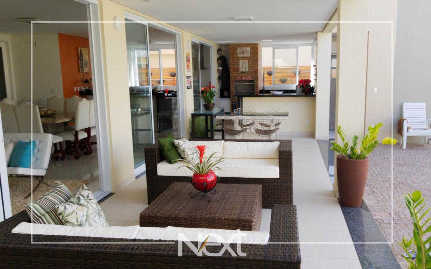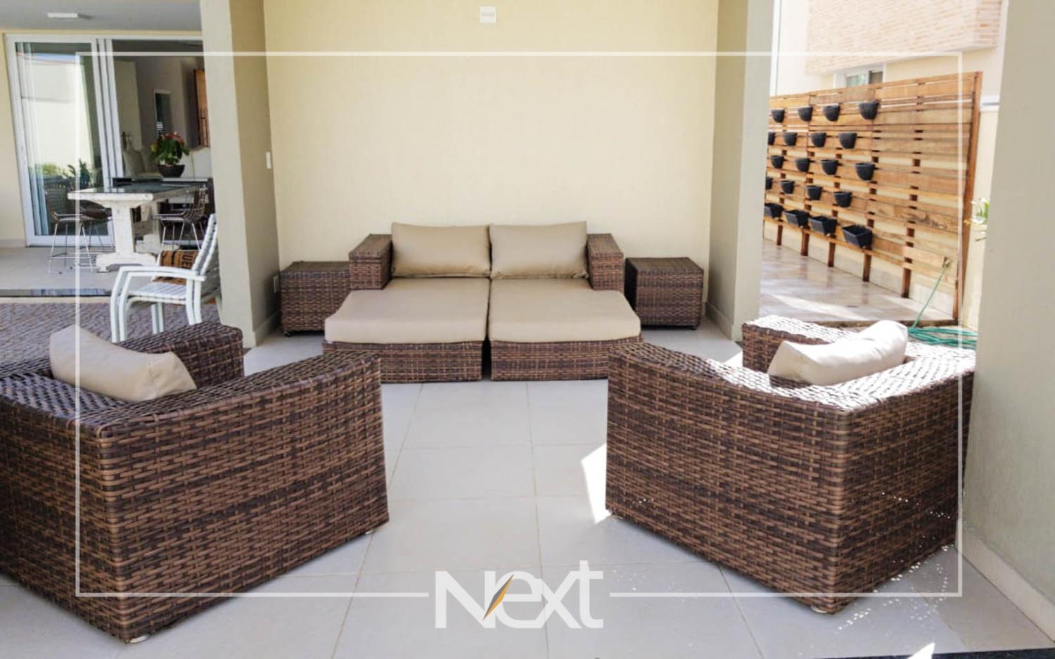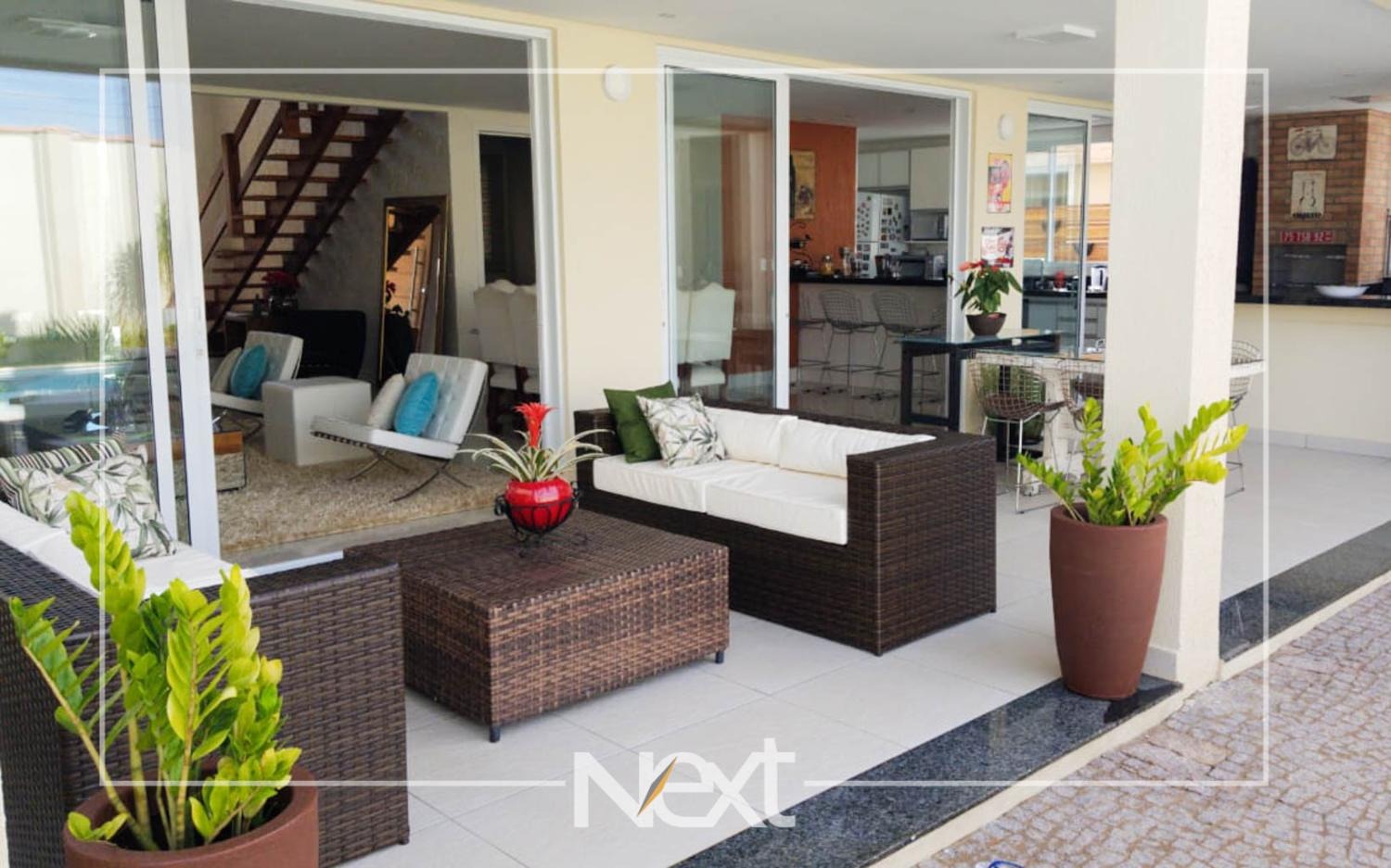 Casa no Alphaville Dom Pedro com sala para vários ambientes, escritório reversível para suíte, home theater, lavabo, cozinha planejada integrada ao espaço gourmet, piscina de raia com iluminação, cascata e deck molhado, no piso superior são quatro confortáveis suítes com closet e varanda, completa em armários, ar condicionado, aquecimento solar e a gás, seis vagas de garagem, condomínio com estrutura completa de lazer e segurança 24 horas.