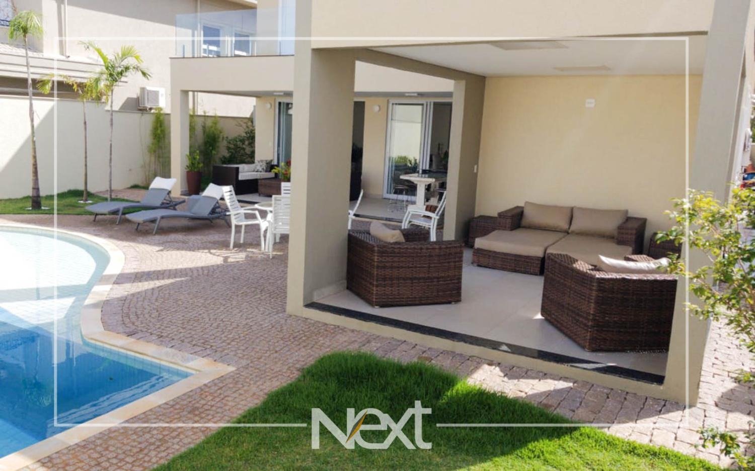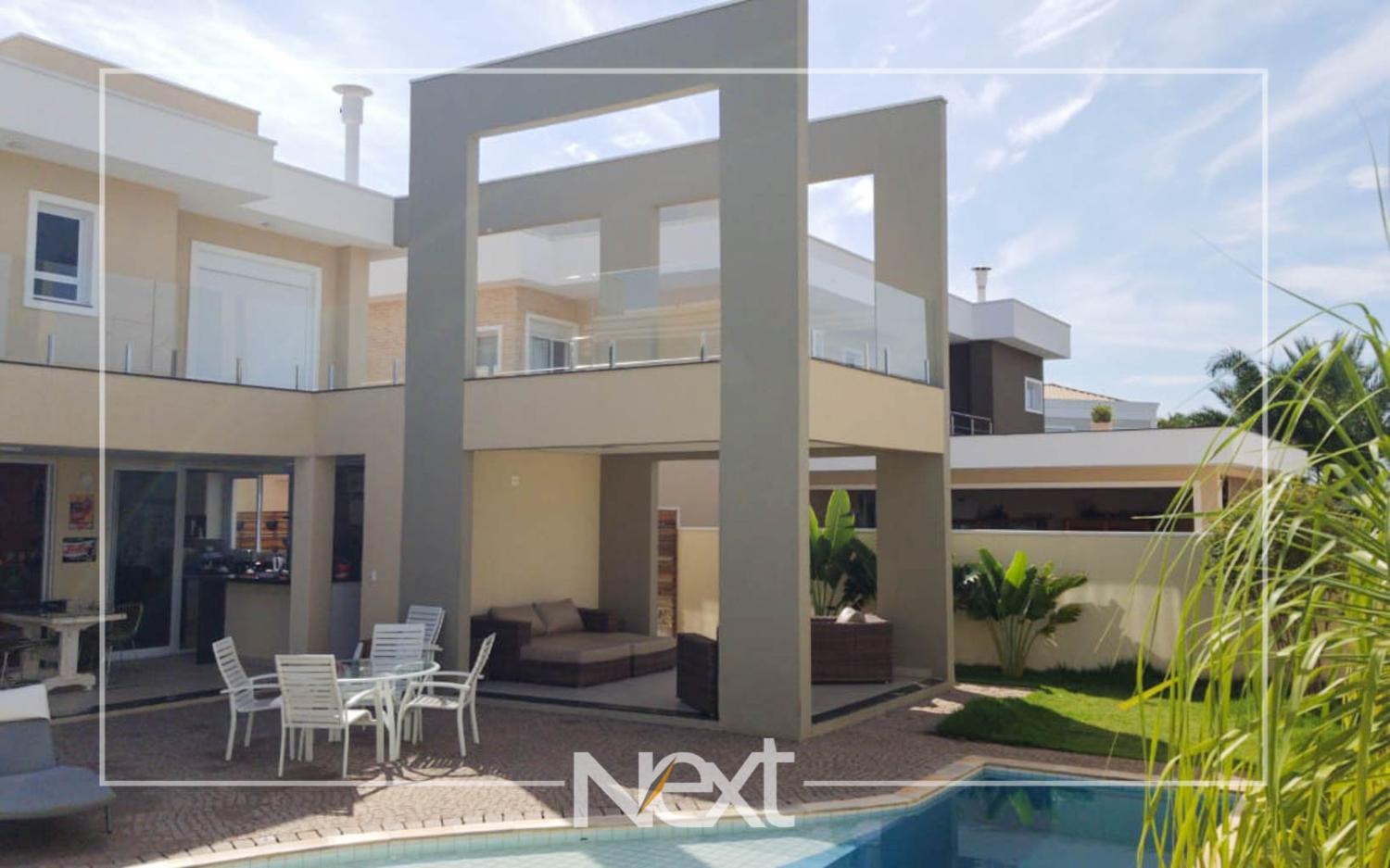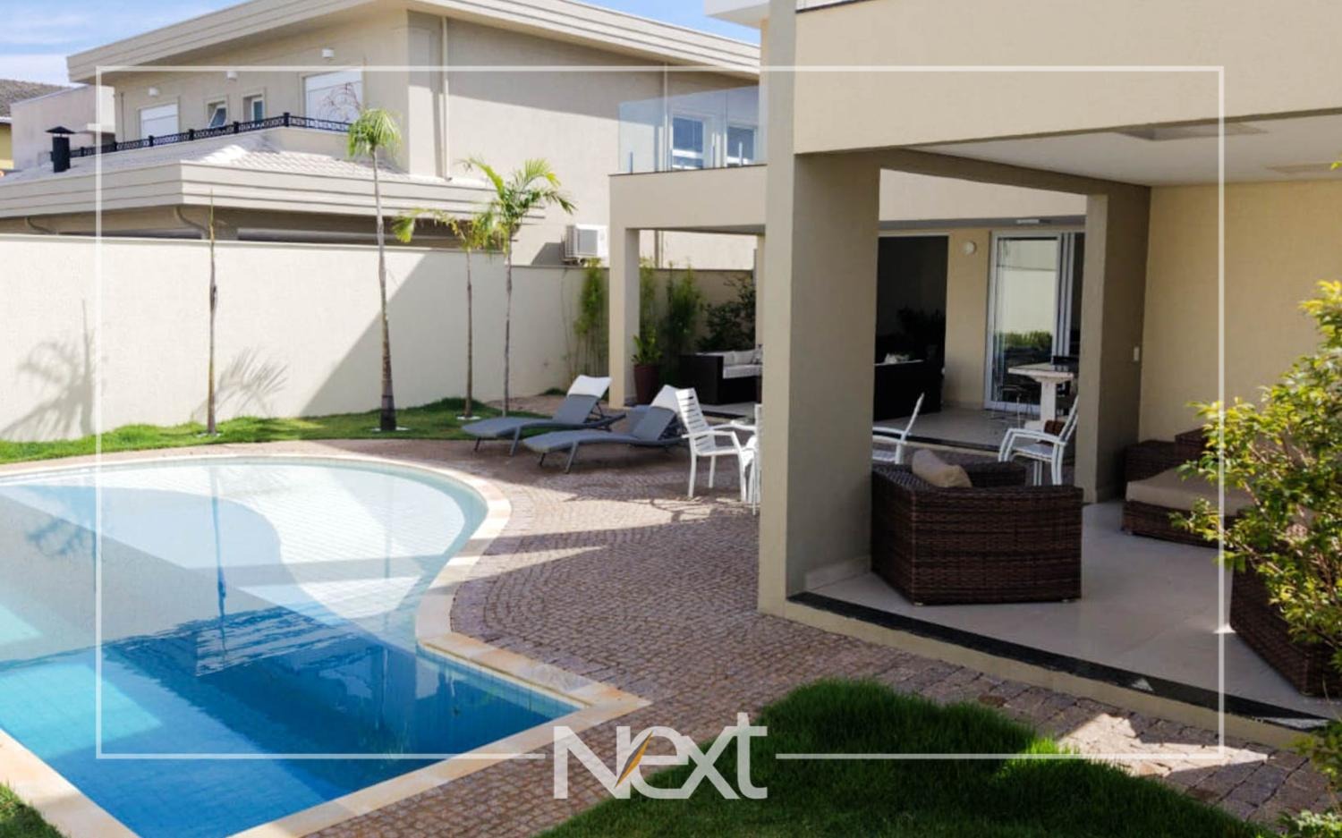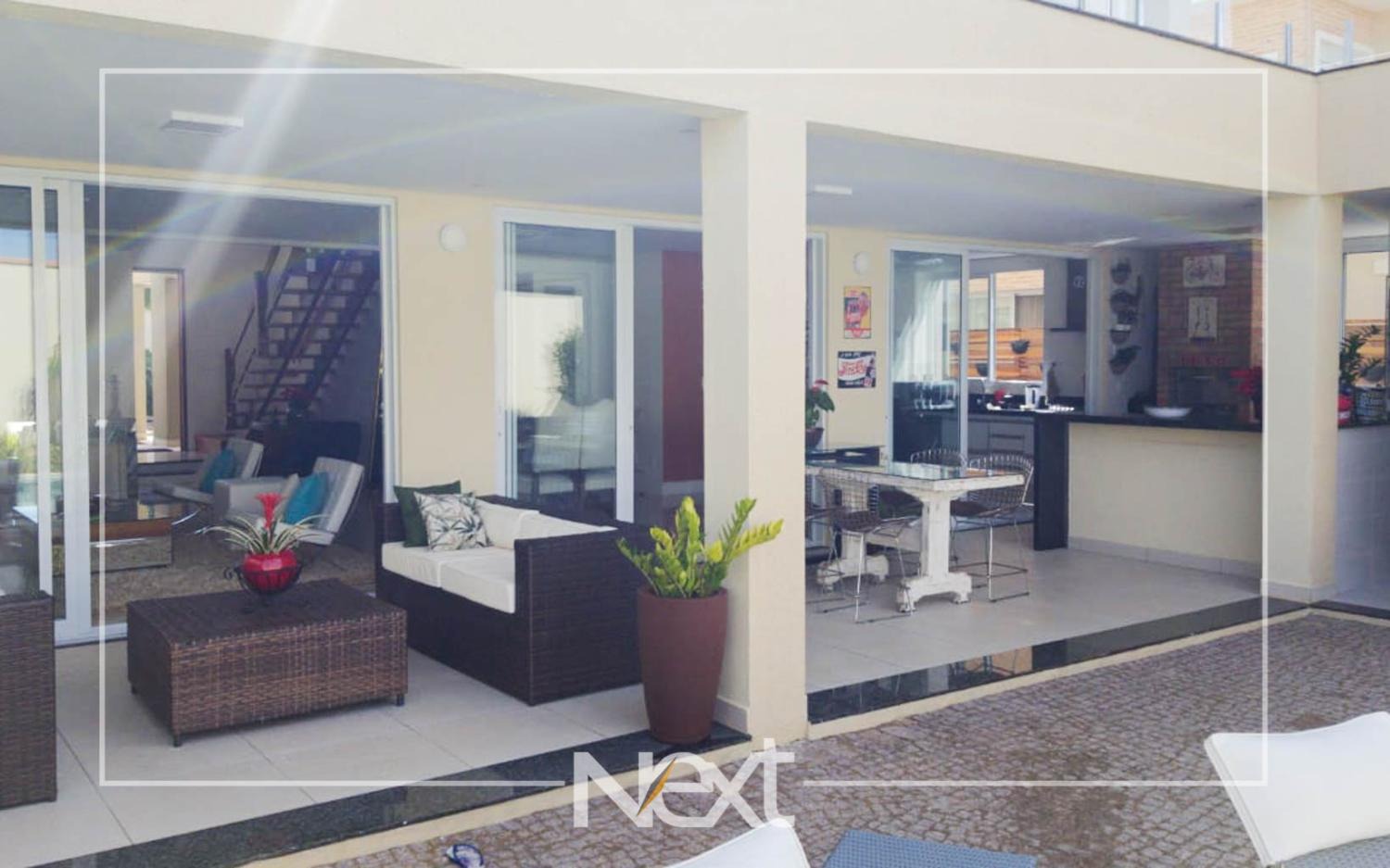 Casa no Alphaville Dom Pedro com sala para vários ambientes, escritório reversível para suíte, home theater, lavabo, cozinha planejada integrada ao espaço gourmet, piscina de raia com iluminação, cascata e deck molhado, no piso superior são quatro confortáveis suítes com closet e varanda, completa em armários, ar condicionado, aquecimento solar e a gás, seis vagas de garagem, condomínio com estrutura completa de lazer e segurança 24 horas.
