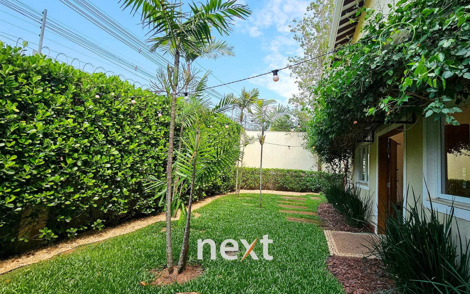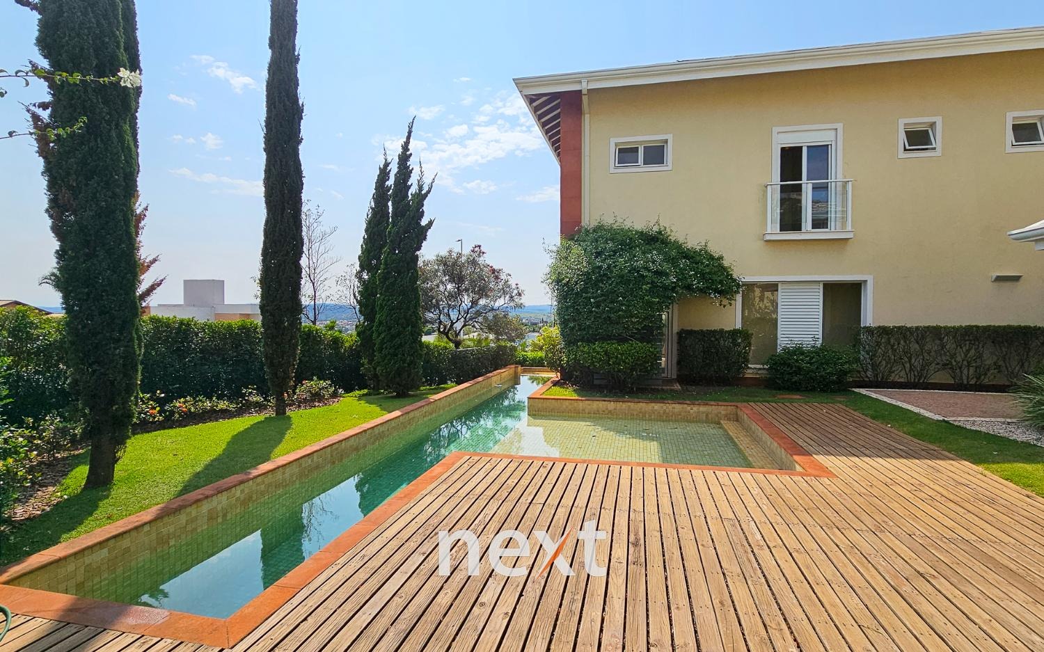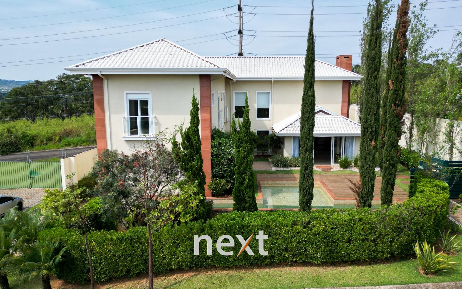 A área externa da casa é um verdadeiro oásis, a piscina com raia de 13 metros para os amantes da natação e a prainha para as crianças aproveitarem os dias quentes.
