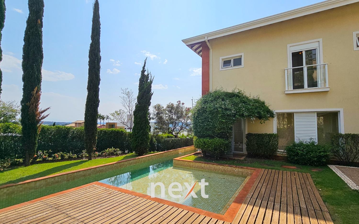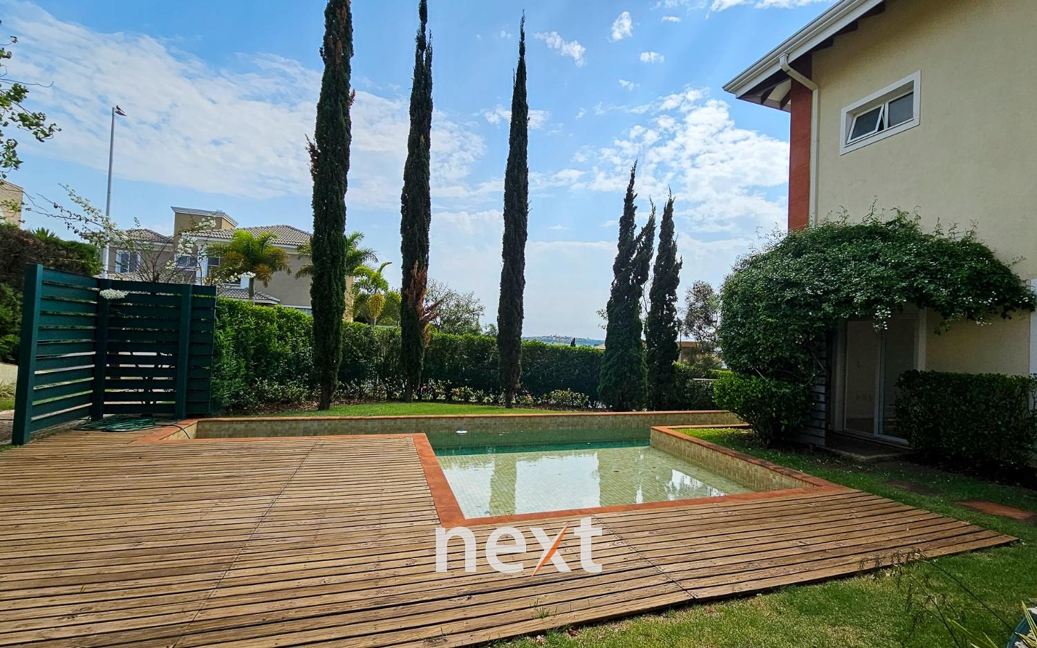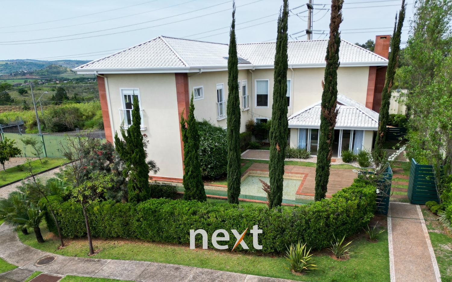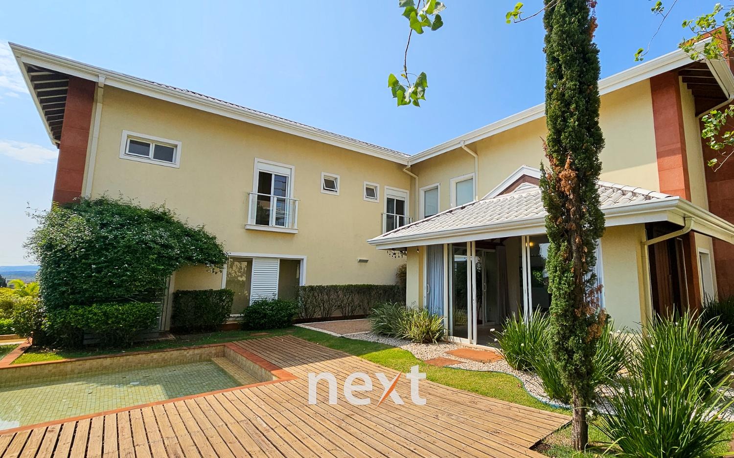 A área externa da casa é um verdadeiro oásis, a piscina com raia de 13 metros para os amantes da natação e a prainha para as crianças aproveitarem os dias quentes.