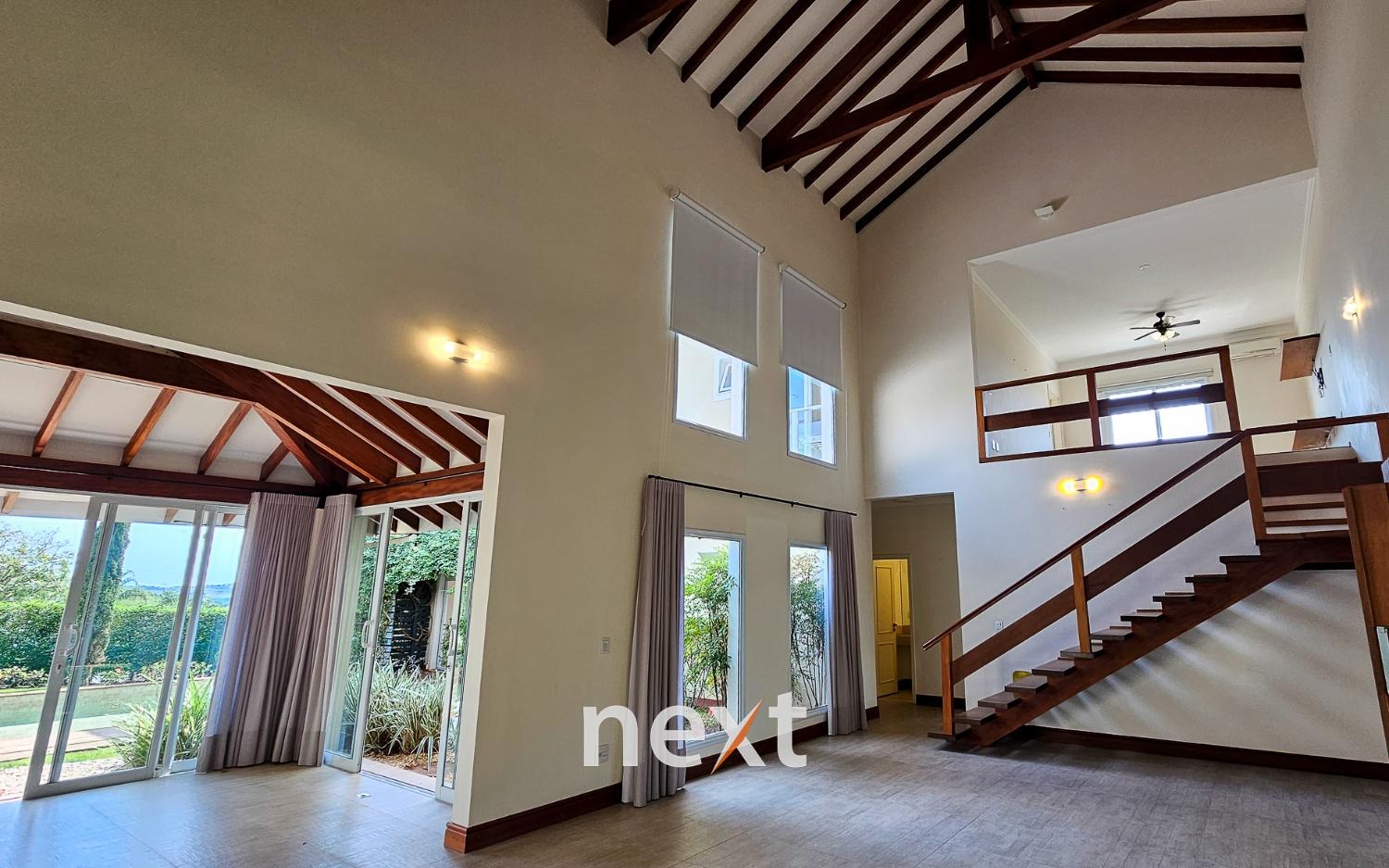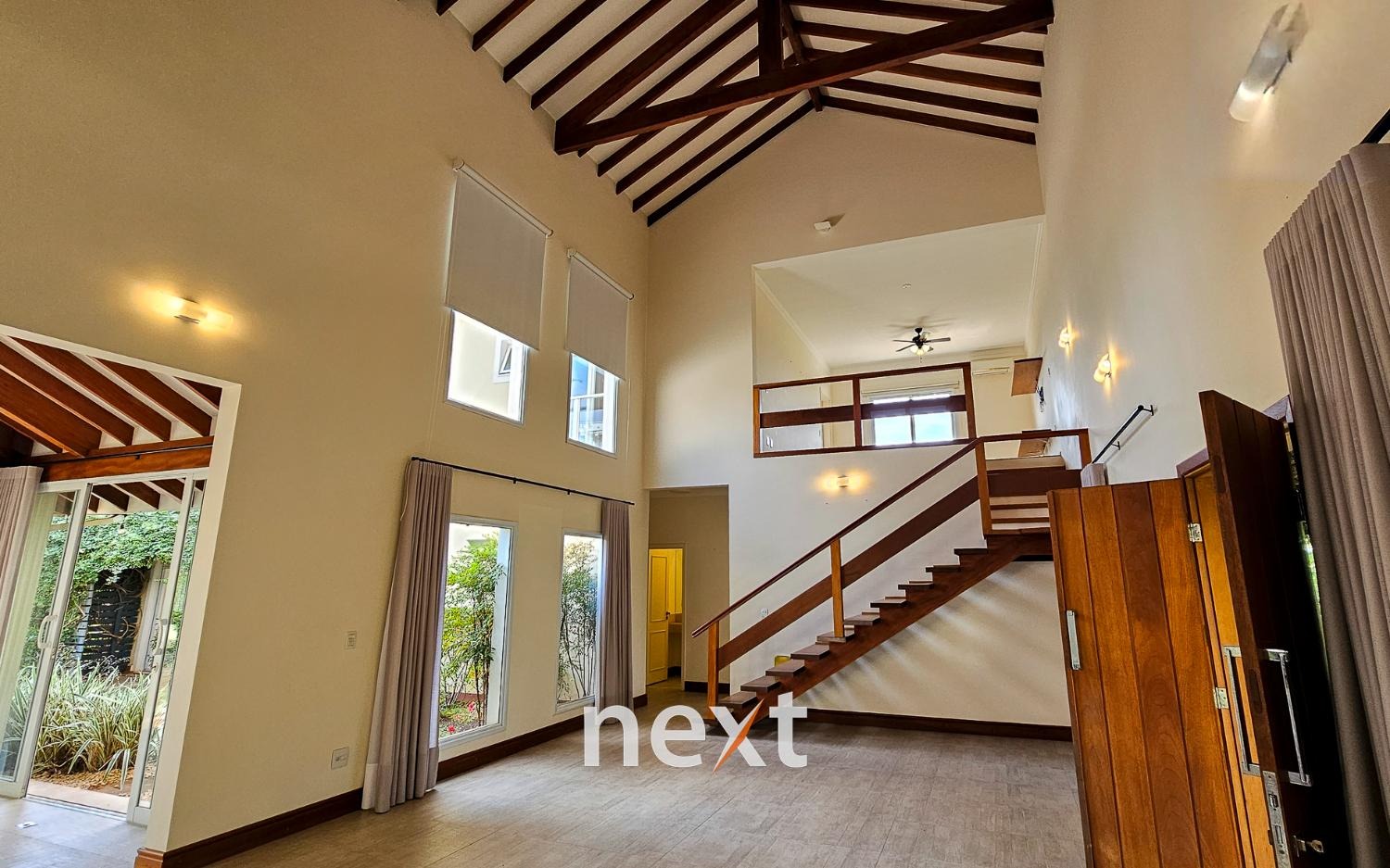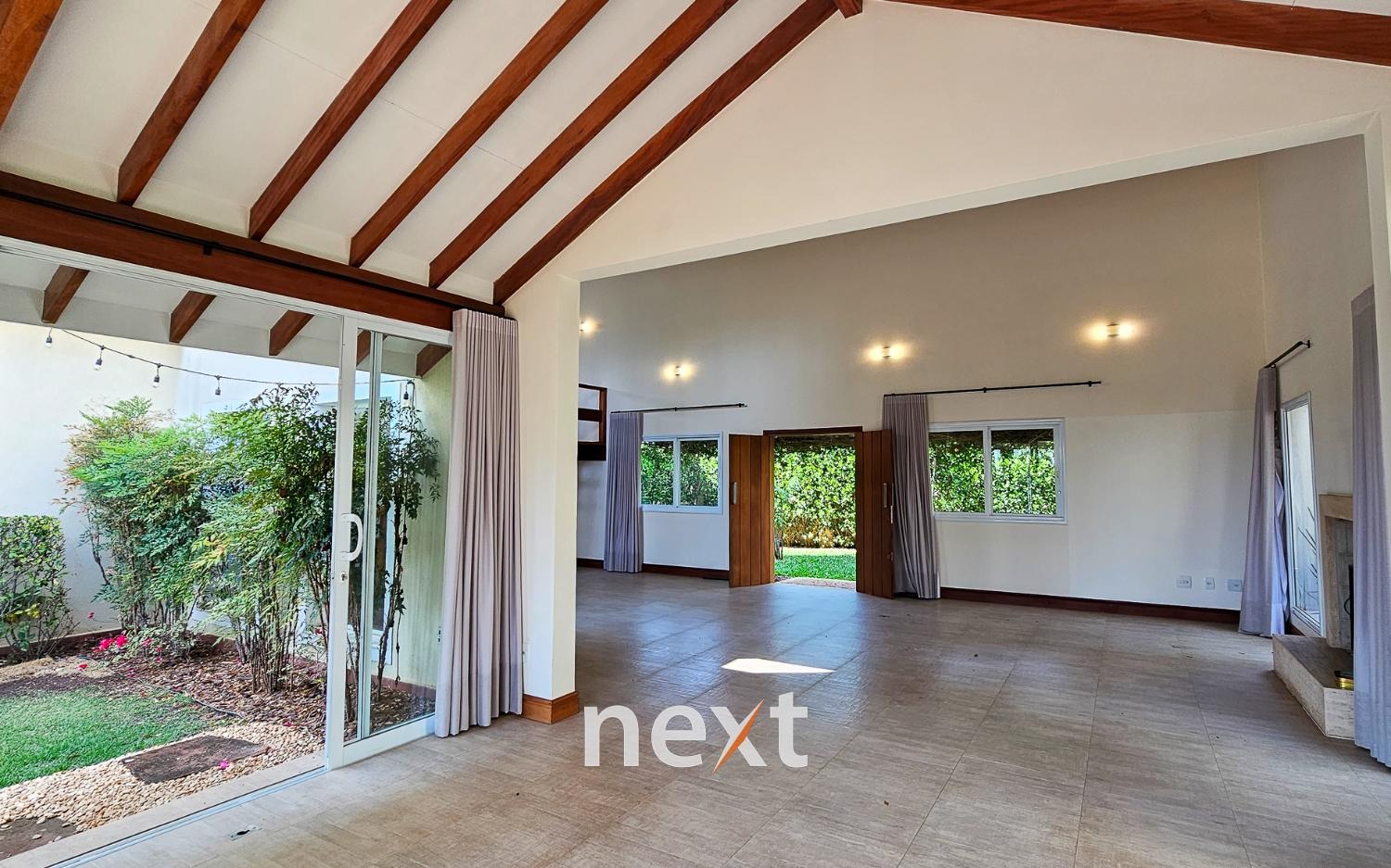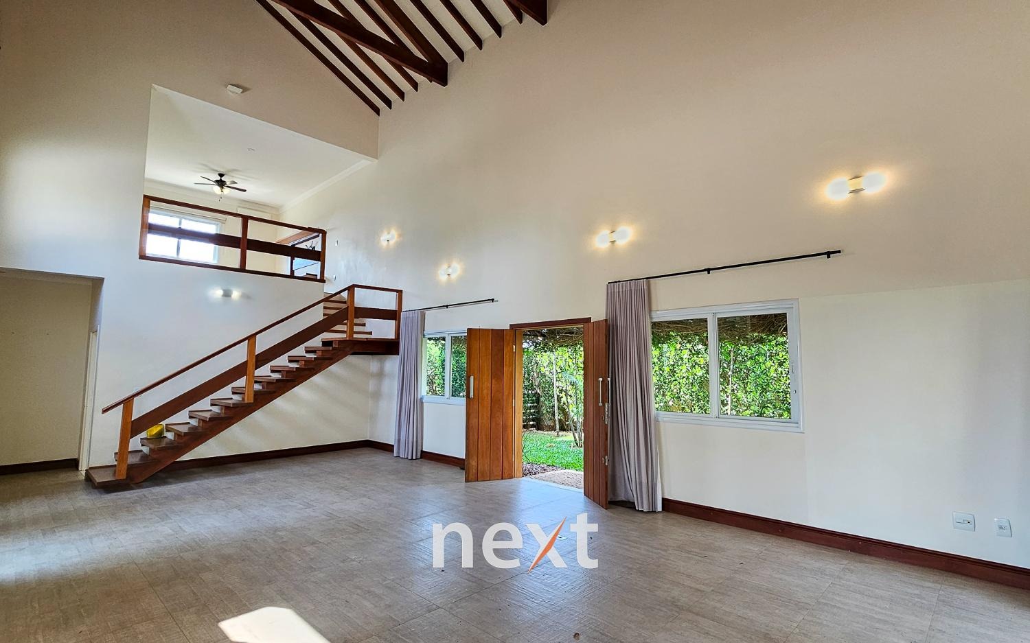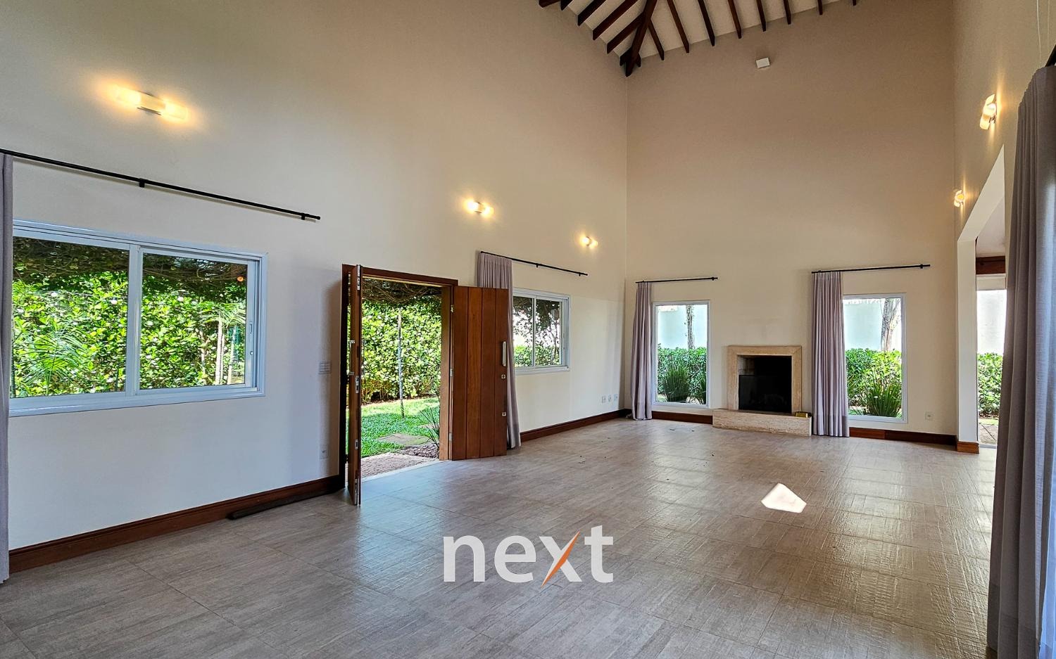 Assim que você cruza a porta da frente, fica evidente o impressionante pé direito, que confere uma sensação de amplitude e grandiosidade a todos os ambientes da casa. A luz natural flui abundantemente pelas amplas janelas, criando uma atmosfera arejada e iluminada.