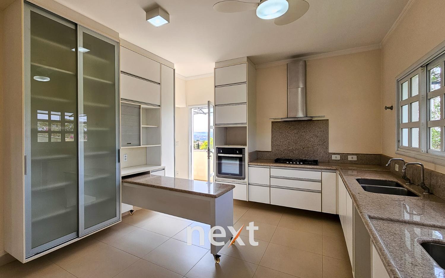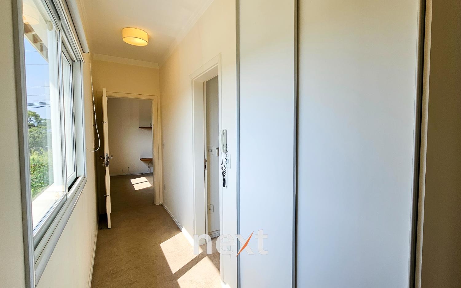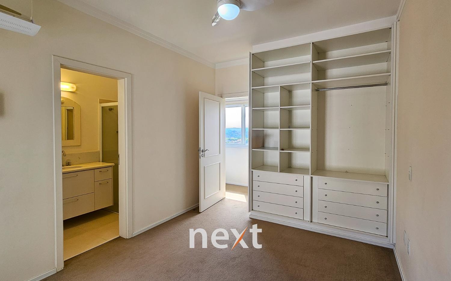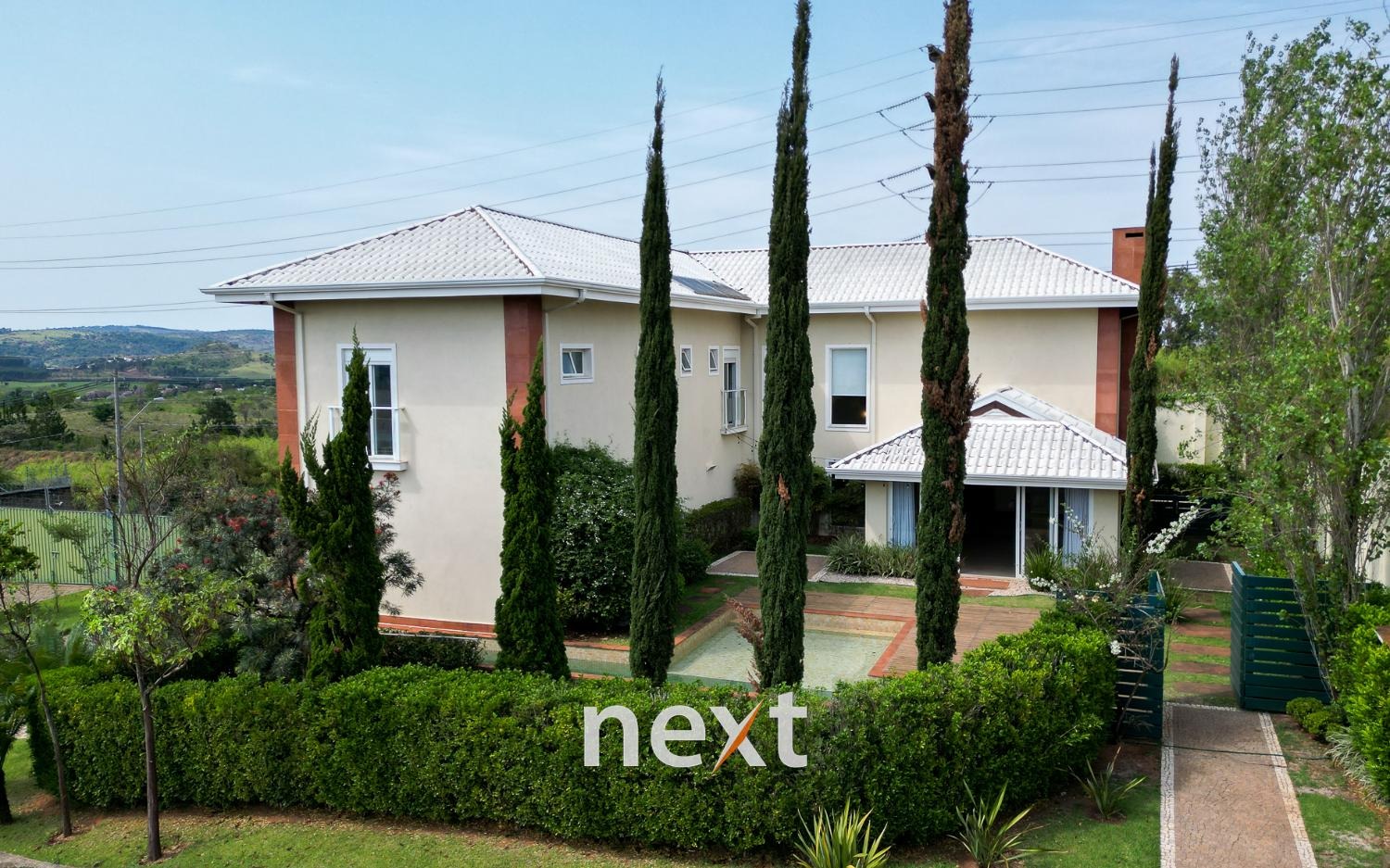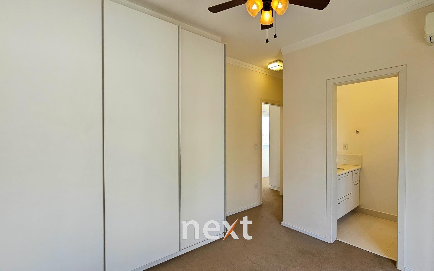 O sobrado possui quatro suítes luxuosas, todas ricas em armários, sendo a master no térreo e comum closet elegantemente projetado. Os quartos oferecem conforto e privacidade, e uma vista encantadora.