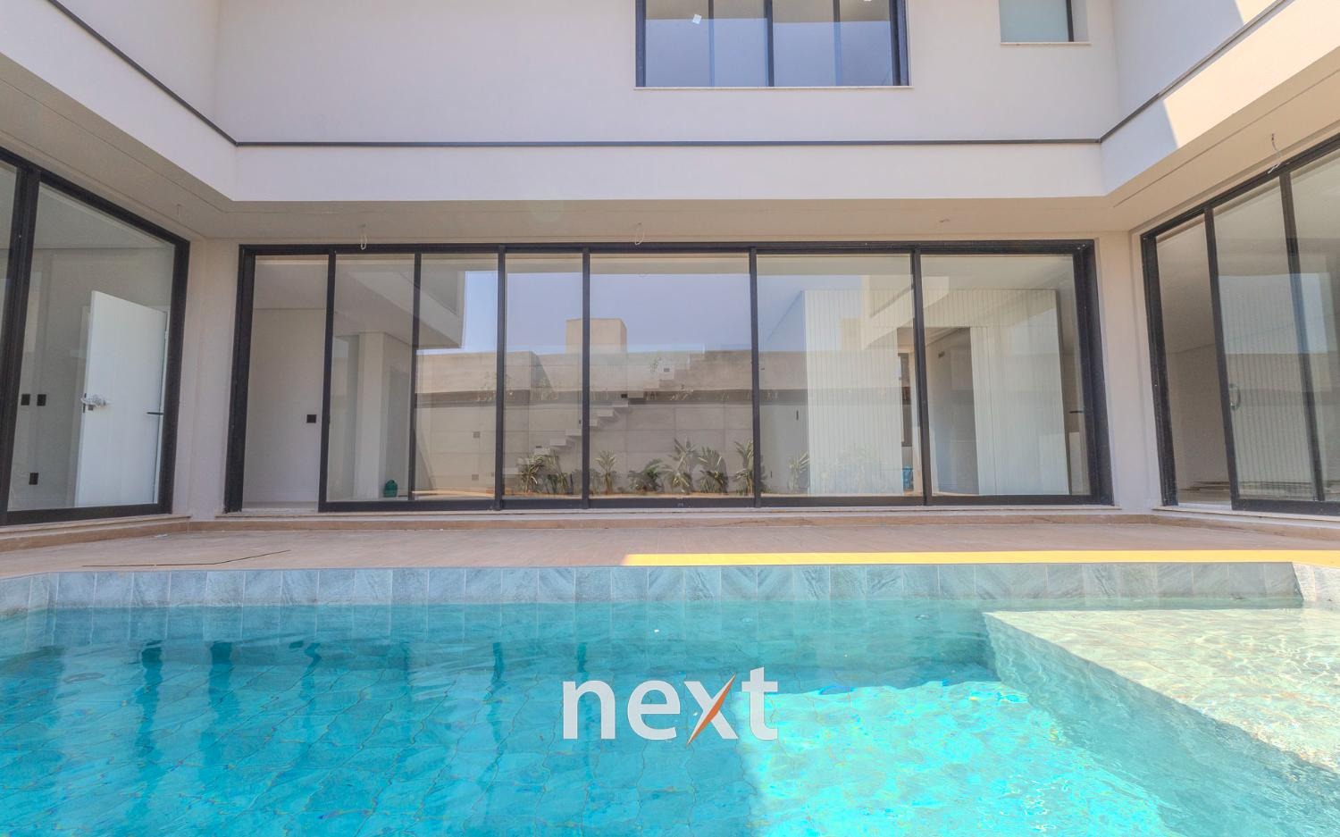 Piscina com motores completos, iluminação e estrutura de aquecimento.