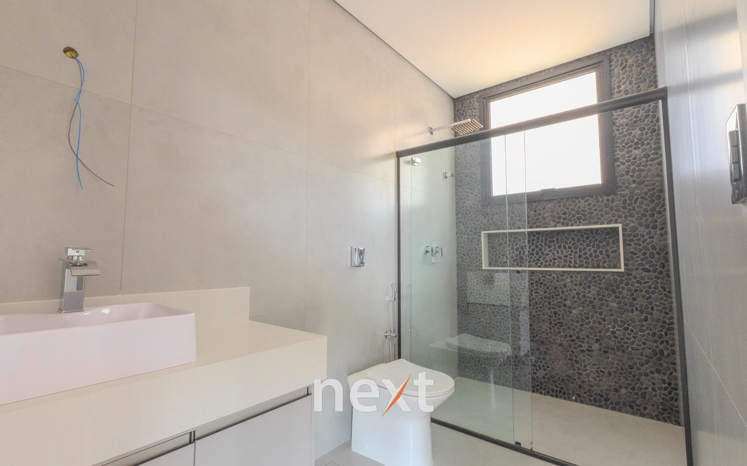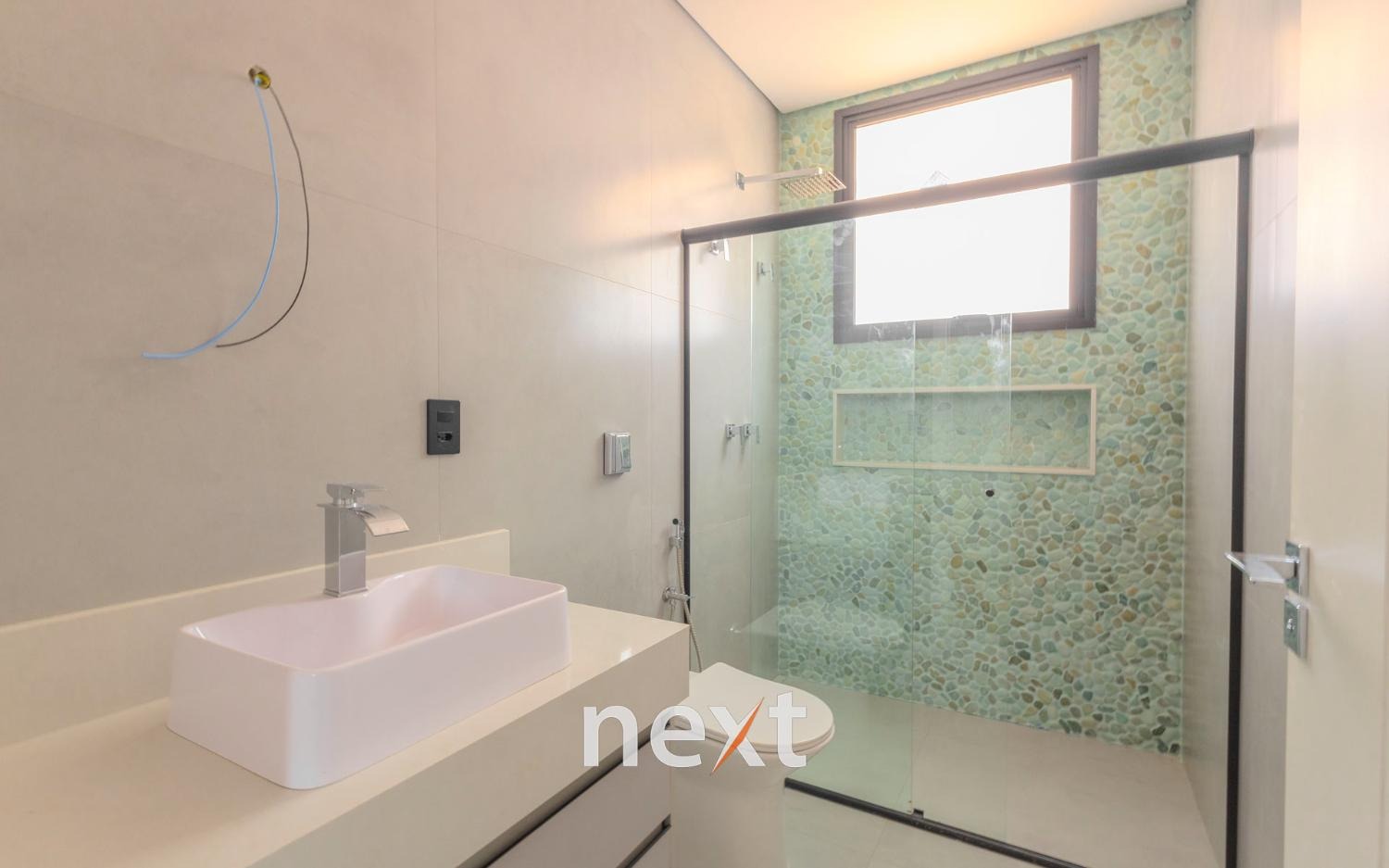 No andar superior, possui 4 suítes, janelas com telas (mosquiteiro) e persianas automatizadas, sendo que a suíte master conta com janelas em 2 lados e mega closet, repleto de armários com iluminação led e bancada central.