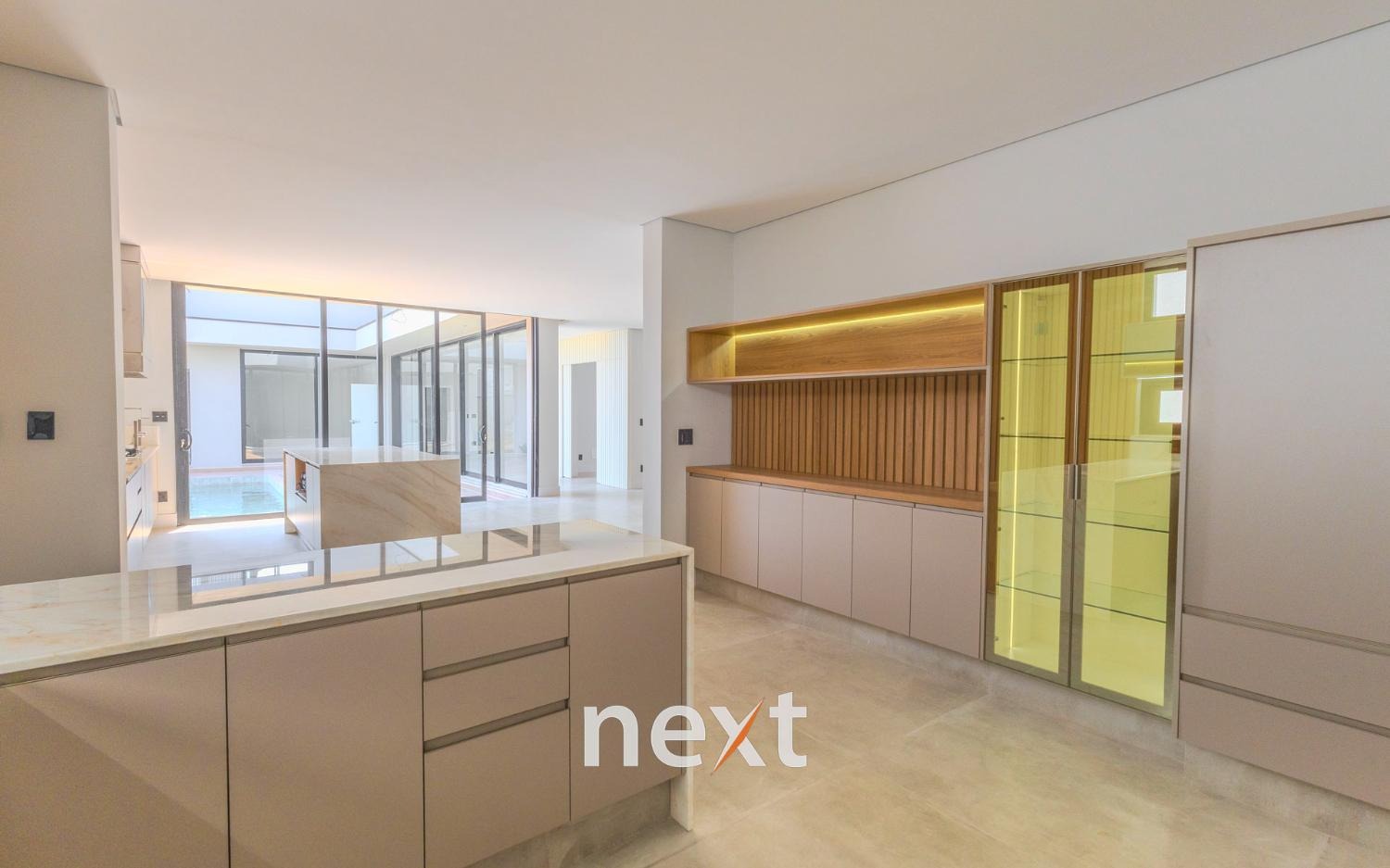No andar inferior, conta com lavabo, 2 salas de estar, home theater/sala de TV, escritório reversível, jardim interno na sala.