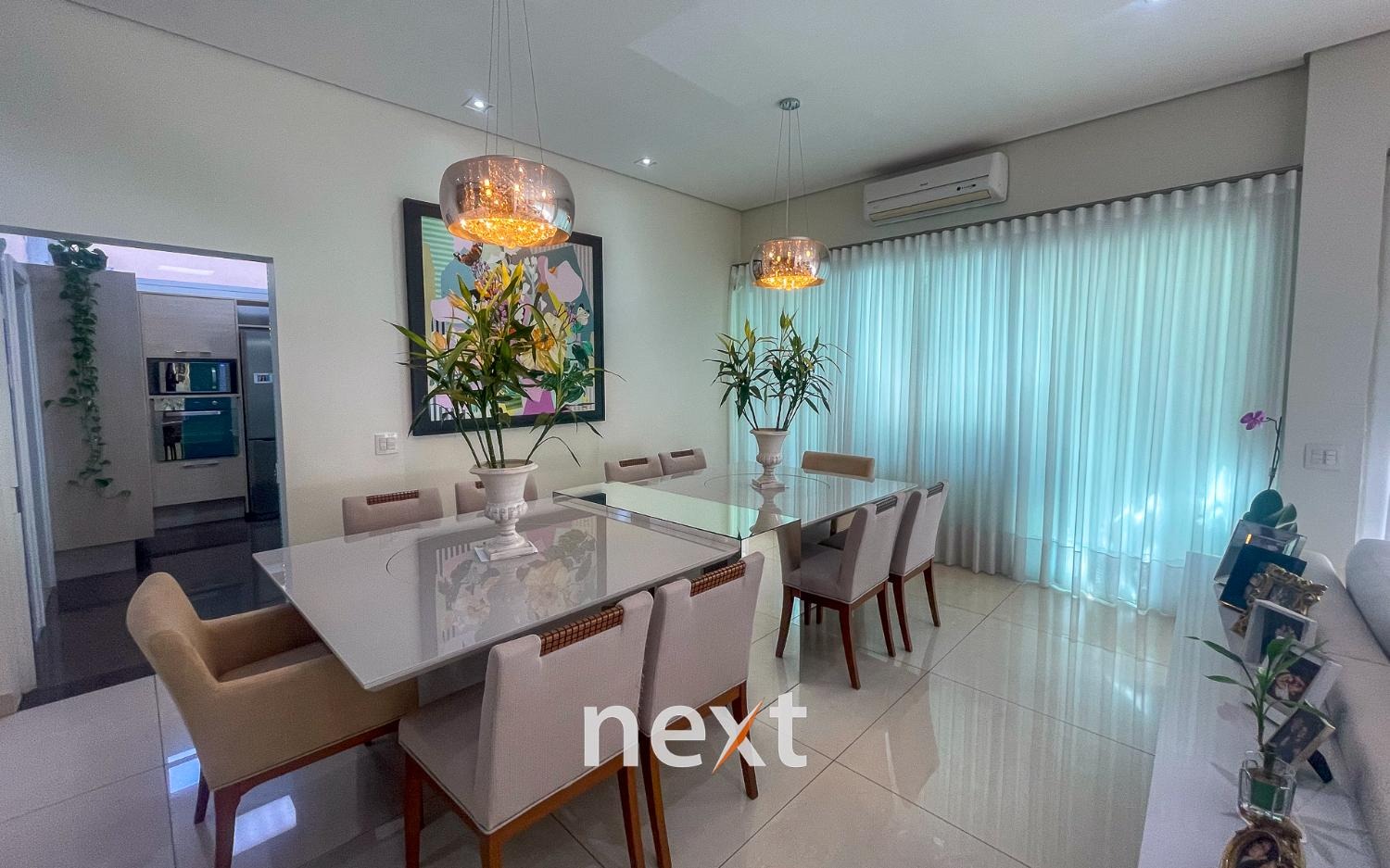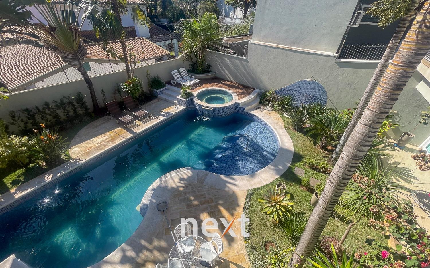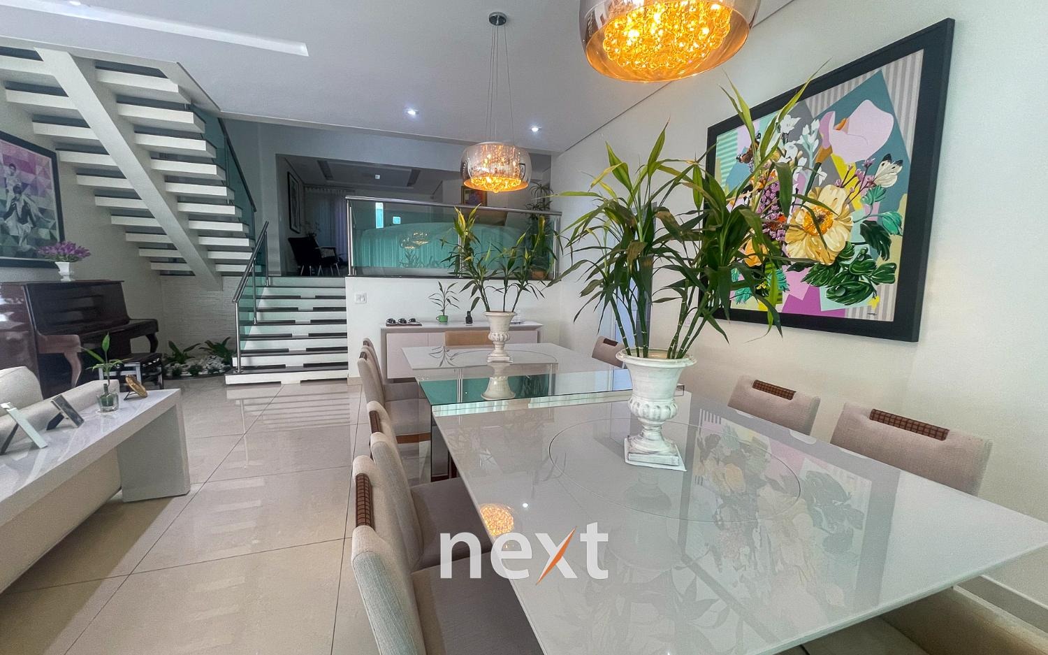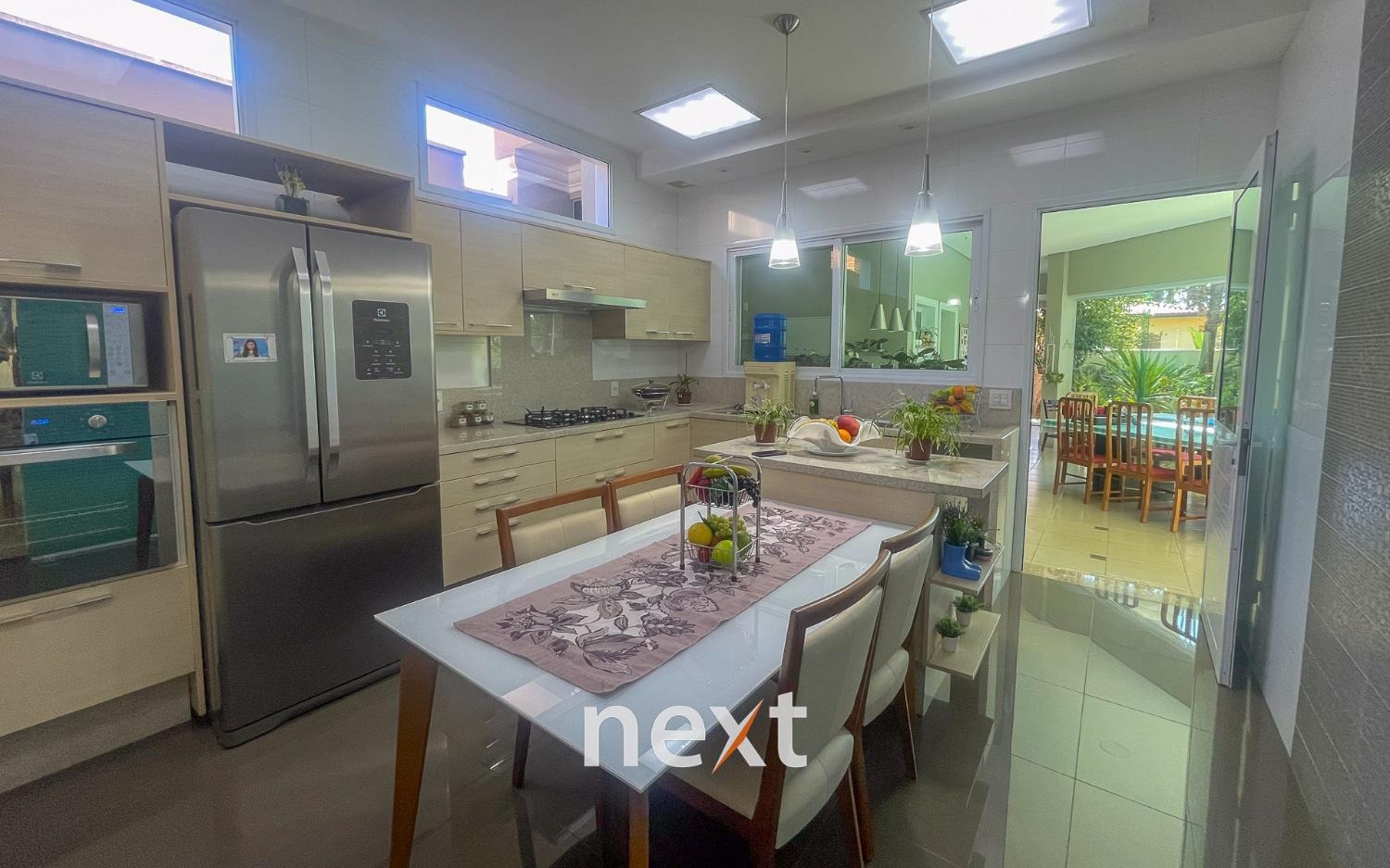 Lindo sobrado com 3 suites e mais 1 quarto, com closet e armários planejados . Todos os cômodos tem acesso a ampla varanda com uma linda vista para o jardim e piscina. São 7 banheiros sendo 1 com hidromassagem. Cozinha planejada com acesso direto a área de lazer, à piscina, churrasqueira e espaço gourmet.