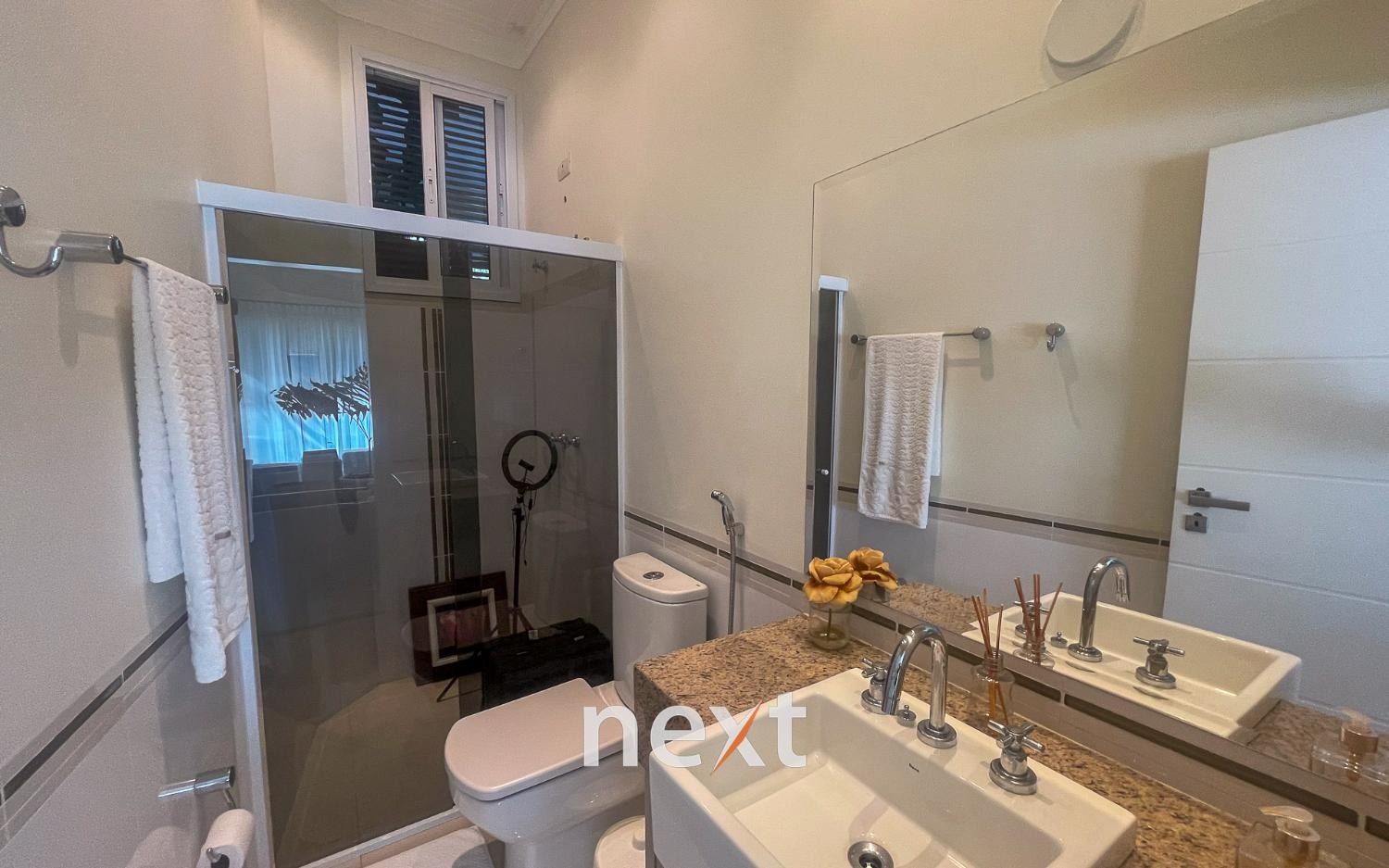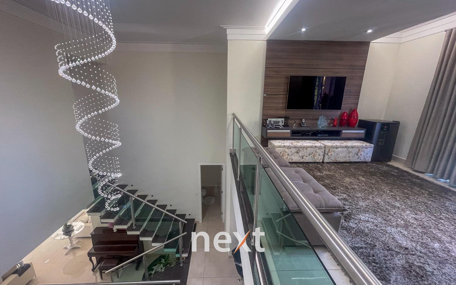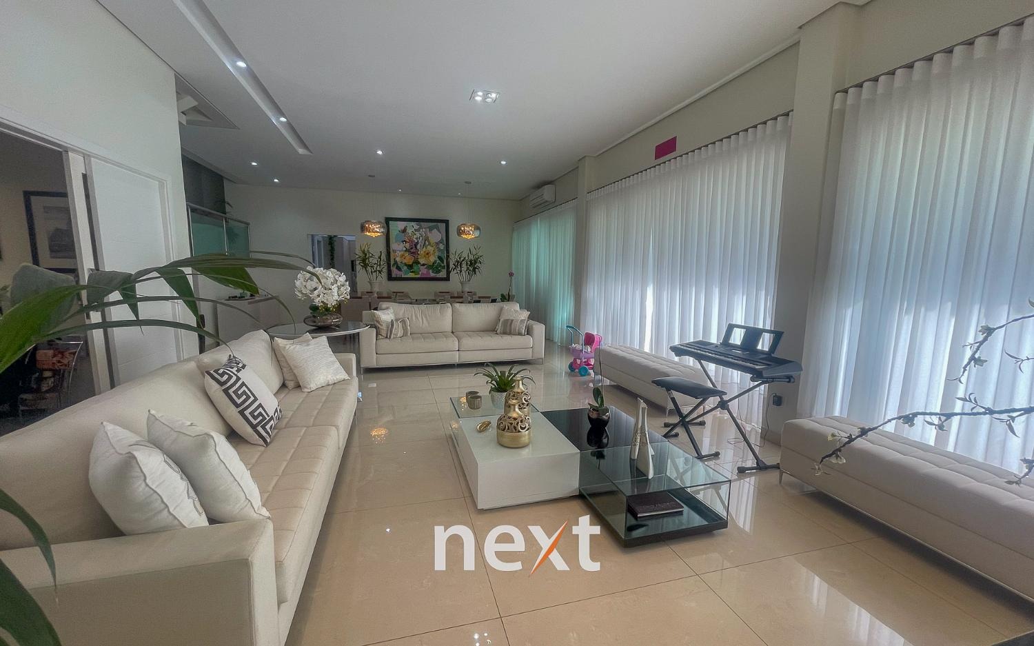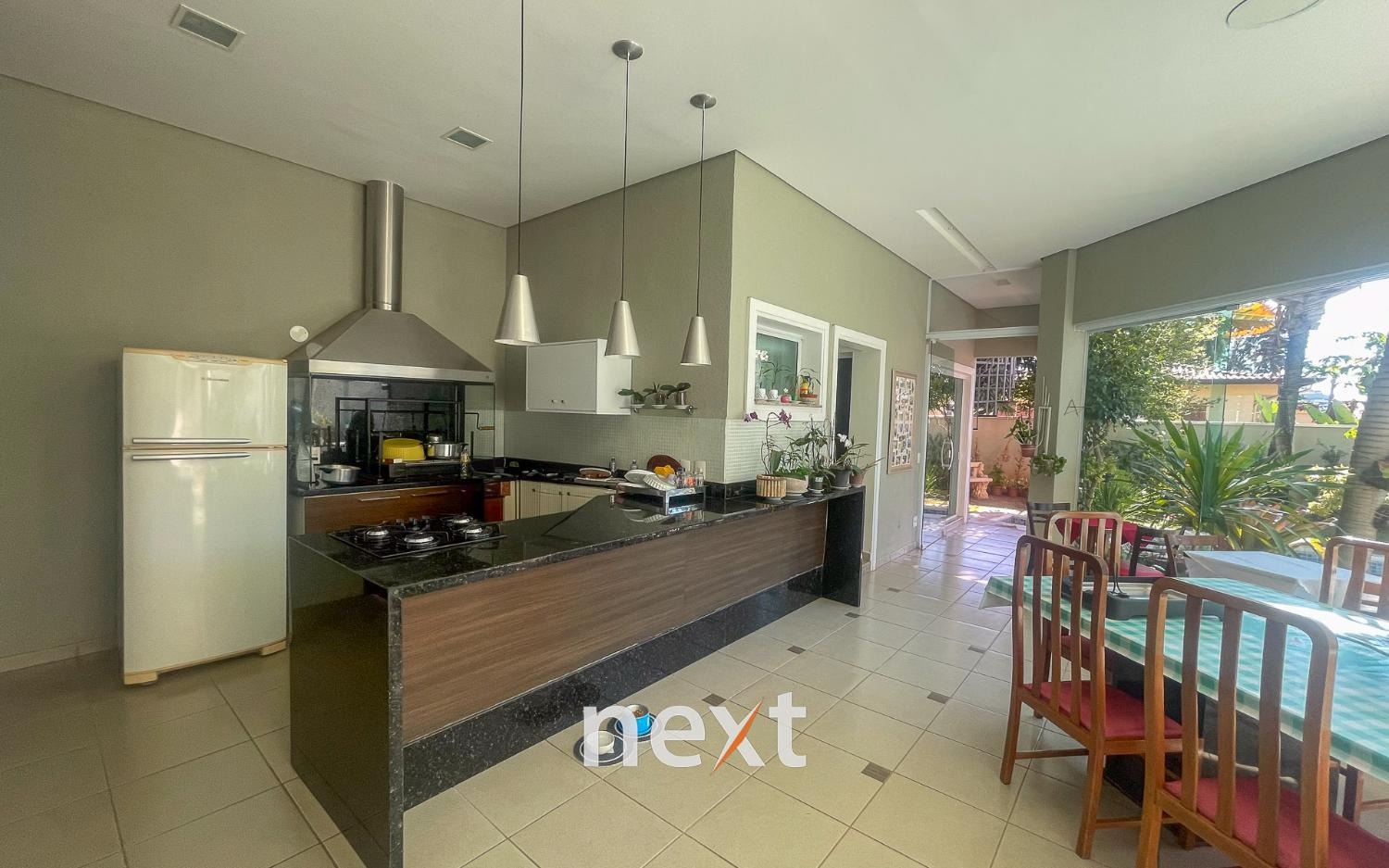 Lindo sobrado com 3 suites e mais 1 quarto, com closet e armários planejados . Todos os cômodos tem acesso a ampla varanda com uma linda vista para o jardim e piscina. São 7 banheiros sendo 1 com hidromassagem. Cozinha planejada com acesso direto a área de lazer, à piscina, churrasqueira e espaço gourmet.