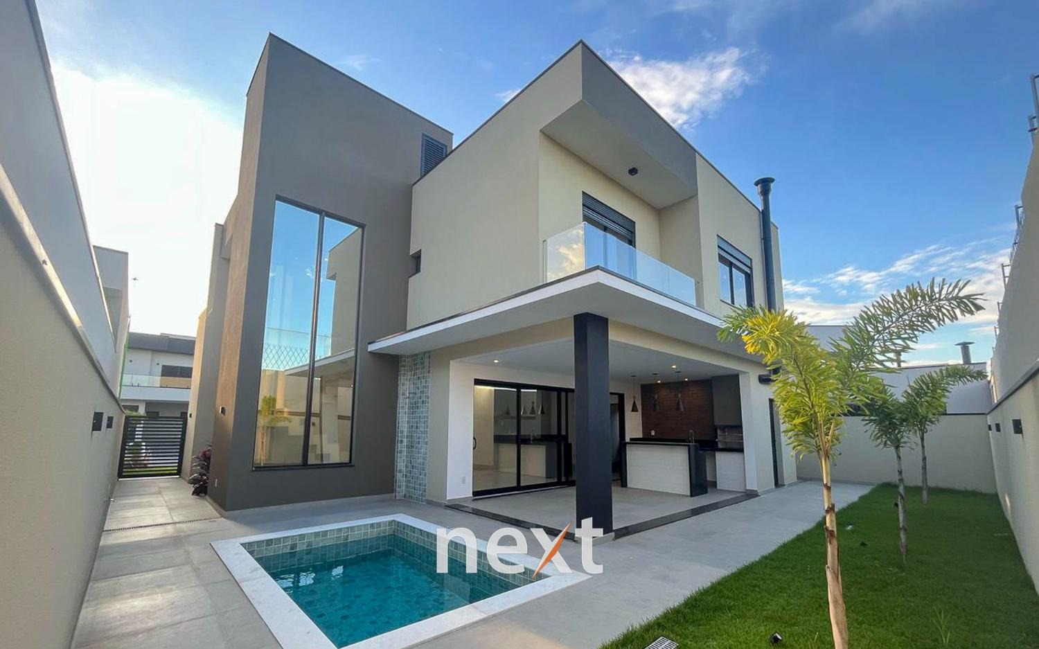 Casa moderna, recém construída, living amplo integrado, com excelente iluminação e ventilação natural. Possui lavabo, escritório, 03 suítes, sendo a master com amplo closet. Lavanderia ampla, garagem para 04 veículos, sendo 02 cobertas. Imóvel possui fino acabamento. Área de lazer conta com piscina, área gourmet com churrasqueira, quintal e banheiro externo. Casa com preparação para instalação de aquecimento da piscina, boiller, energia fotovoltaica e tomada para carro elétrico.