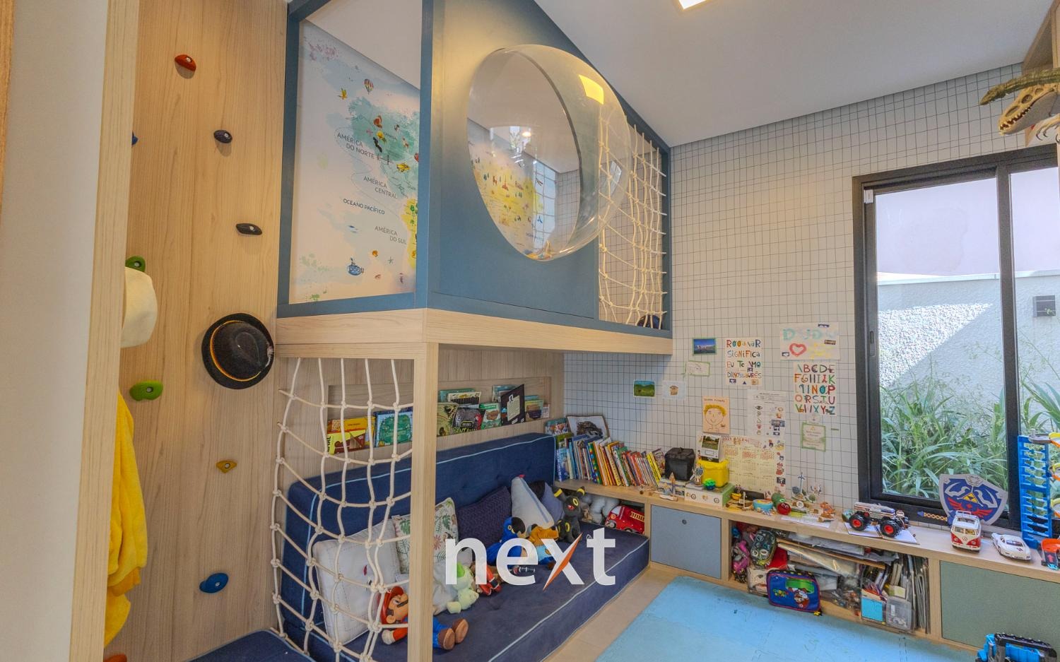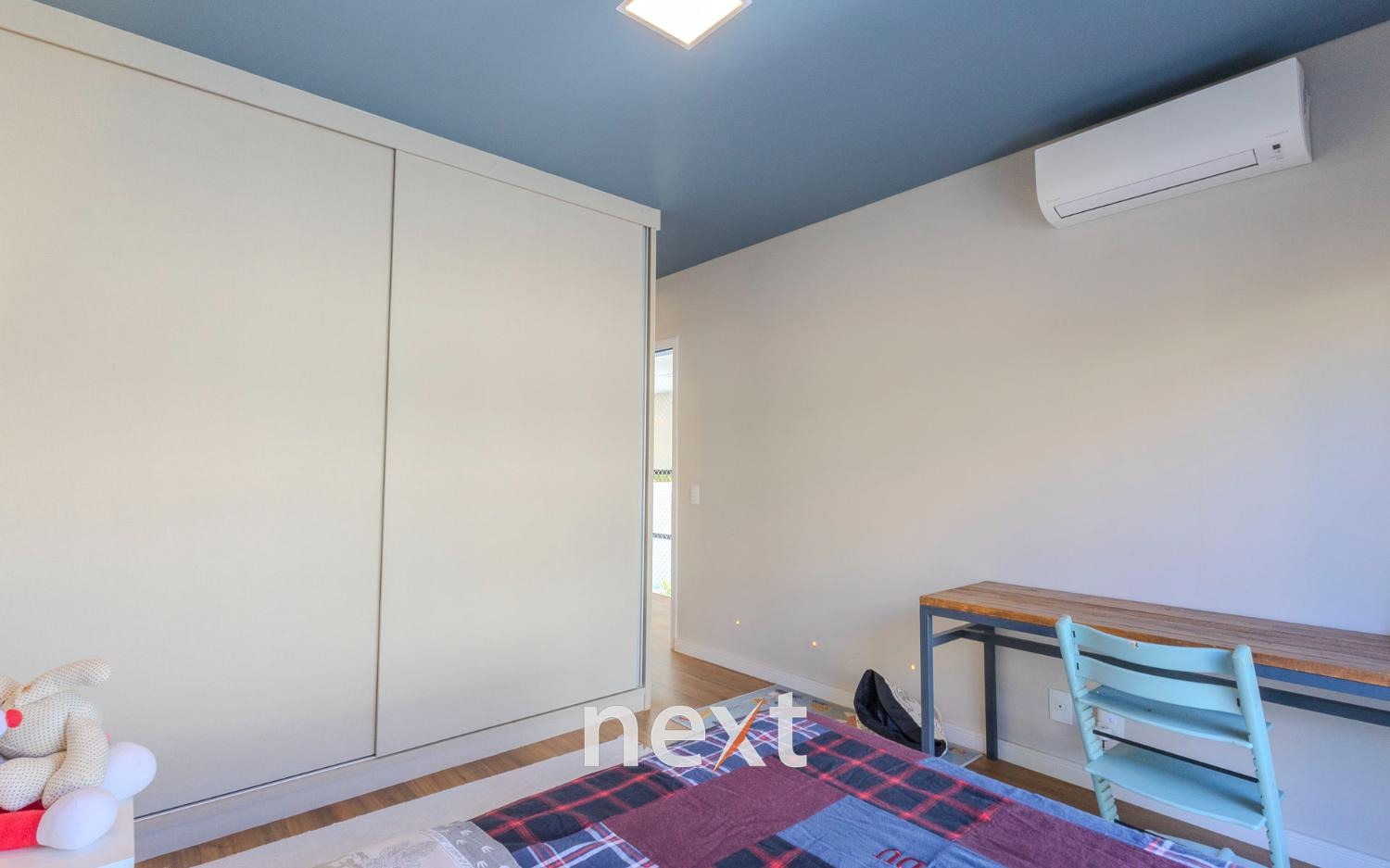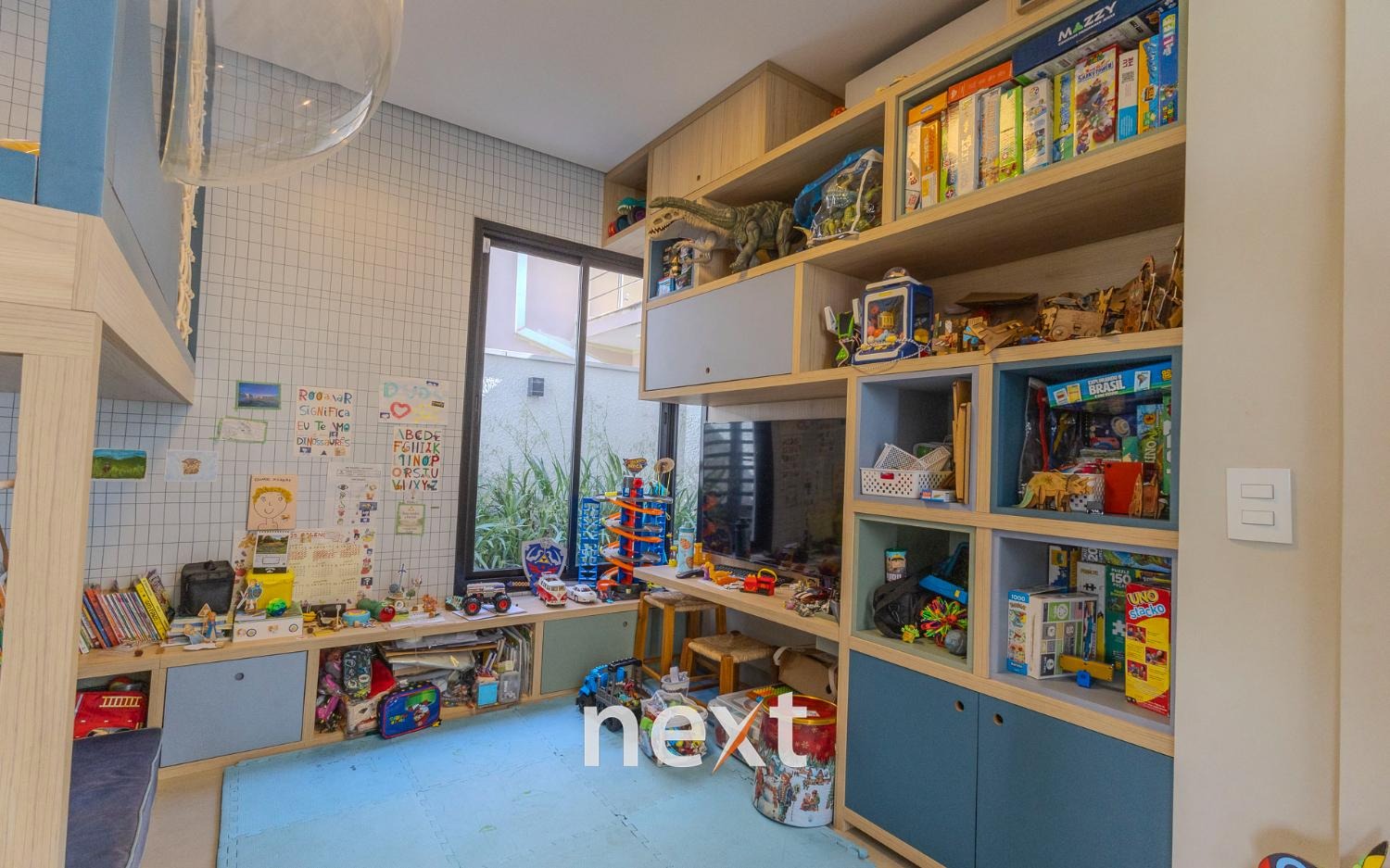 Imóvel possui hall de entrada, living para 02 ambientes, sendo sala de estar com lareira sala de jantar integrada, lavabo, dormitório ou escritório reversível no térreo (convertido em brinquedoteca), cozinha americana com despensa e lavanderia.