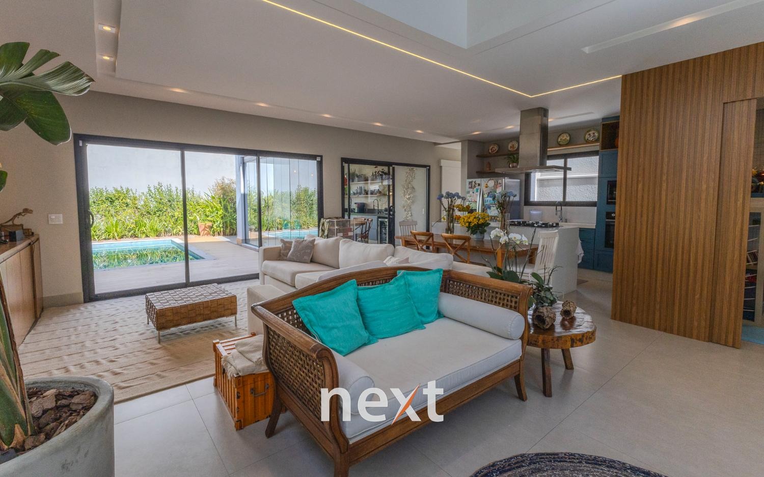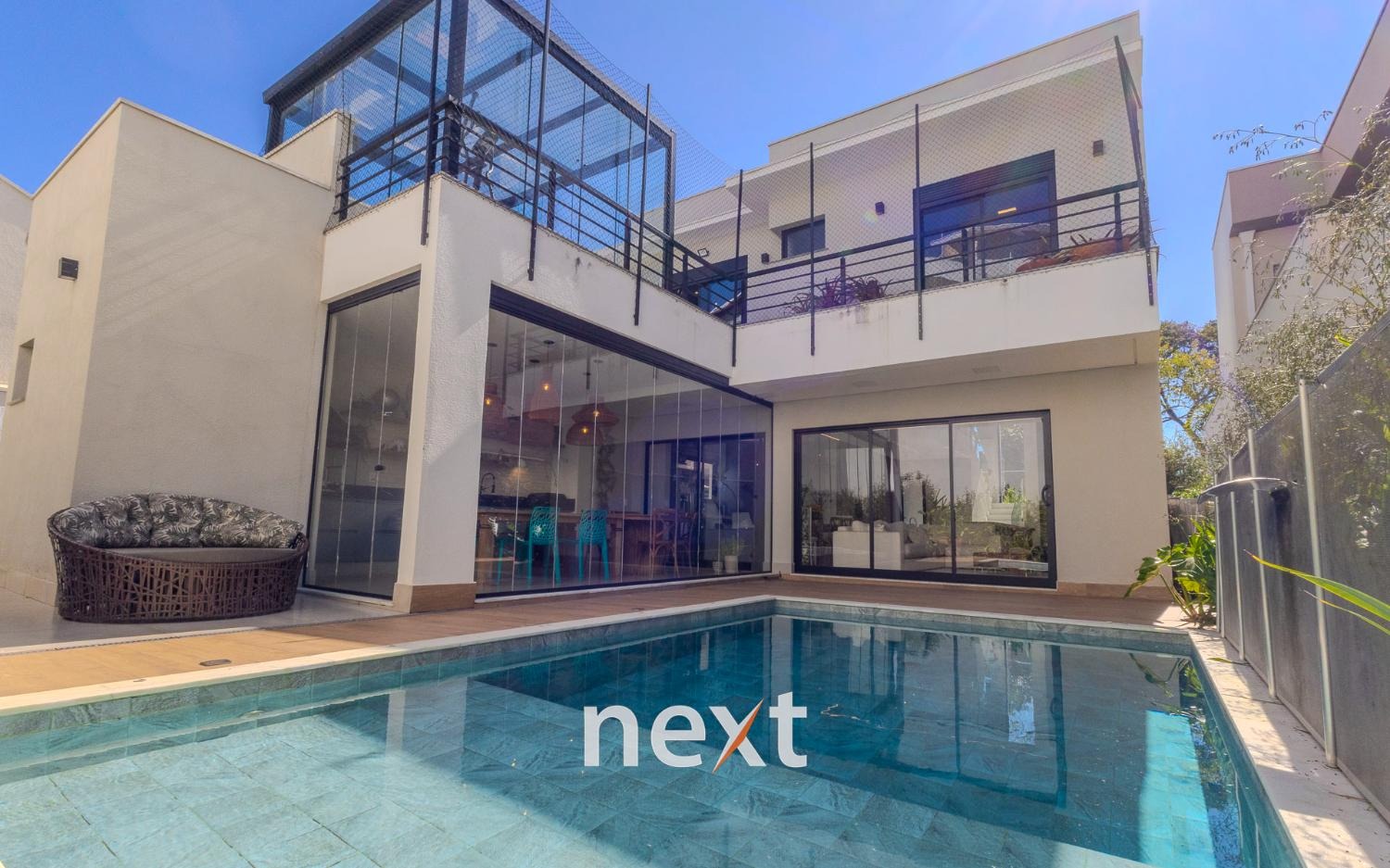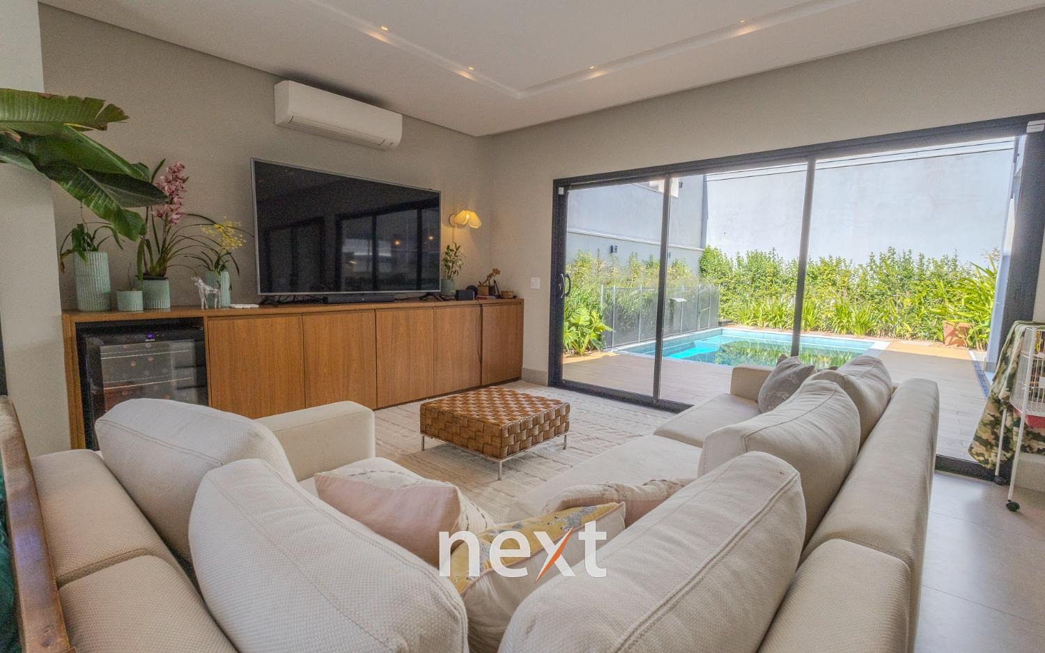 Casa à venda no Residencial Zurich Dorf em Valinhos/ SP. Imóvel com arquitetura moderna, ambientes amplos e integrados, pé direito duplo, ventilação e iluminação natural.