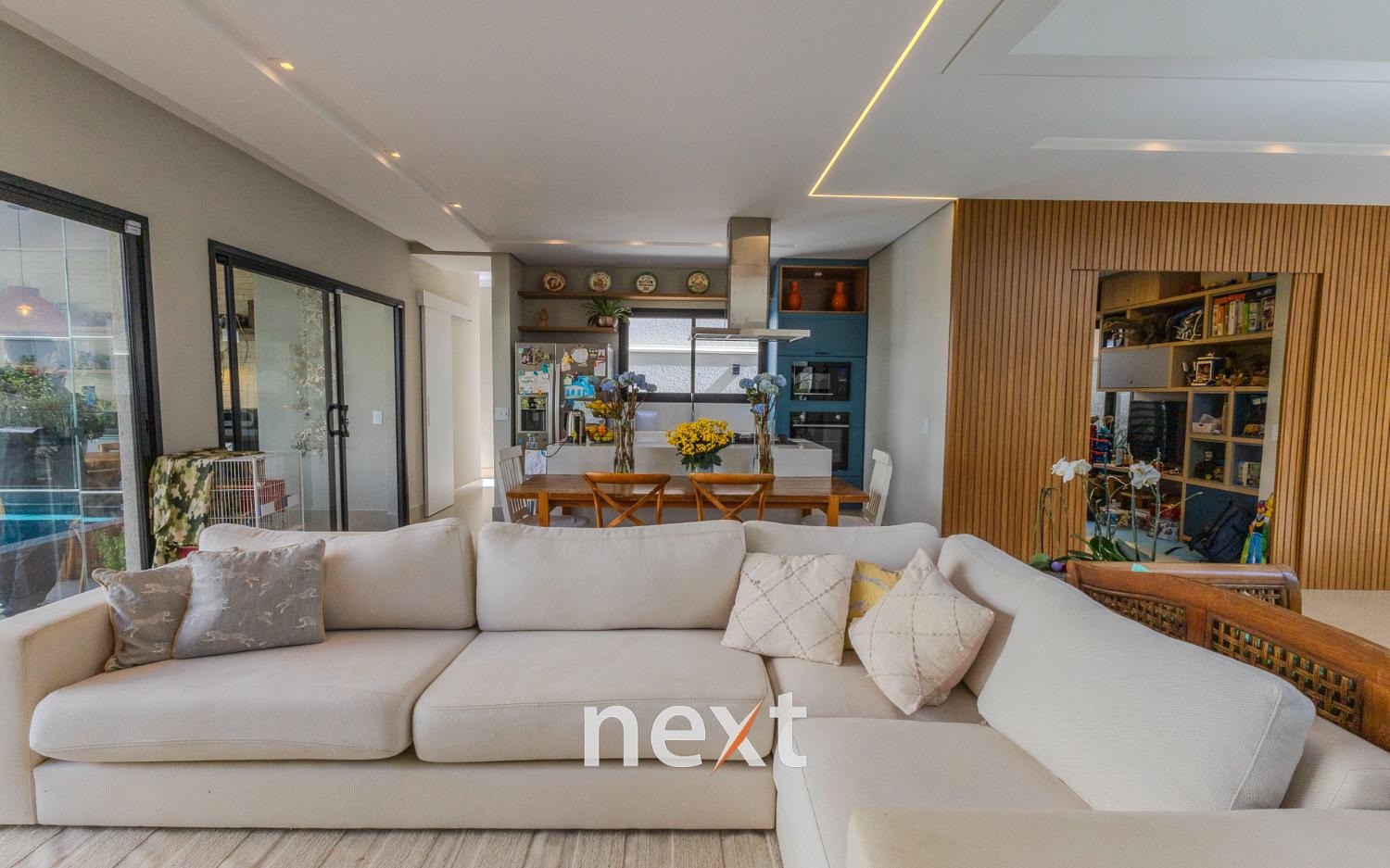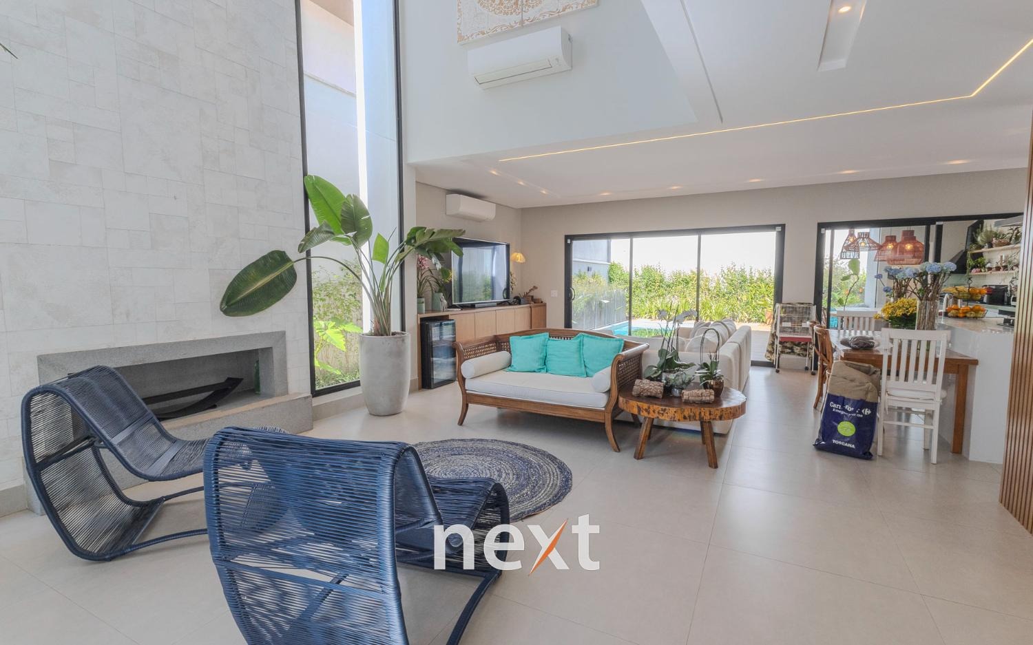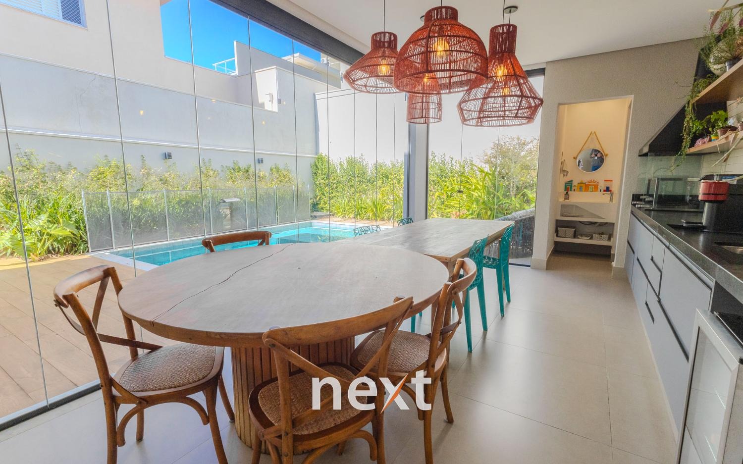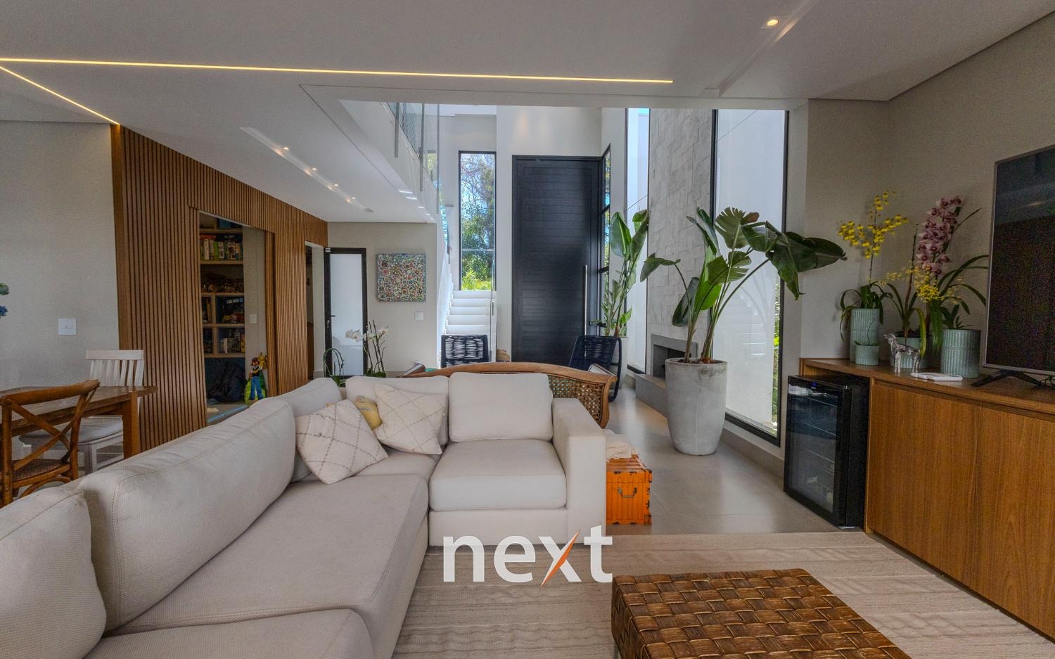 Casa à venda no Residencial Zurich Dorf em Valinhos/ SP. Imóvel com arquitetura moderna, ambientes amplos e integrados, pé direito duplo, ventilação e iluminação natural.
