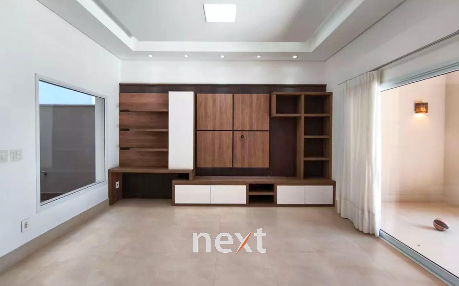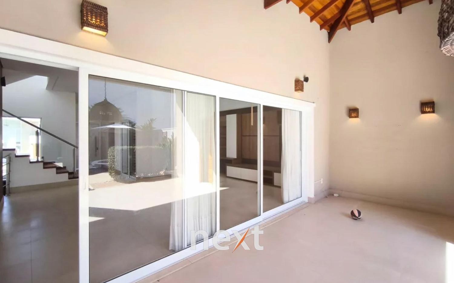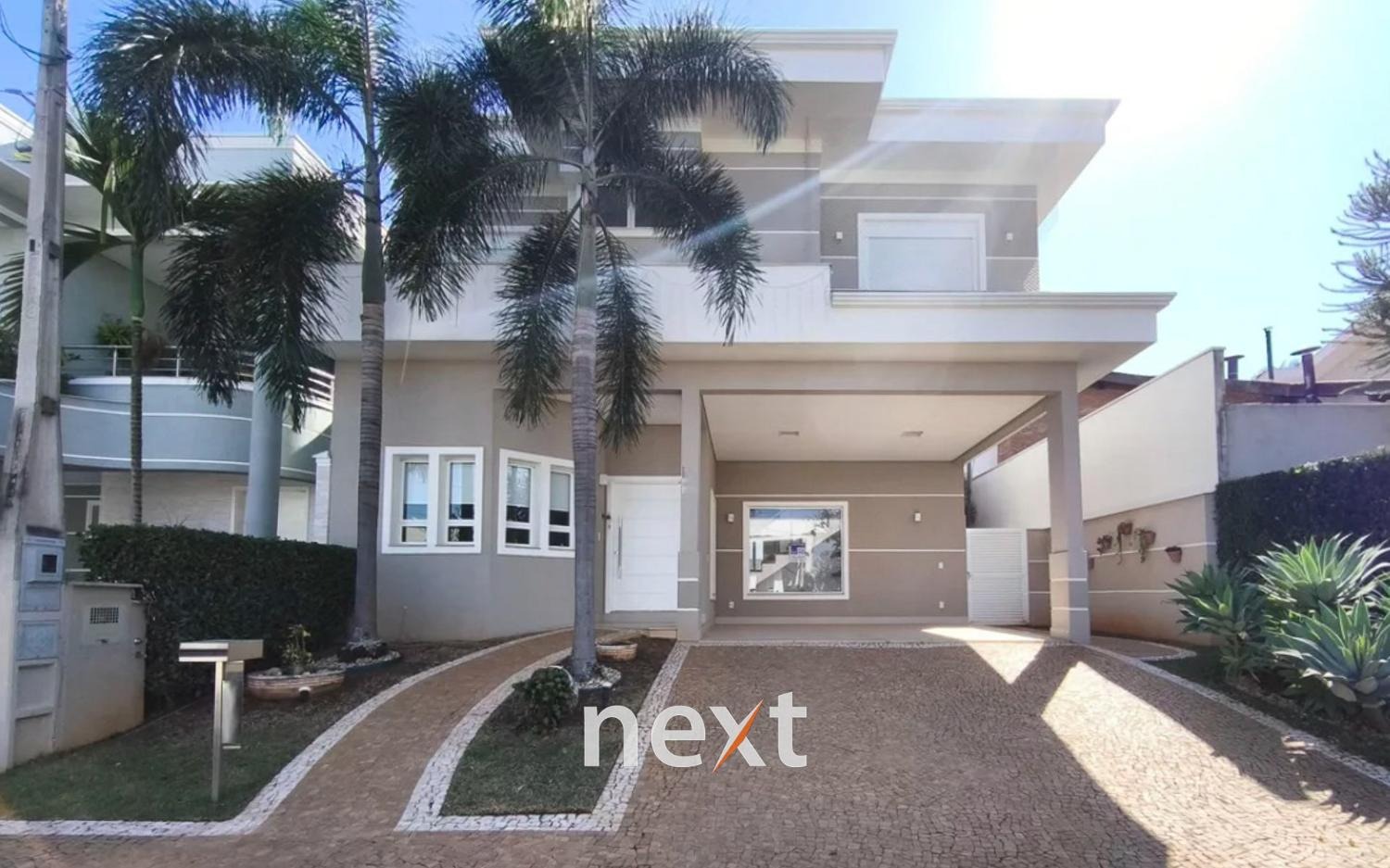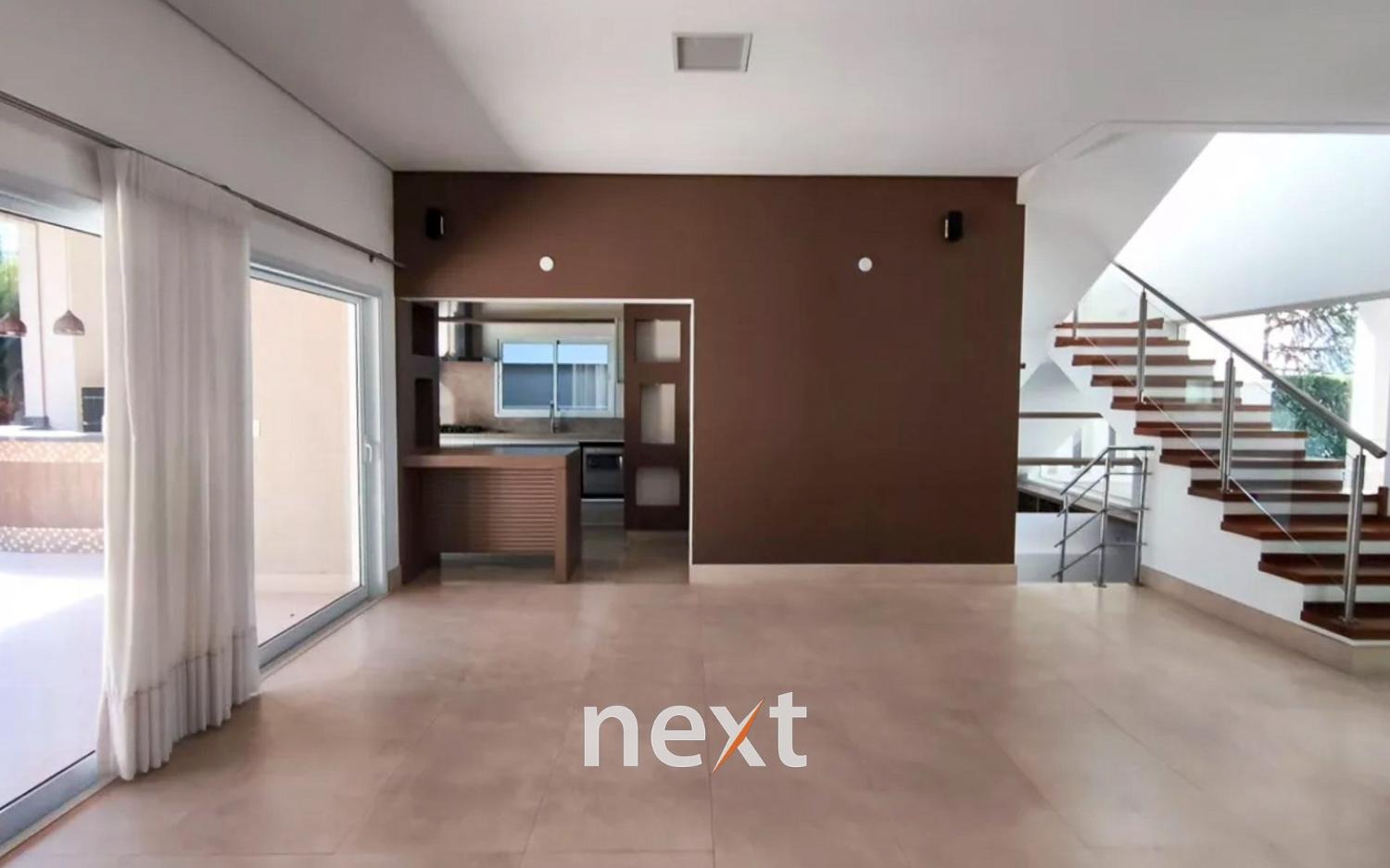 Sobrado no Swiss Park, Campinas, com 3 dormitórios no piso superior, sendo uma suíte máster com closet e dois quartos comuns. Todos os quartos possuem armários planejados, ar-condicionado split e persianas automatizadas. Há um banheiro social e um espaço adicional que pode ser revertido em quarto.