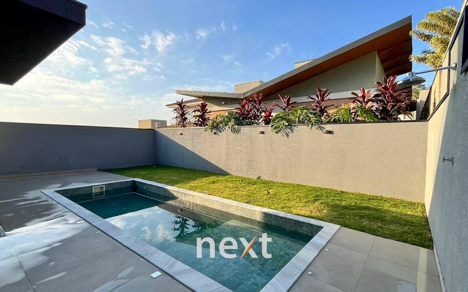 Área externa vip: espaço gourmet com churrasqueira, piscina aquecida com aquecimento solar e quintal espaçoso.