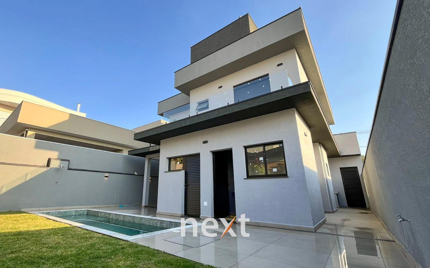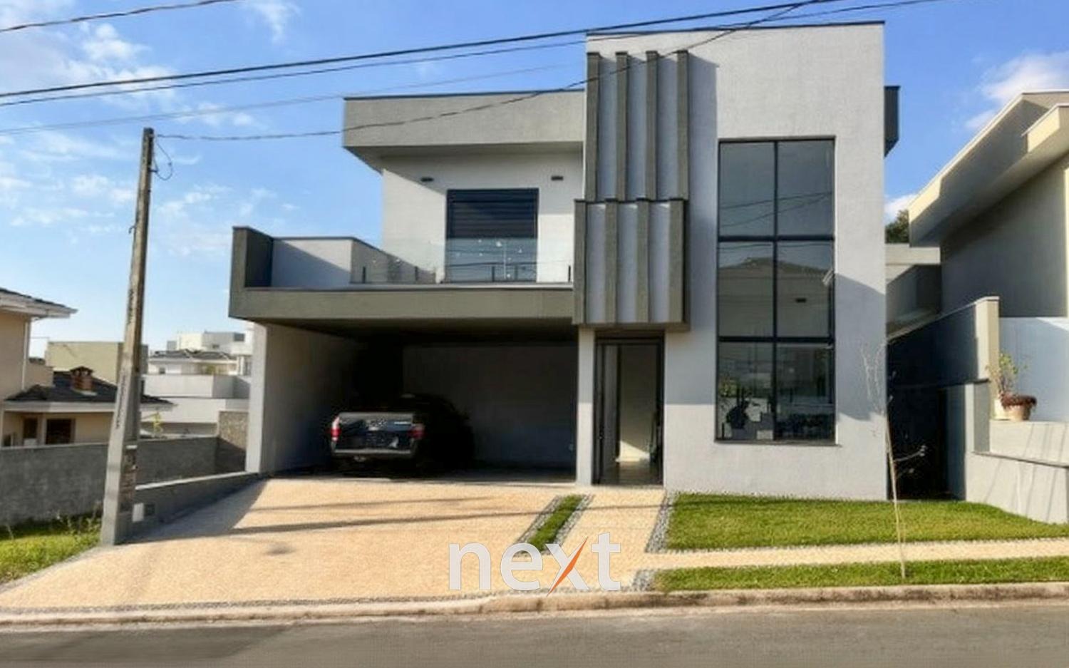 Sobrado recém-construído no Portal do Jequitibá – Valinhos/SP: 230 m² de construção em terreno de 300 m², com 3 suítes (1 master com closet e hidro), ampla sala com lareira, jantar e TV + escritório, cozinha americana equipada, despensa, lavabo, lavanderia e banheiro externo.