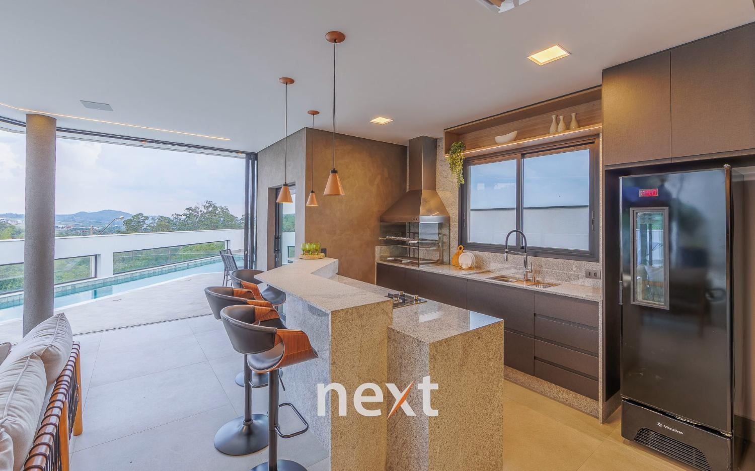 Luxo, conforto e tecnologia em um só lugar! Com 393m² de área construída em terreno de 830,84m², esta casa térrea oferece 4 suítes, elevador e automação residencial completa (iluminação, climatização, áudio, vídeo e segurança). Cozinha gourmet equipada com eletros de última geração, marcenaria planejada e decoração minimalista de alto padrão. Conta ainda com sistema de câmeras, móveis sofisticados e vista permanente para área verde.