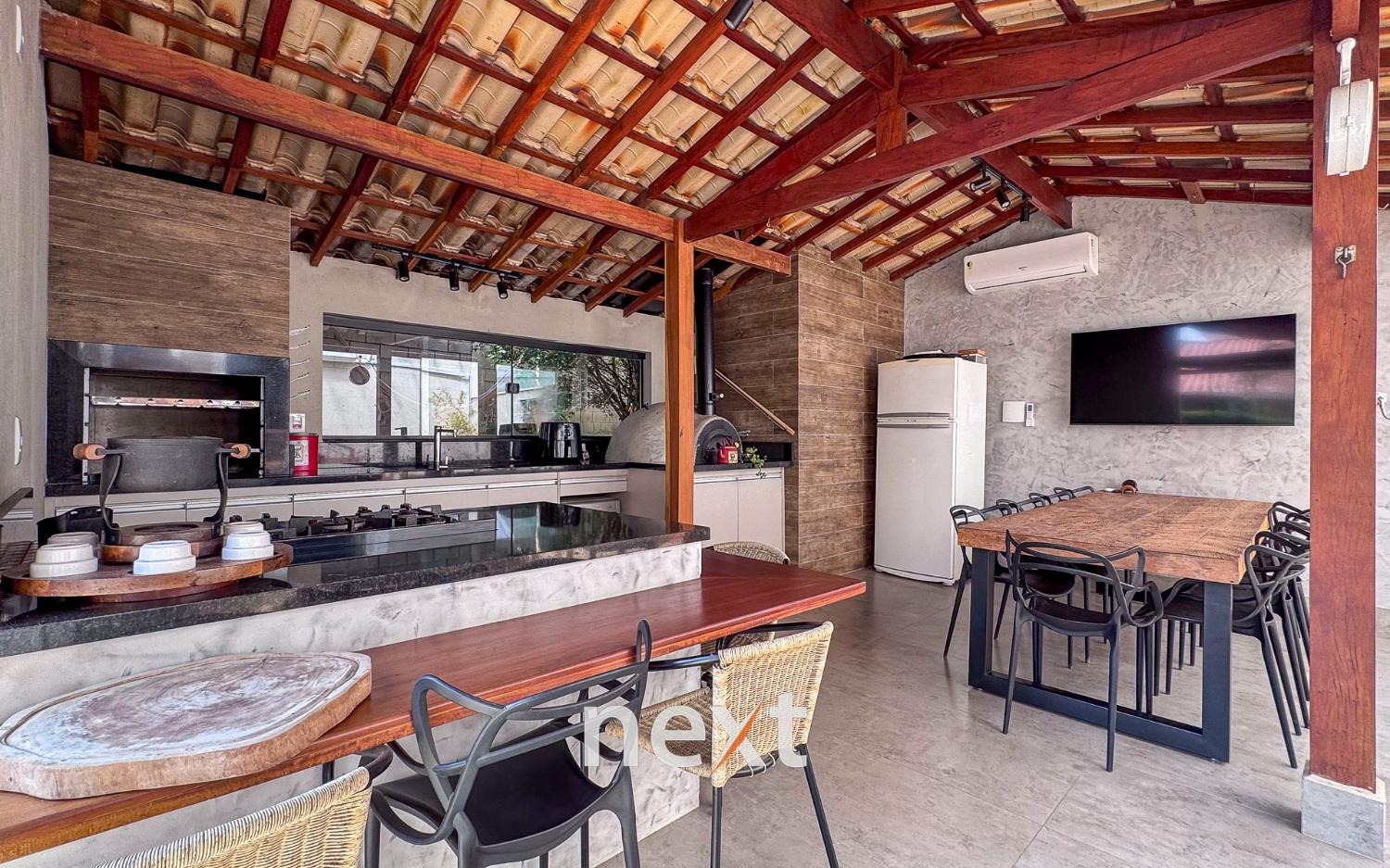 Casa sobrado com com 3 suítes com armários sendo 1 master com closet e sacada, sala de estar, sala de jantar, sala de tv, lavabo, Sotão que pode ser usado escritório, área gourmet com churrasqueira e forno de pizza, com evidraçamento reatrátil, cozinha planejada com cooktop, coifa, despensa, lavanderia, amplo quintal com rendário e arvorés frutiferas, espelho dágua, lindo paisagismo, 2 vagas cobertas + 2 vagas de garagem descobertas e um amplo salão de jogos.
