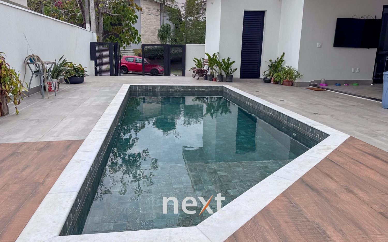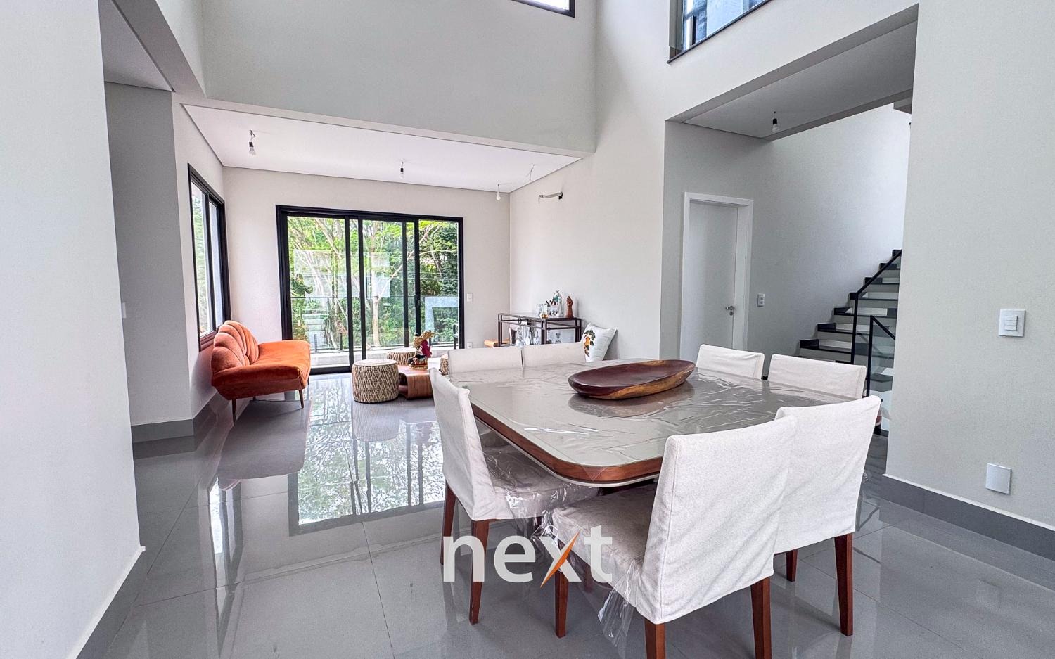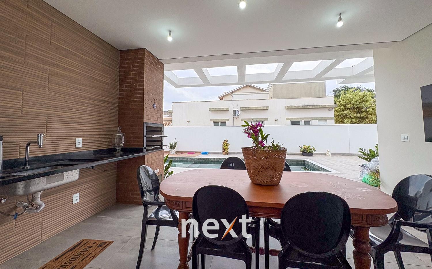 As salas de estar e jantar integradas à cozinha e à área gourmet criam um ambiente fluido e convidativo. Nos fundos, a piscina com preparação para aquecimento traz o toque ideal de lazer e conforto.