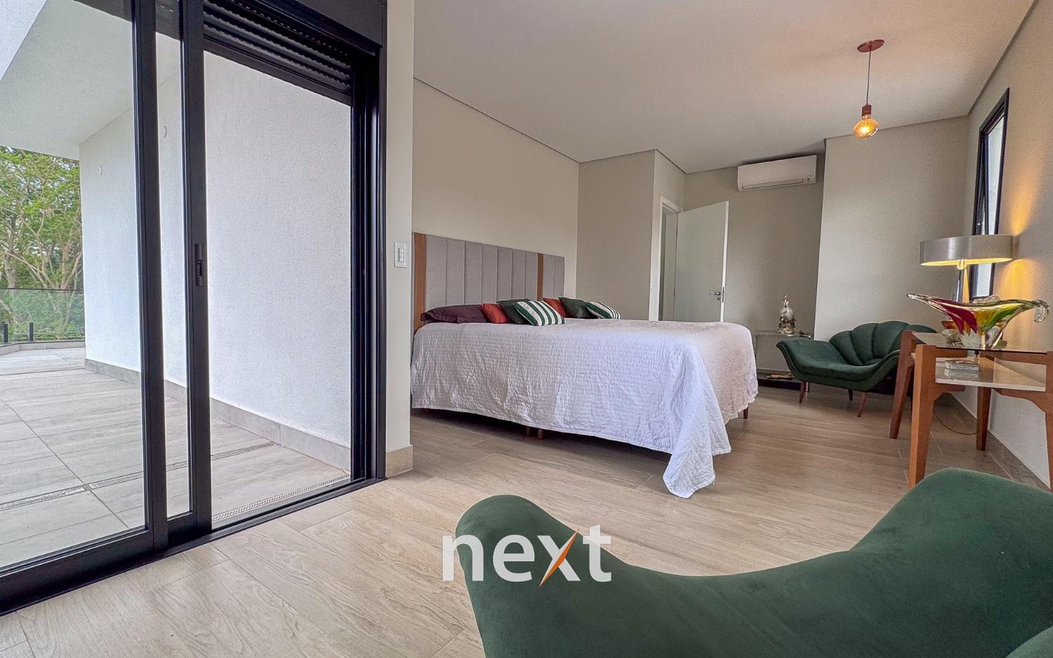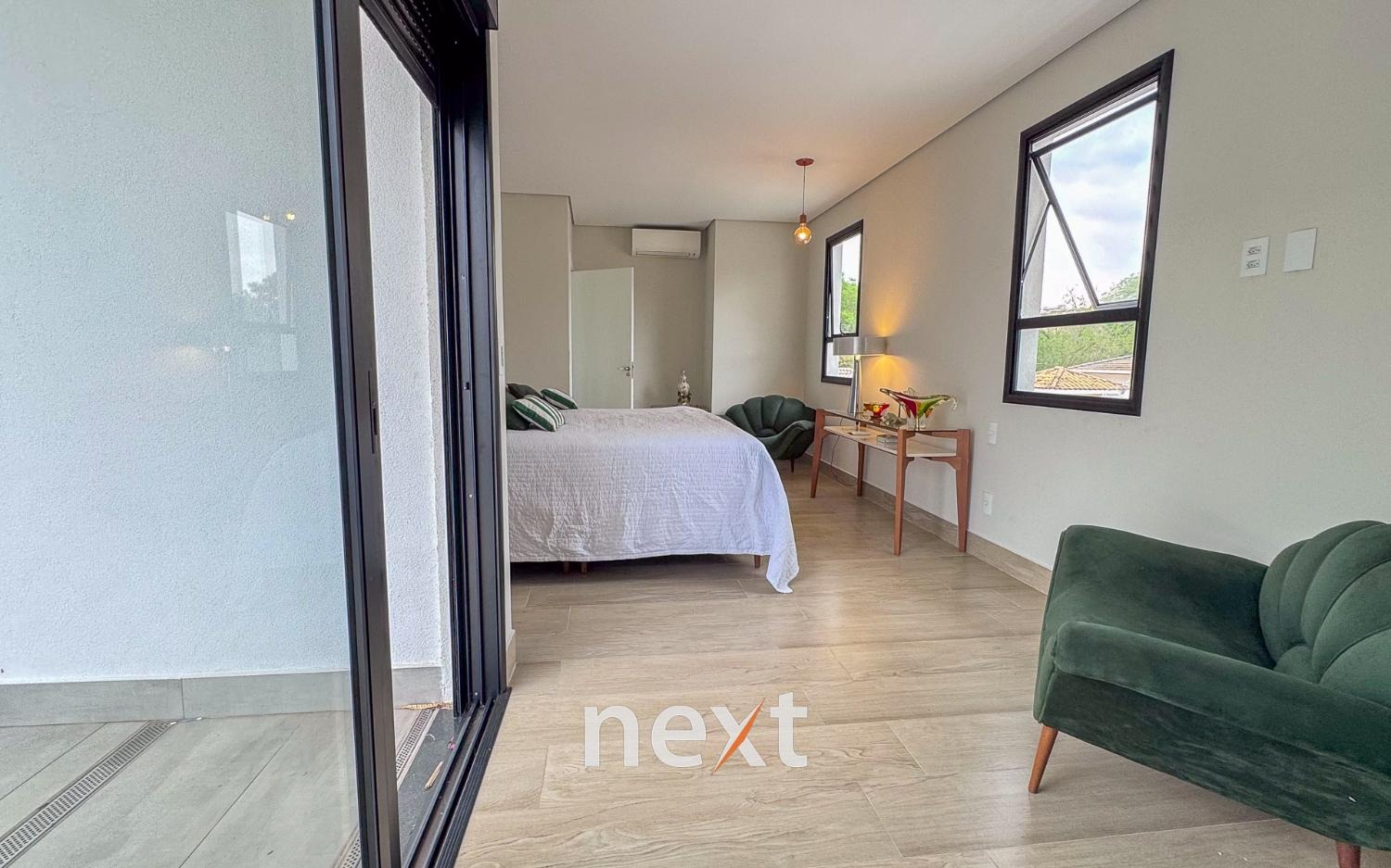 São 4 dormitórios, sendo 3 suítes (duas no térreo) e um quarto reversível, ideal para escritório ou sala íntima. A suíte superior conta com ampla varanda, perfeita para relaxar apreciando o verde.