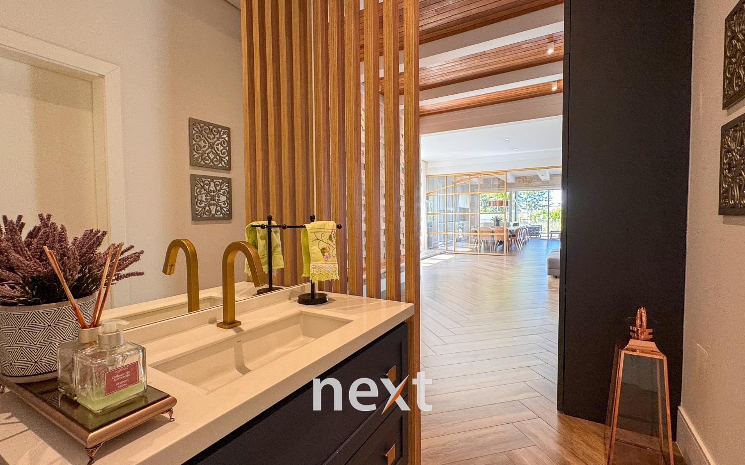A casa conta com 3 quartos, sendo 2 suítes, 3 salas e integração à cozinha, lavabo, banheiro social, área de serviço, escritório, cozinha equipada e com bancada ampla e outras comodidades. Conta com projeto luminotécnico e de paisagismo totalmente aplicados, aquecimento solar, piscina aquecida, móveis planejados e acabamentos de alto padrão. Pisos em porcelanato.