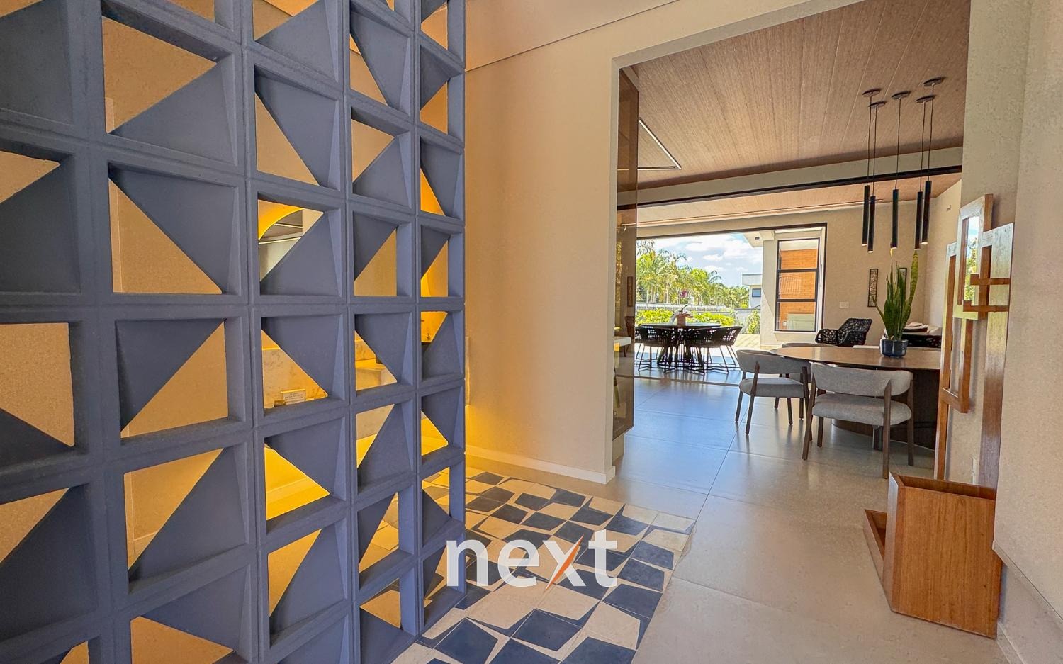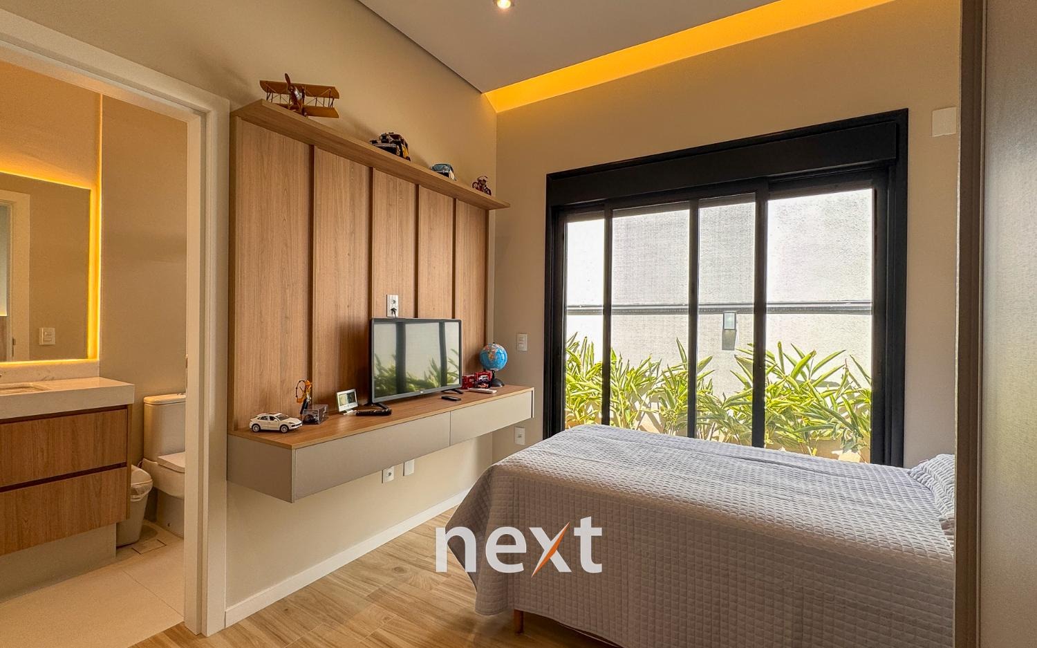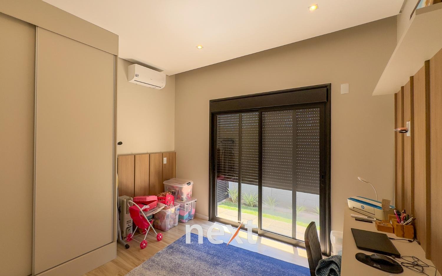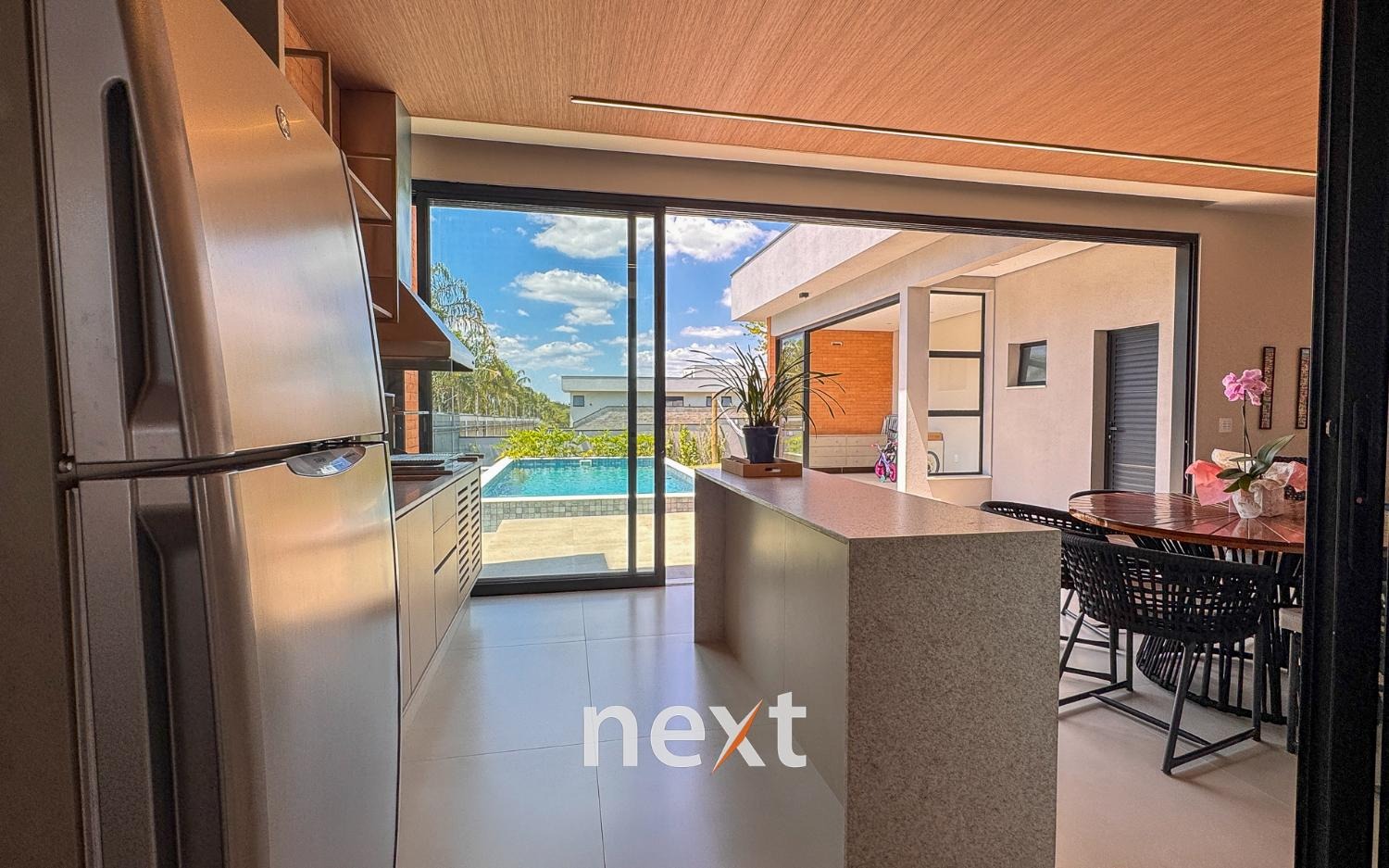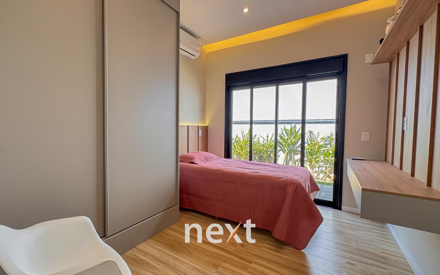 Casa térrea com 702m² de terreno e 320m² de construção, com 4 suítes (incluindo uma máster com closet e banheira), amplas salas de estar e jantar, cozinha planejada, lavanderia, banheiro externo e espaço gourmet com churrasqueira. Conta com 6 vagas (3 cobertas), ar-condicionado em todos os ambientes e persianas automatizadas. A marcenaria é completa em todos os cômodos e a iluminação é totalmente personalizada.
