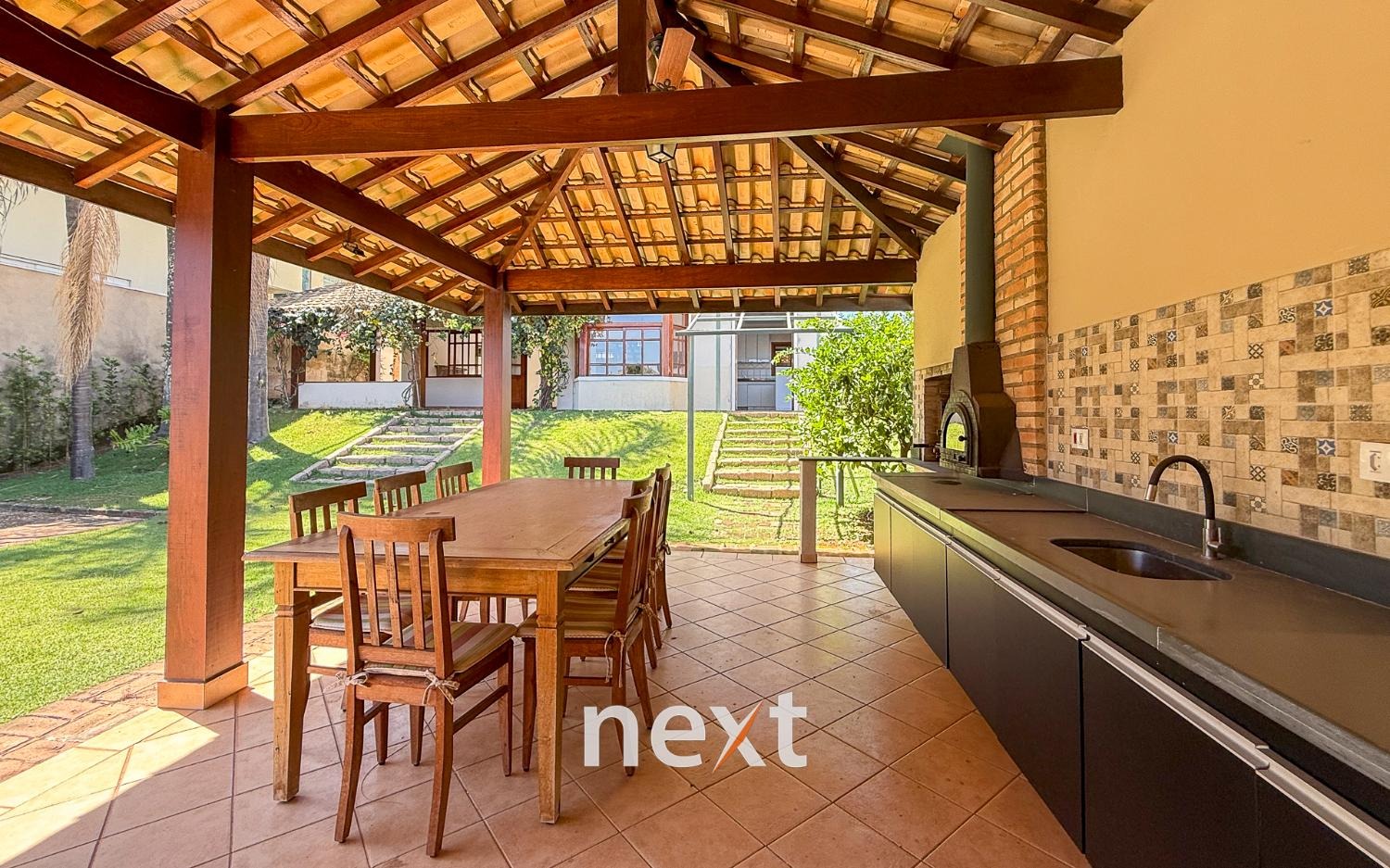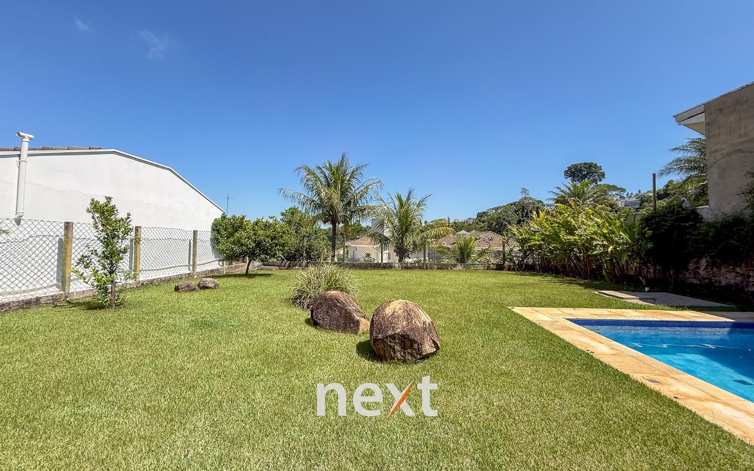 Quintal com um belo paisagismo.