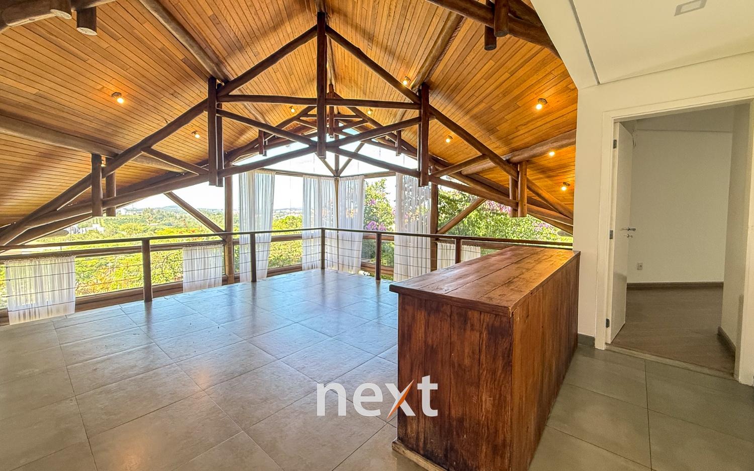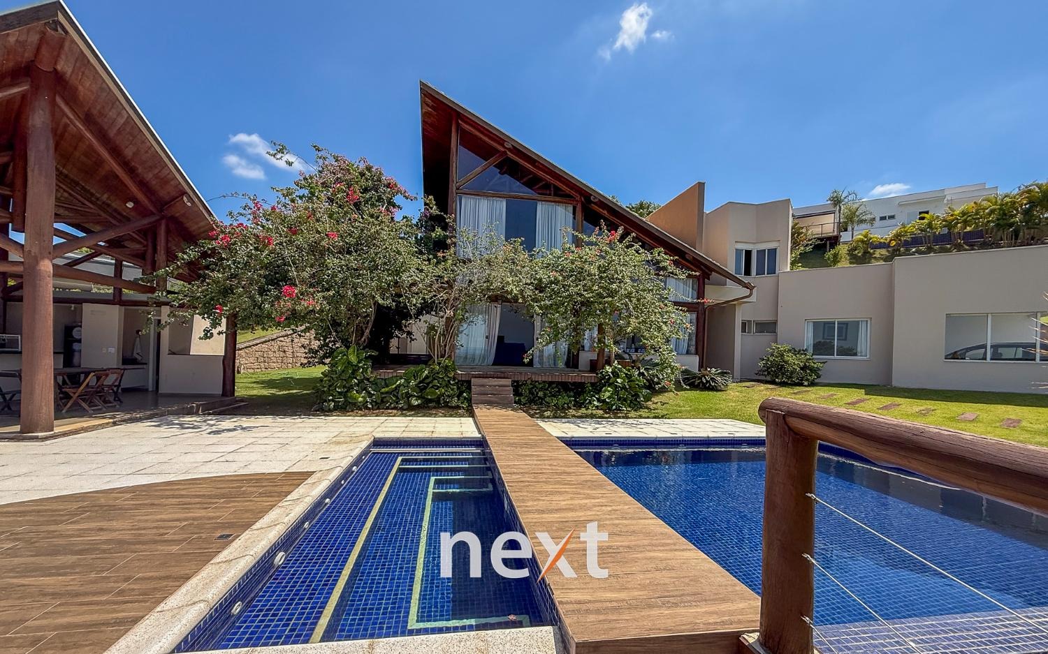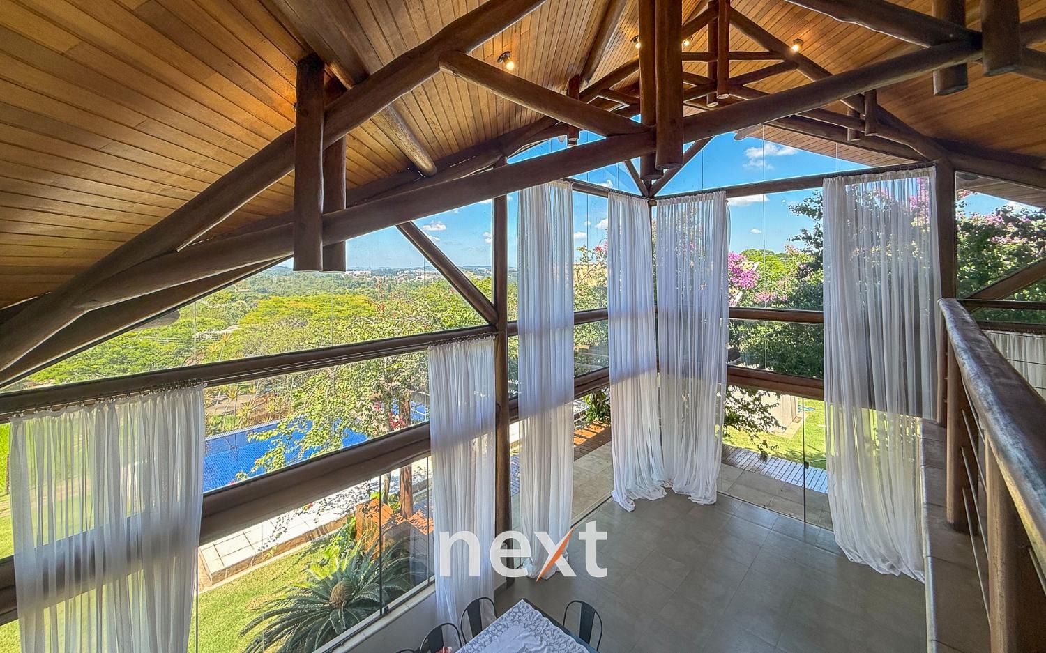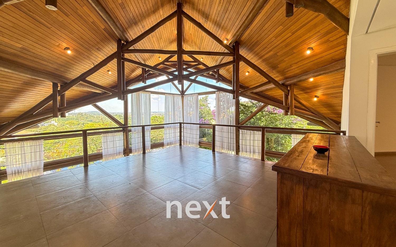 Com 1900 m² de terreno e 546 m² de construção, a casa conta com 5 suítes (sendo uma master com amplo espaço e hidro com vista ao por do Sol, 3 na parte superior, 1 no térreo e 1 externa de hóspedes), mezanino com vista frontal, lavabo, sala para até 3 ambientes toda envidraçada e em madeira com pé direito duplo, cozinha integrada com bancada, planejados e eletrodomésticos instalados, despensa, área de serviço e um salão para escritório, jogos ou qualquer uso que você defina. Na área externa amplo quintal gramado, piscina infinita, deck e passarela, área gourmet equipada e com banheiro e mais, tudo isso com vista para a Serra do Japi. Estrutura iniciada para a instalação de uma ampla sauna abaixo, garagem coberta para 2 ou 3 carros e descoberta para muito mais (total possibilidade de estruturar mais vagas cobertas abaixo, sem engavetamento). Estrutura de aquecimento solar, preparação para ar condicionado etc.
