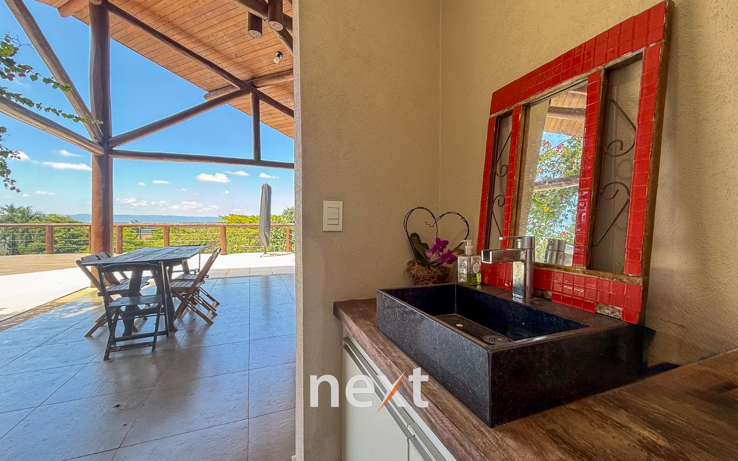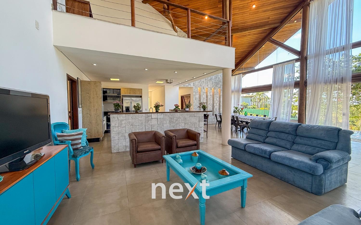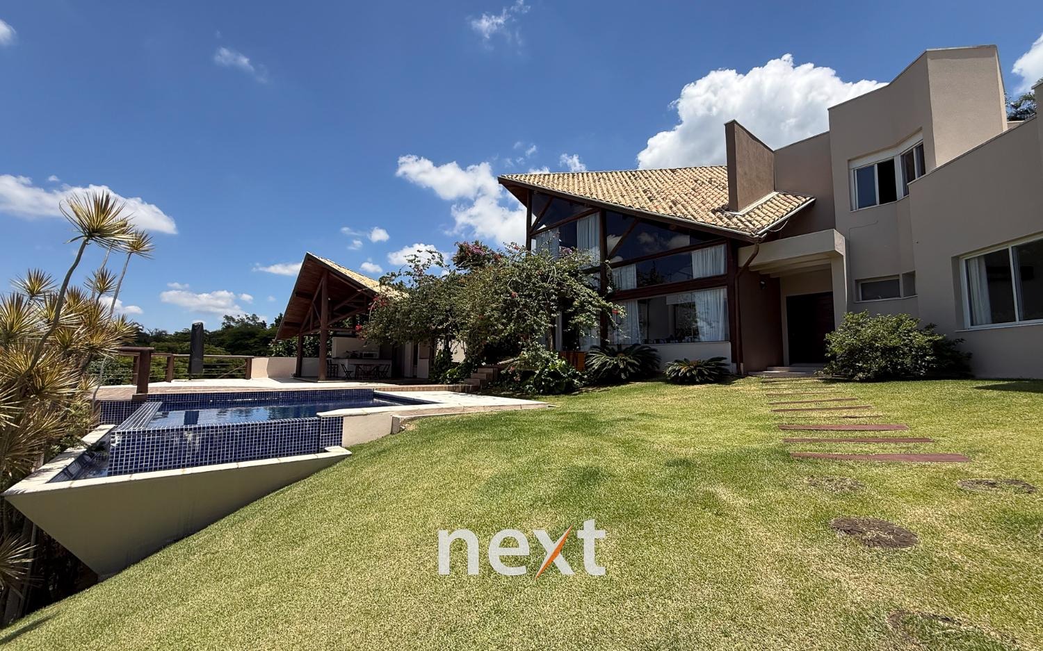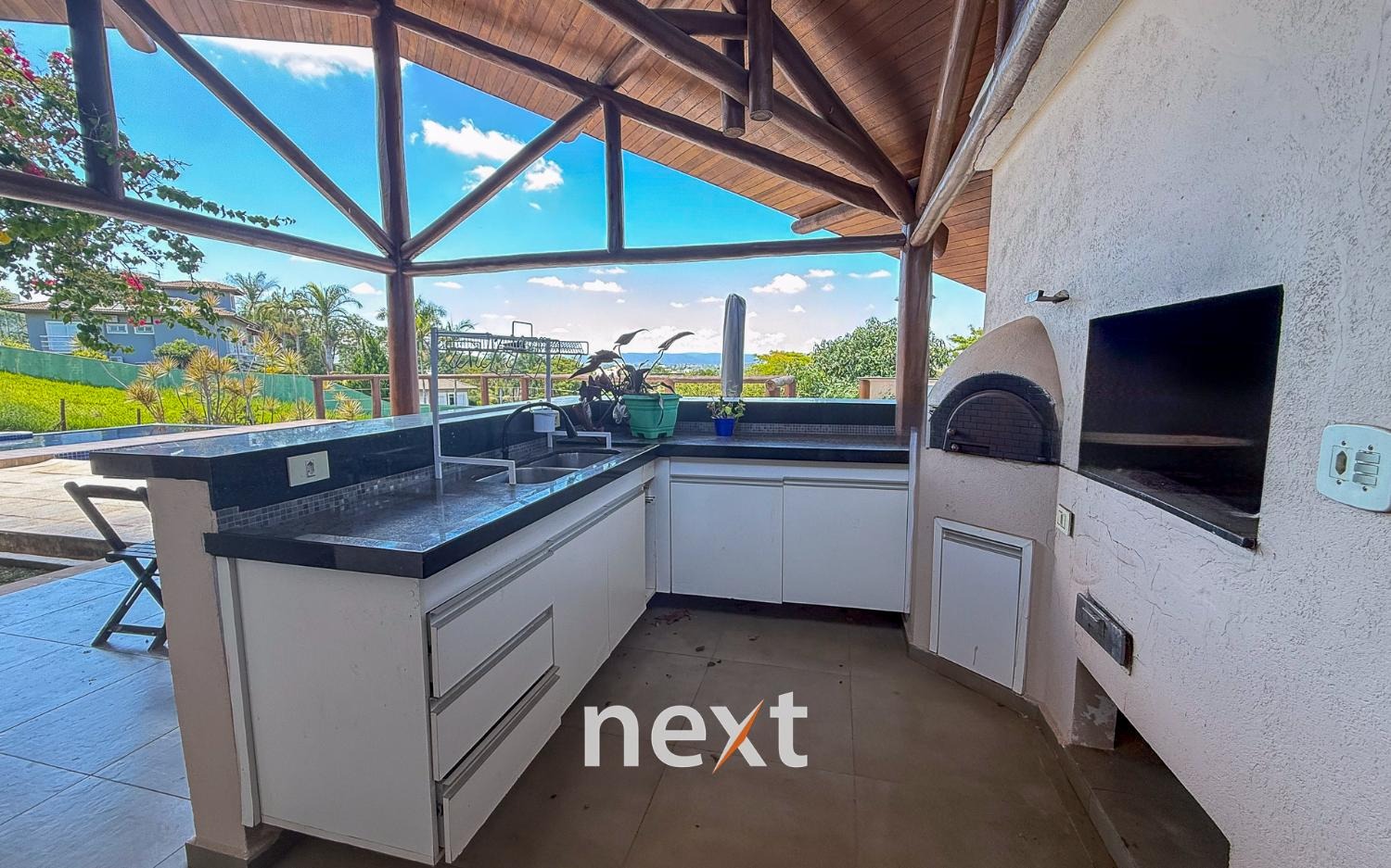 Com 1900 m² de terreno e 546 m² de construção, a casa conta com 5 suítes (sendo uma master com amplo espaço e hidro com vista ao por do Sol, 3 na parte superior, 1 no térreo e 1 externa de hóspedes), mezanino com vista frontal, lavabo, sala para até 3 ambientes toda envidraçada e em madeira com pé direito duplo, cozinha integrada com bancada, planejados e eletrodomésticos instalados, despensa, área de serviço e um salão para escritório, jogos ou qualquer uso que você defina. Na área externa amplo quintal gramado, piscina infinita, deck e passarela, área gourmet equipada e com banheiro e mais, tudo isso com vista para a Serra do Japi. Estrutura iniciada para a instalação de uma ampla sauna abaixo, garagem coberta para 2 ou 3 carros e descoberta para muito mais (total possibilidade de estruturar mais vagas cobertas abaixo, sem engavetamento). Estrutura de aquecimento solar, preparação para ar condicionado etc.