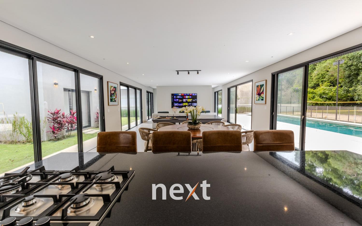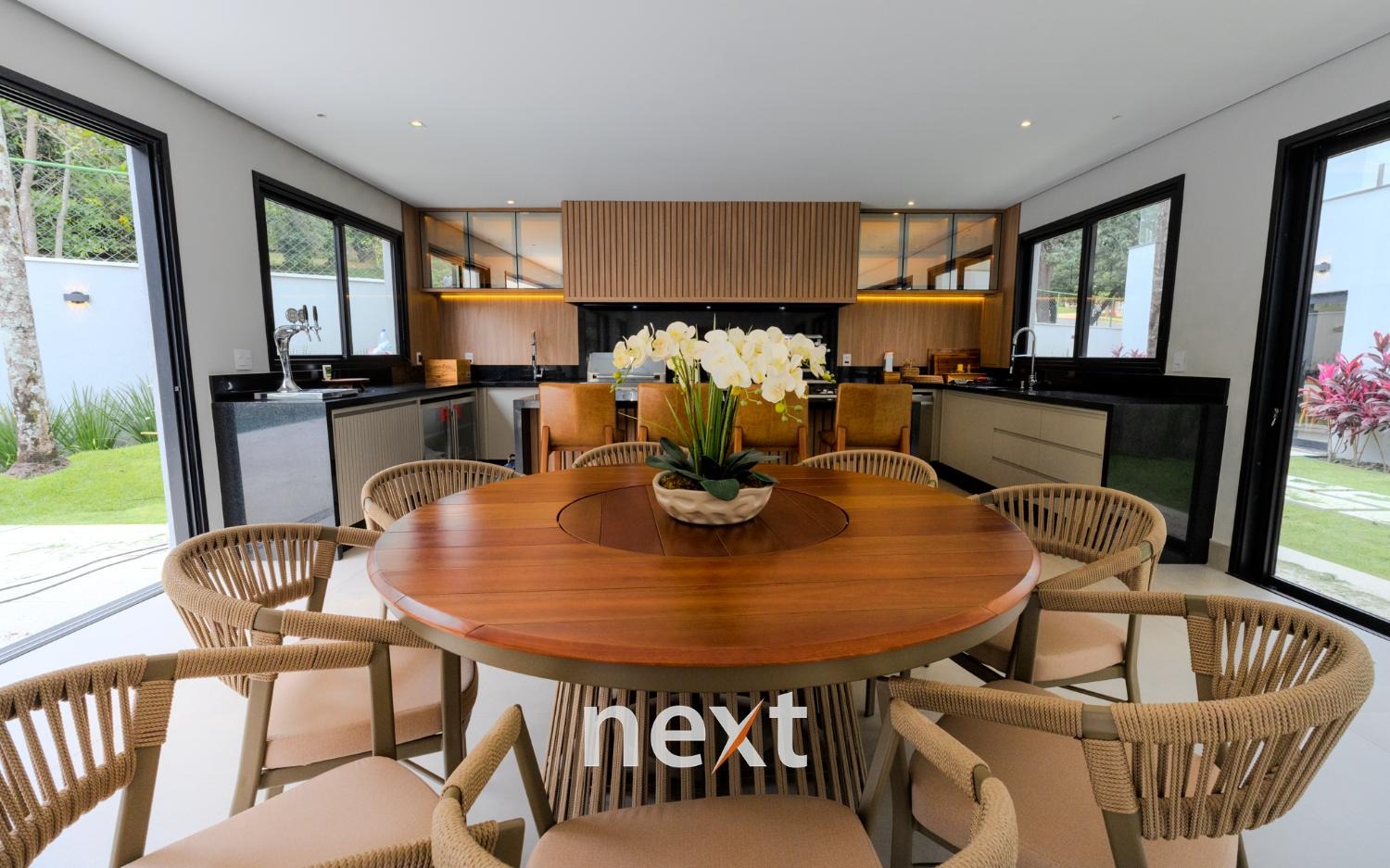 spa com sauna úmida e seca, piscina com prainha, quadra de beach tenis;área de reserva ambiental com isenção de IPTU repaginada, living com lareira, sala de jantar integrada; escritório reversível suíte ;adega para 130 rótulos ;home cinema, cozinha planejada com eletrodomésticos ELETROMEC; ELEVADOR /PLATAFORMA ;garagem para 8 carros,