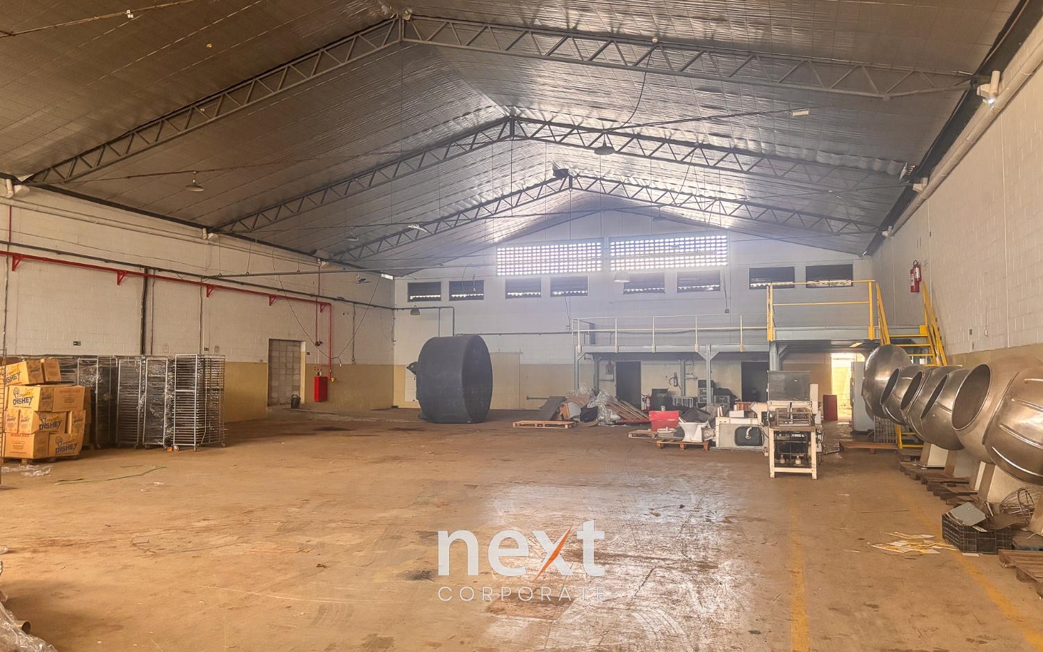 Galpão amplo com 750m2, entra caminhão, portão com 5,7m, pé direito 6m nas laterias e 8m no centro. Com espaço aberto no fundo, Vestiário, recepção na entrada, mezanino aberto. Agende sua visita com a NEXT!