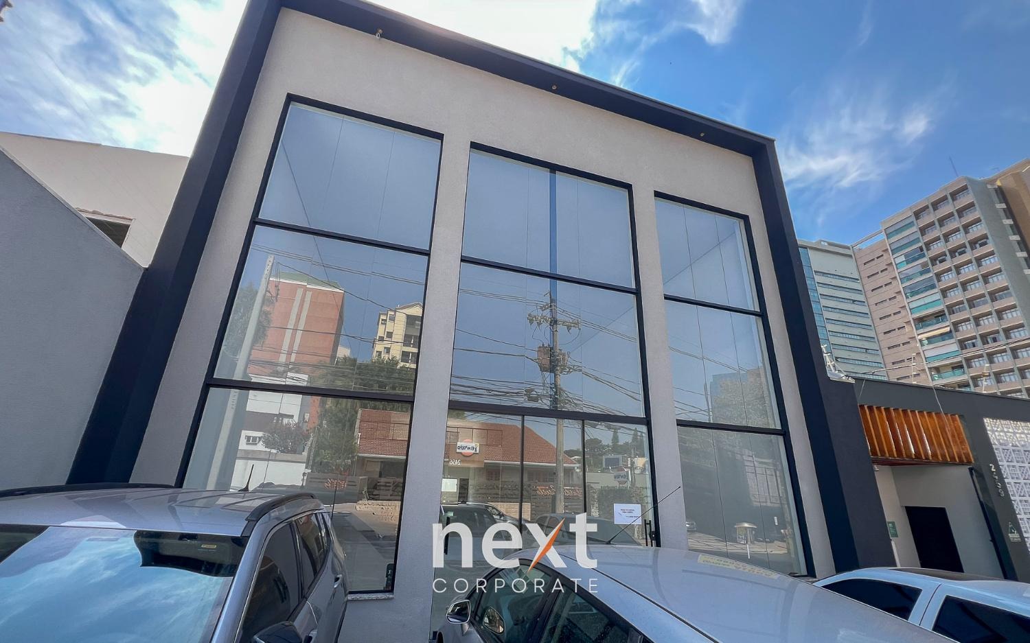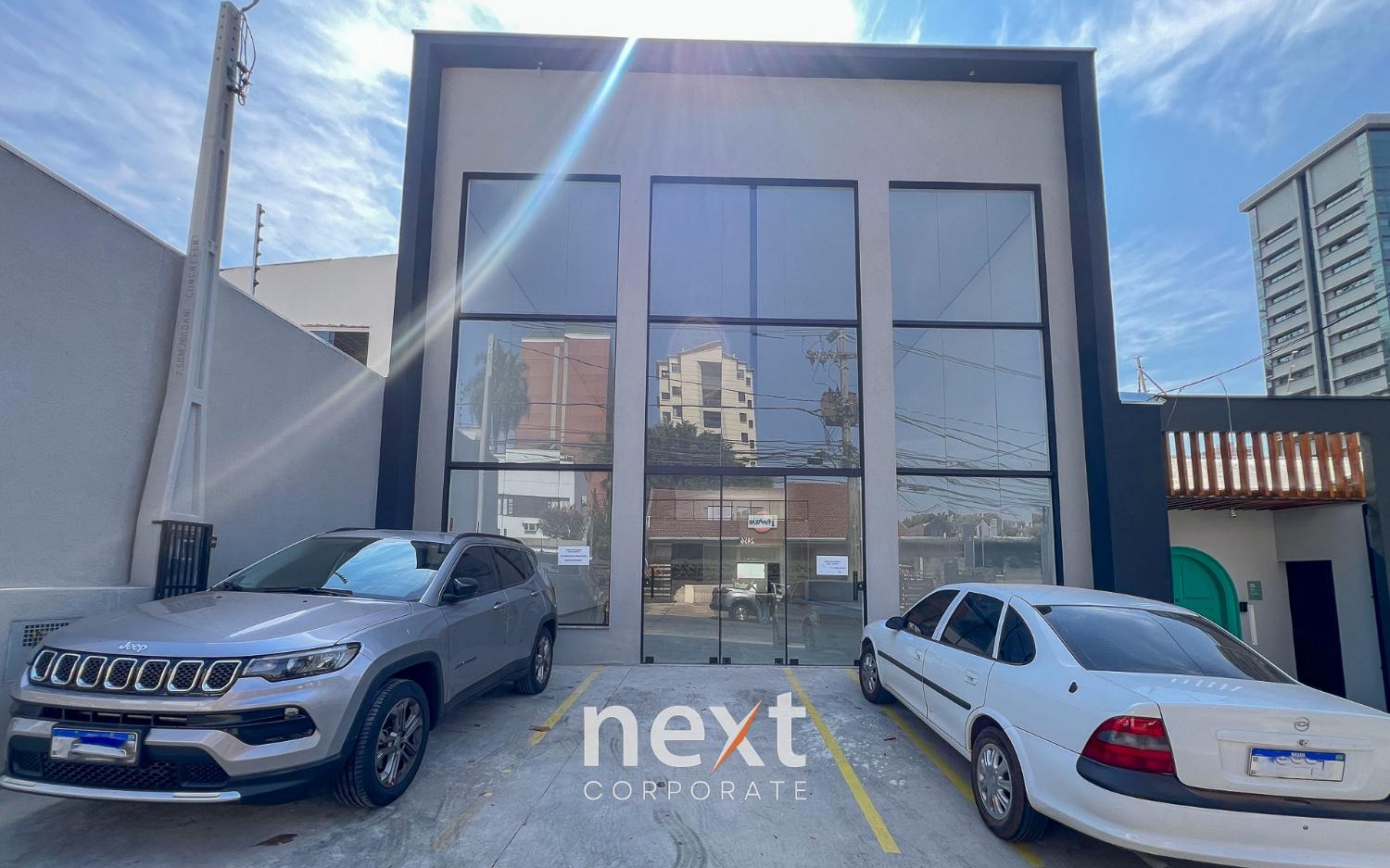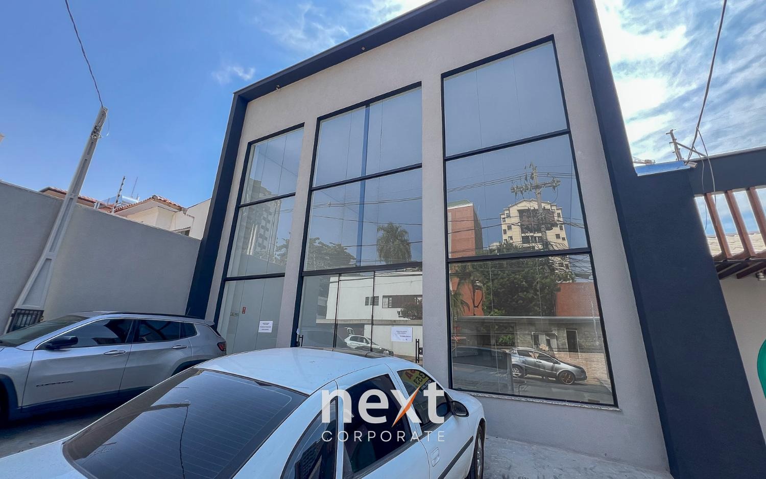 O térreo conta com uma área livre de 350m², copa e 2 banheiros. O piso superior tem uma área de 116m² e um banheiro. 4 vagas de garagem na frente do salão.